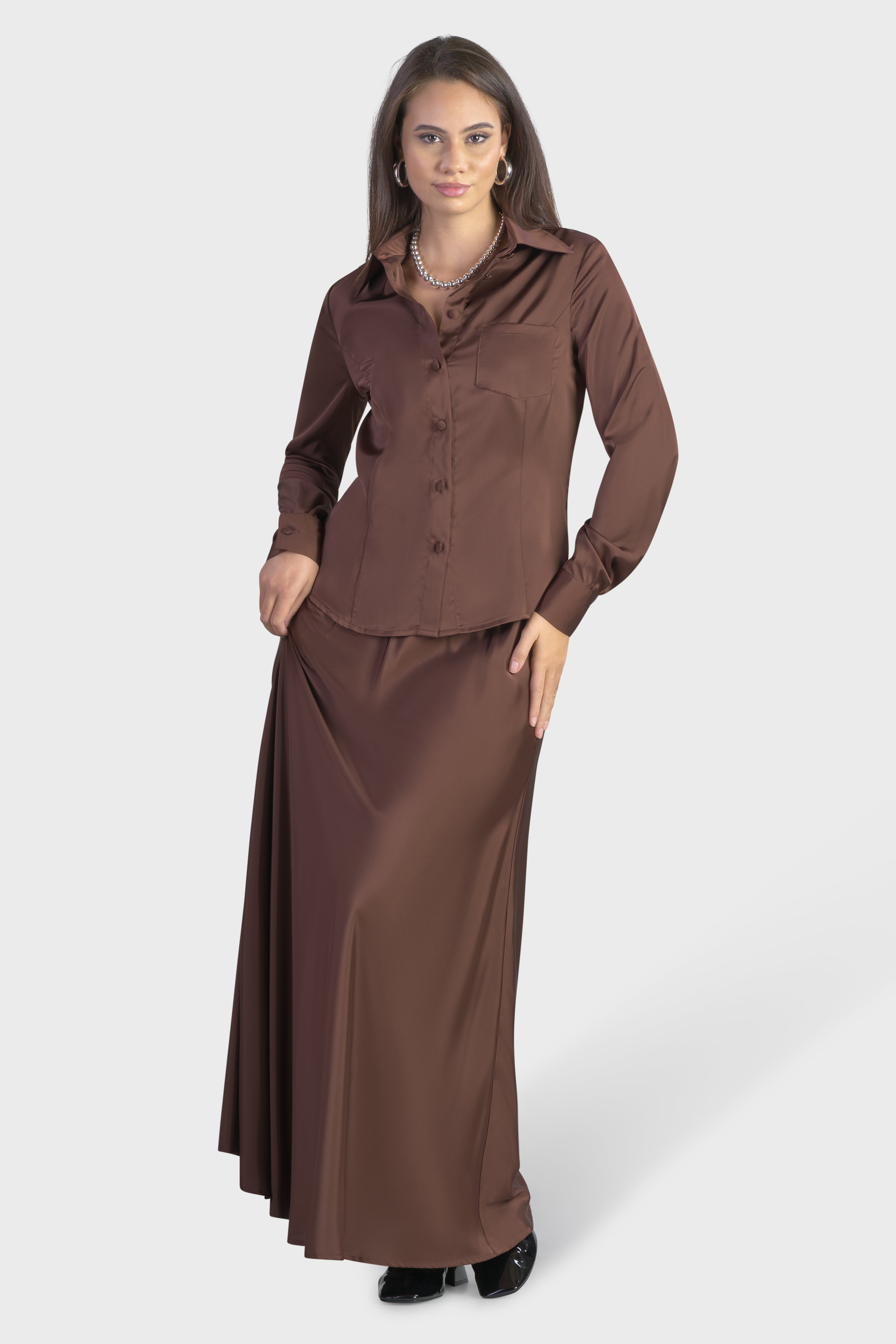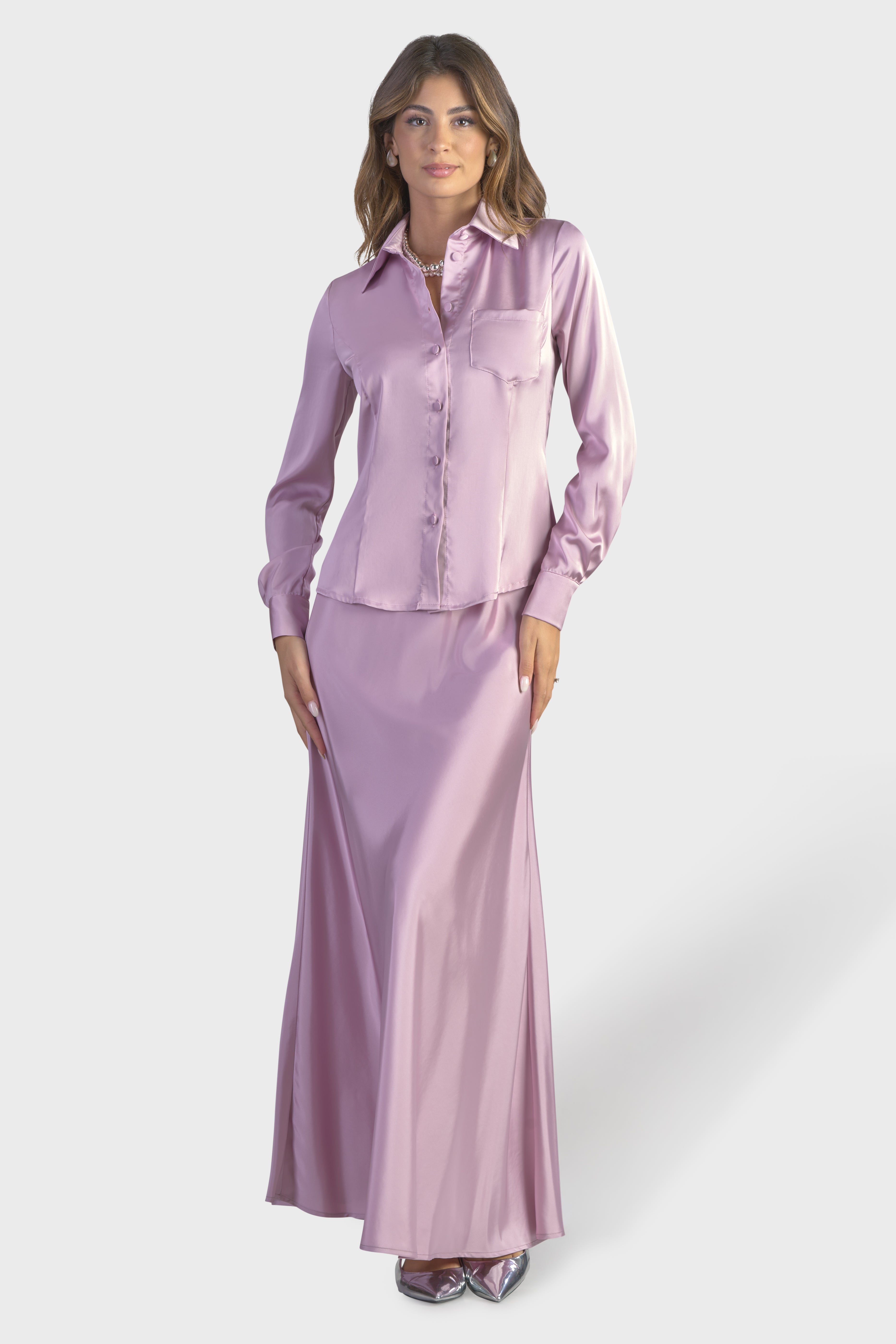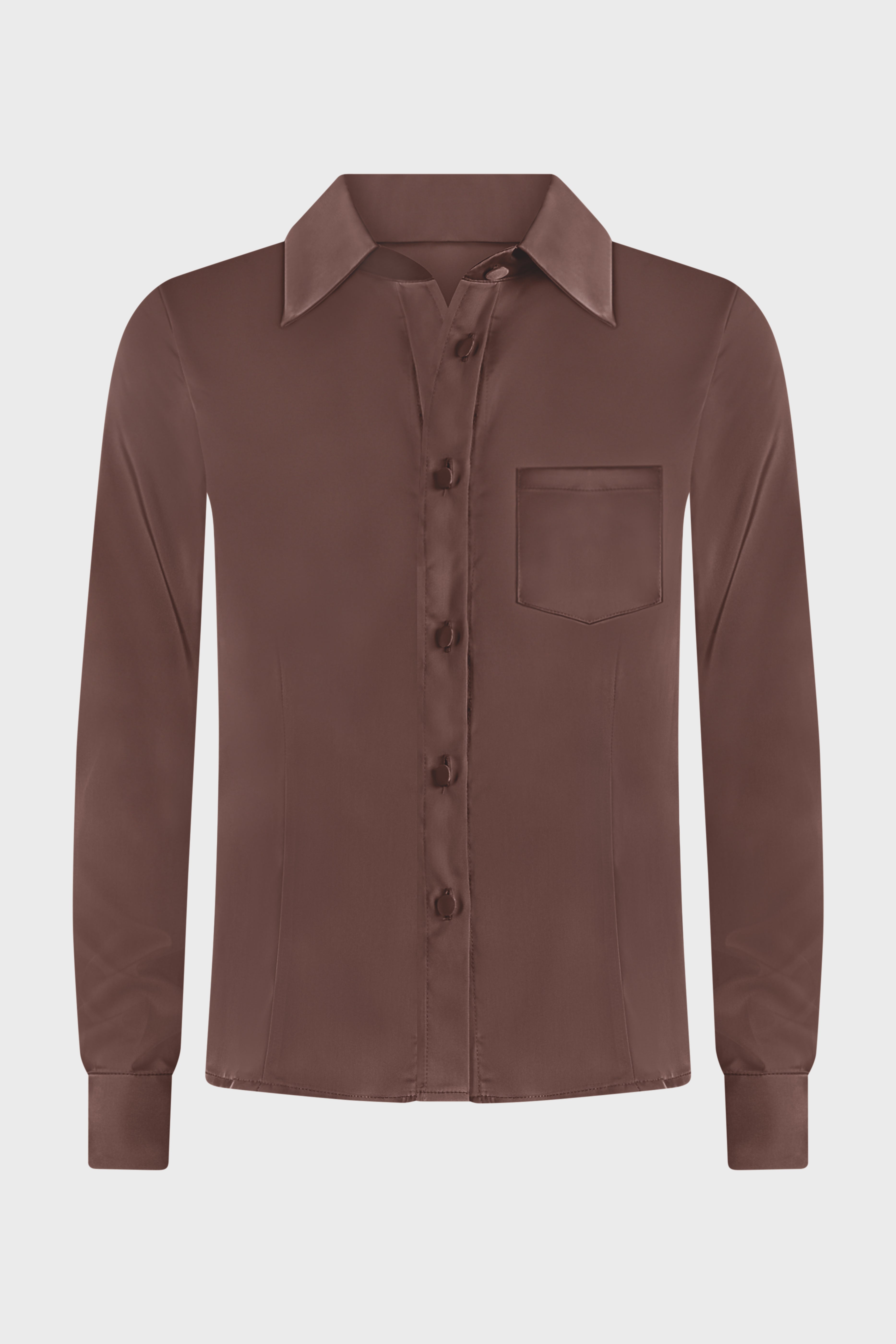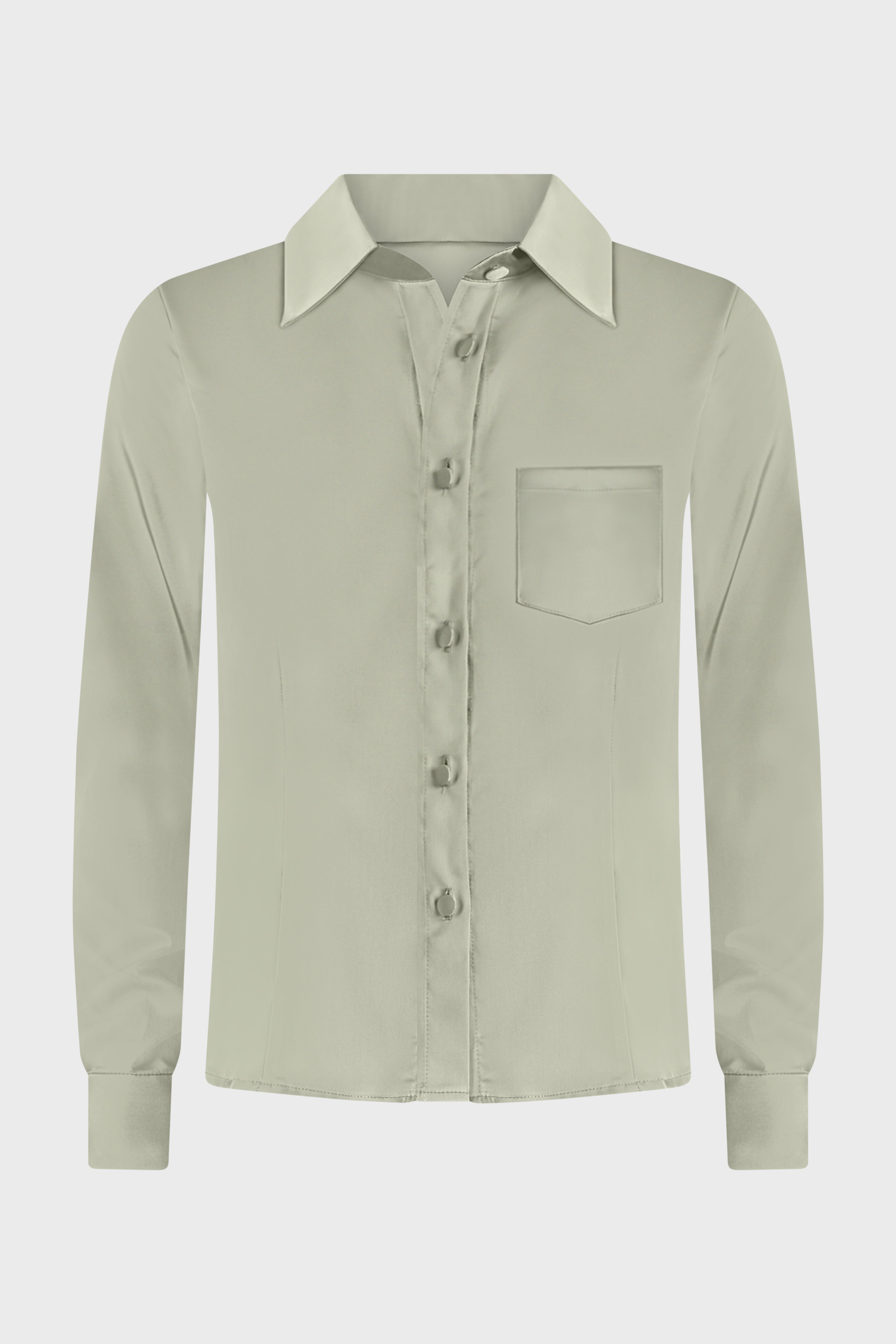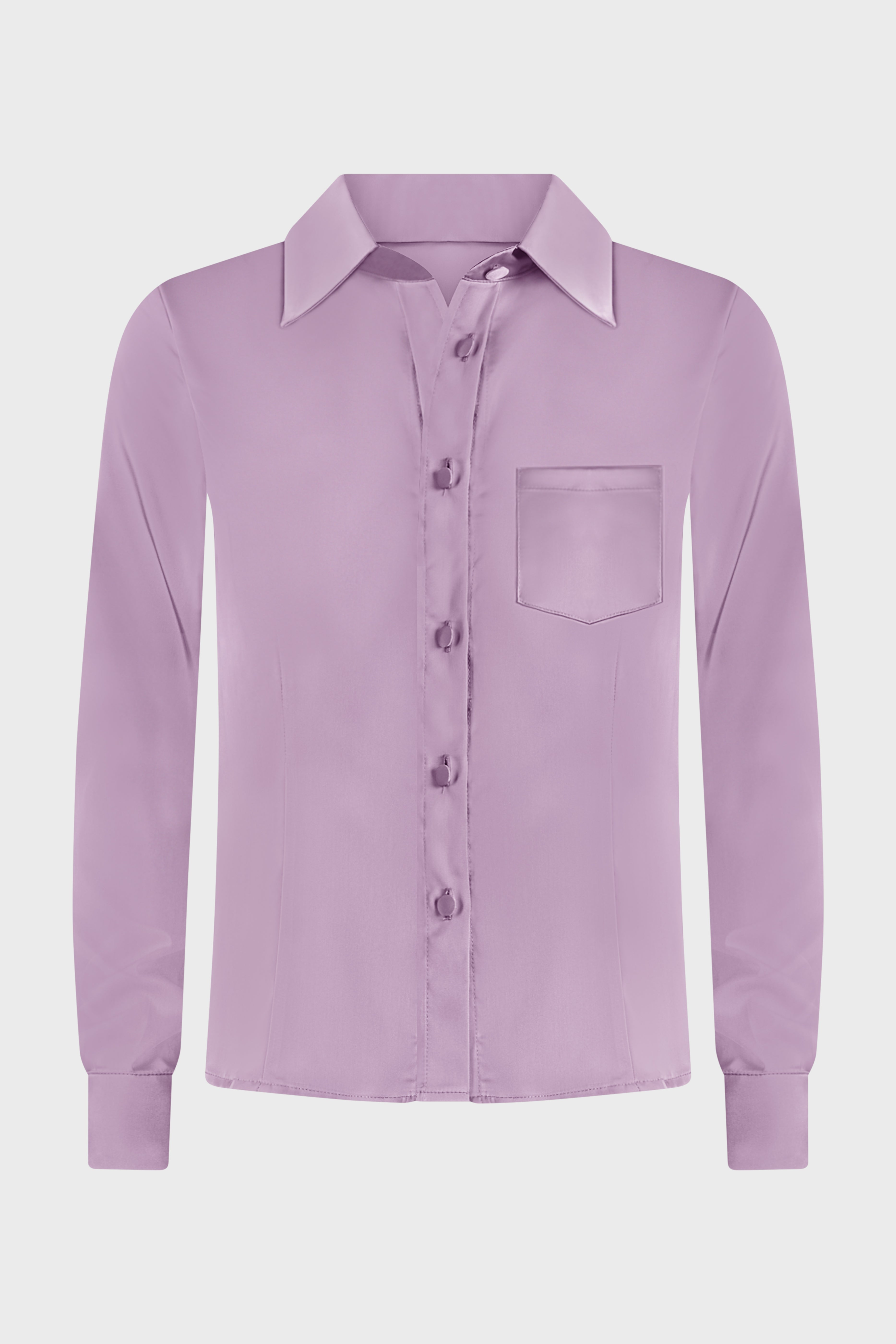 Le linee avvitate di questa camicia a maniche lunghe donano sensualità e raffinatezza. Realizzata in raso, tessuto liscio e piacevole al tatto. Il modello è caratterizzato dal colletto a punta e l’abbottonatura sul davanti arricchita dai bottoni rivestiti in tessuto. A completare la camicia è l’elegante taschino sul cuore. Ideale da indossare con facilità insieme alla gonna Iside in coordinato della collezione,per un look chic e senza tempo.