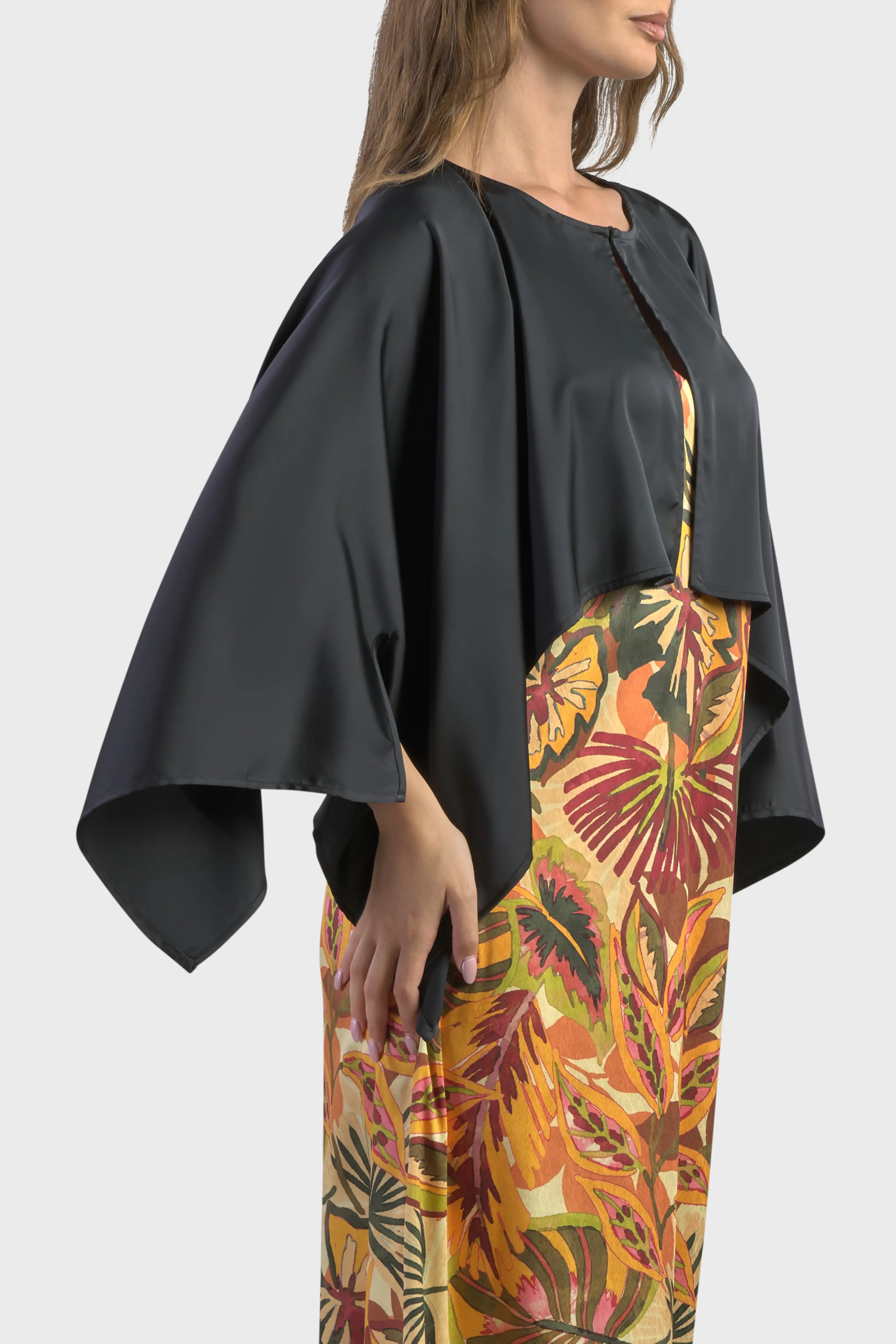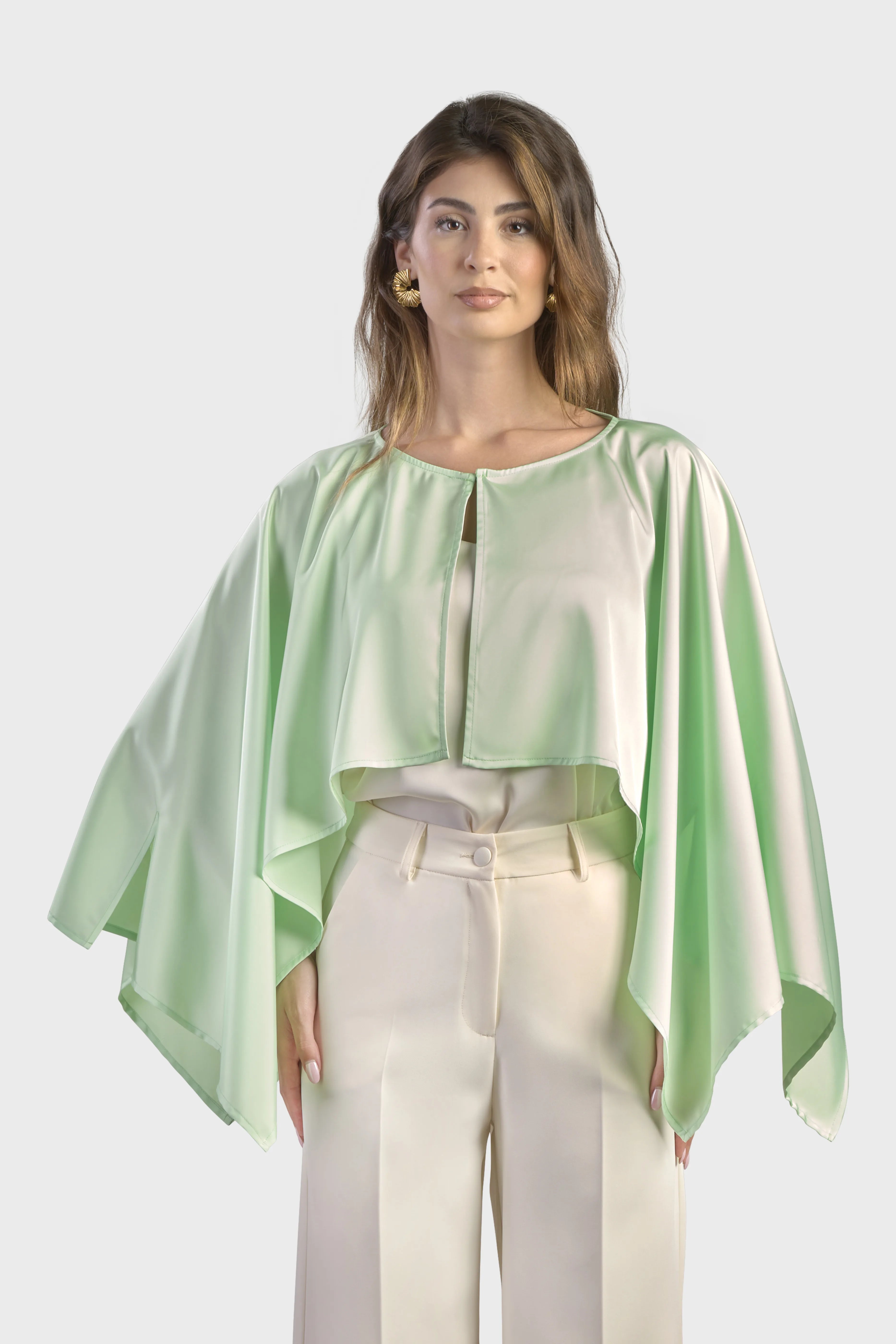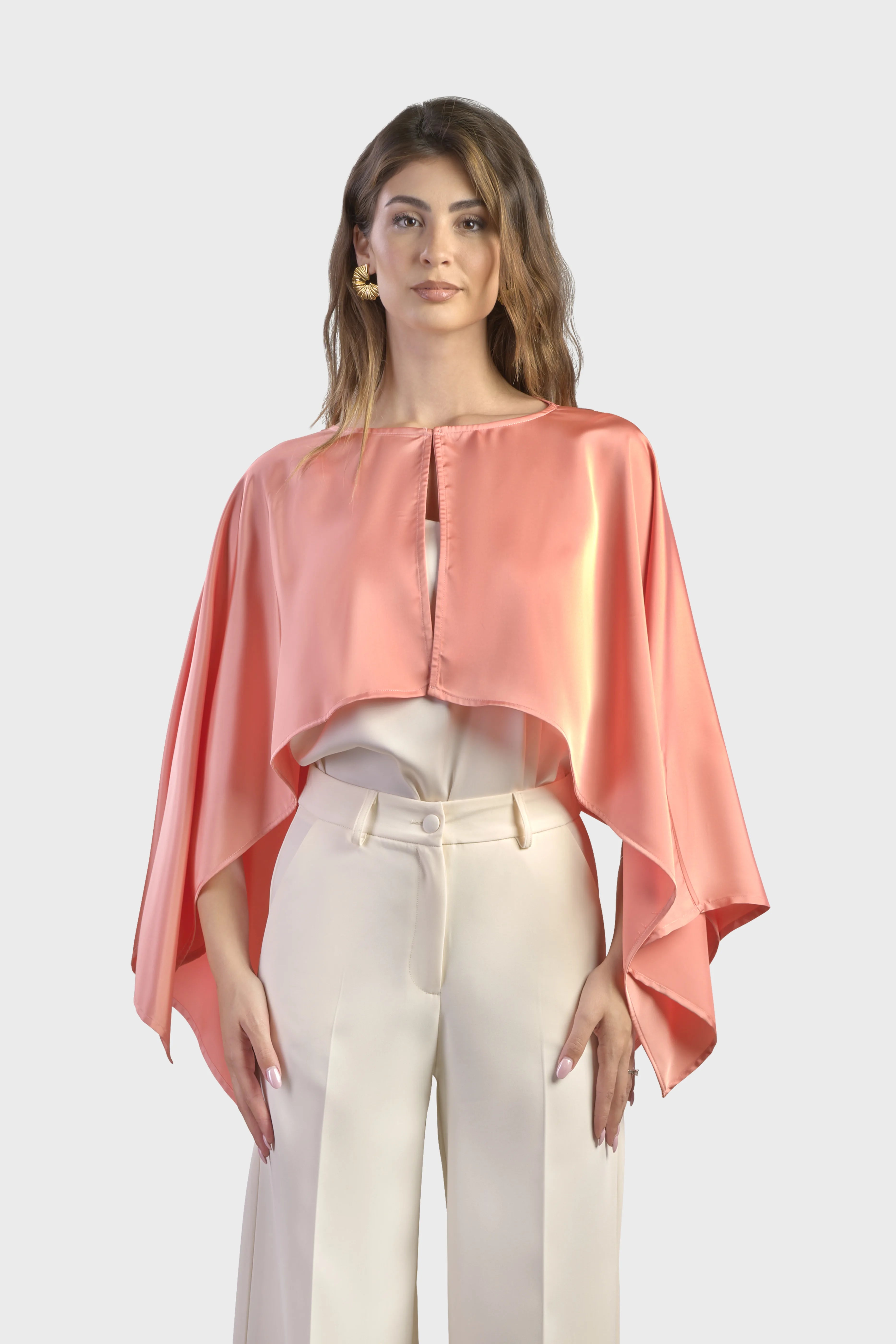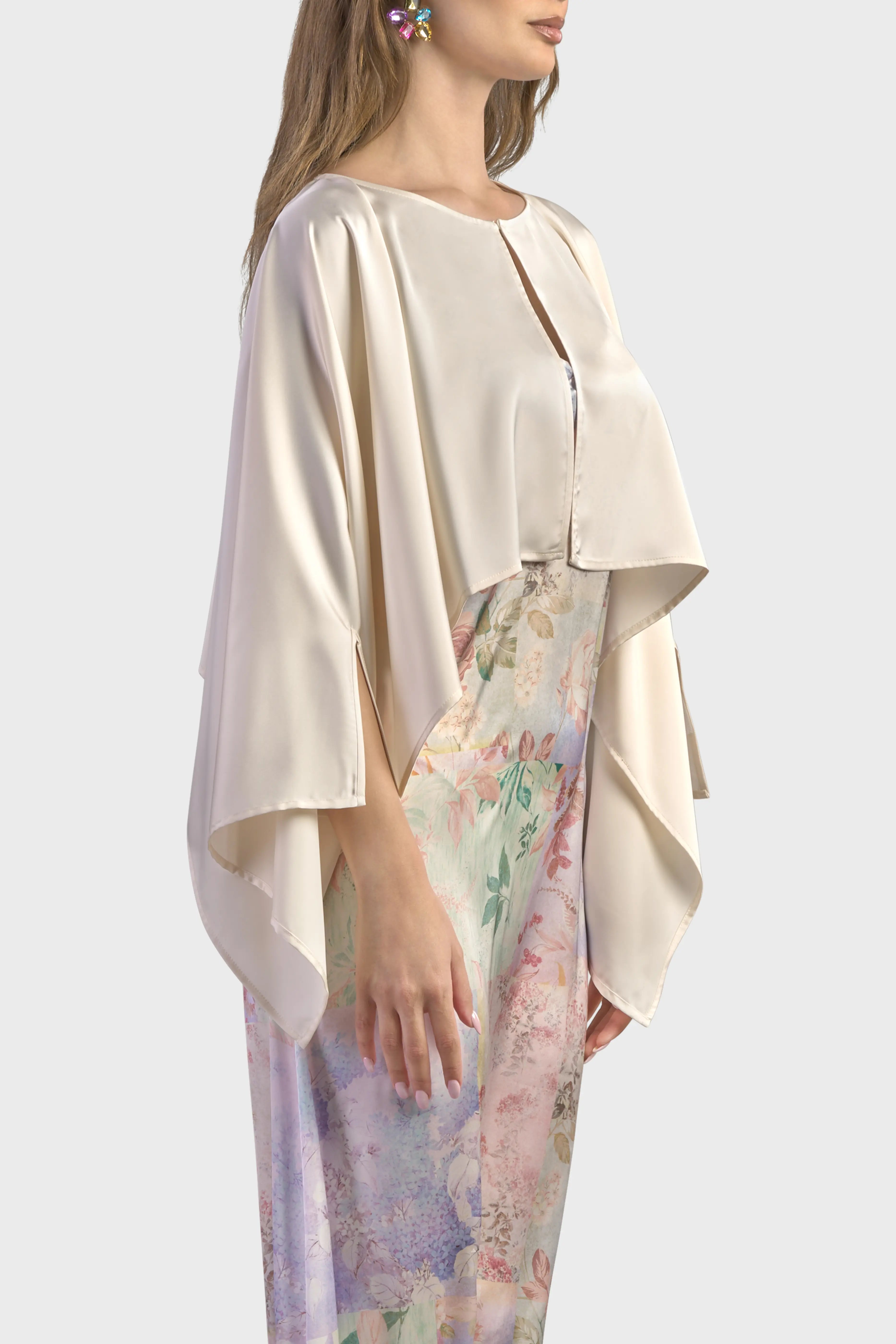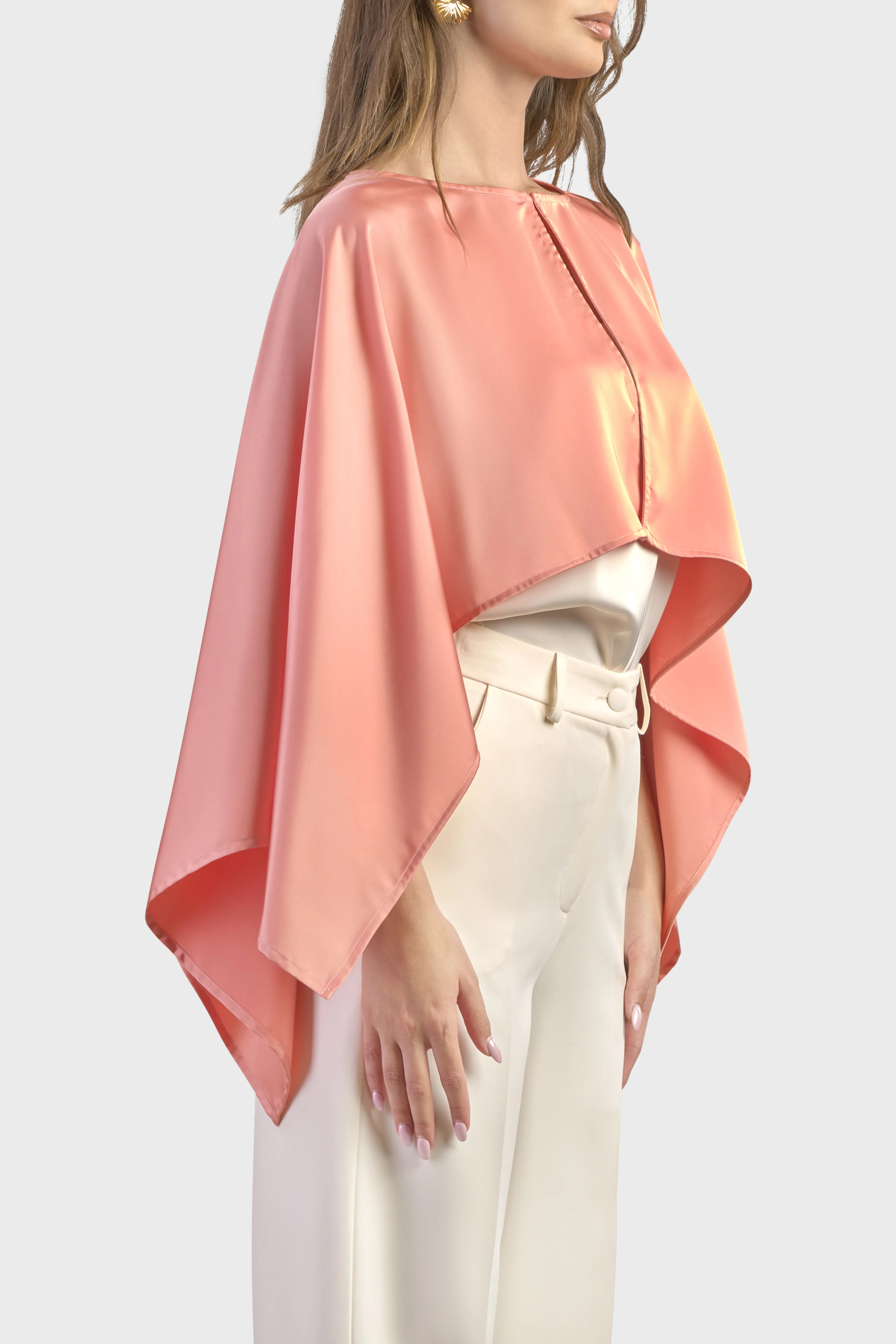 Delicata e sofisticata la stola dalla linea morbida e cascante dona un tocco raffinato a qualsiasi look. Realizzata in raso lucido, tessuto dalla mano morbida e consistente. Il modello è caratterizzato dal girocollo chiuso dal bottone nascosto tono su tono e gli spacchi al fondo manica. Un accessorio luminoso, pensato per completare con eleganza i look dedicati a cerimonie ed occasioni speciali.