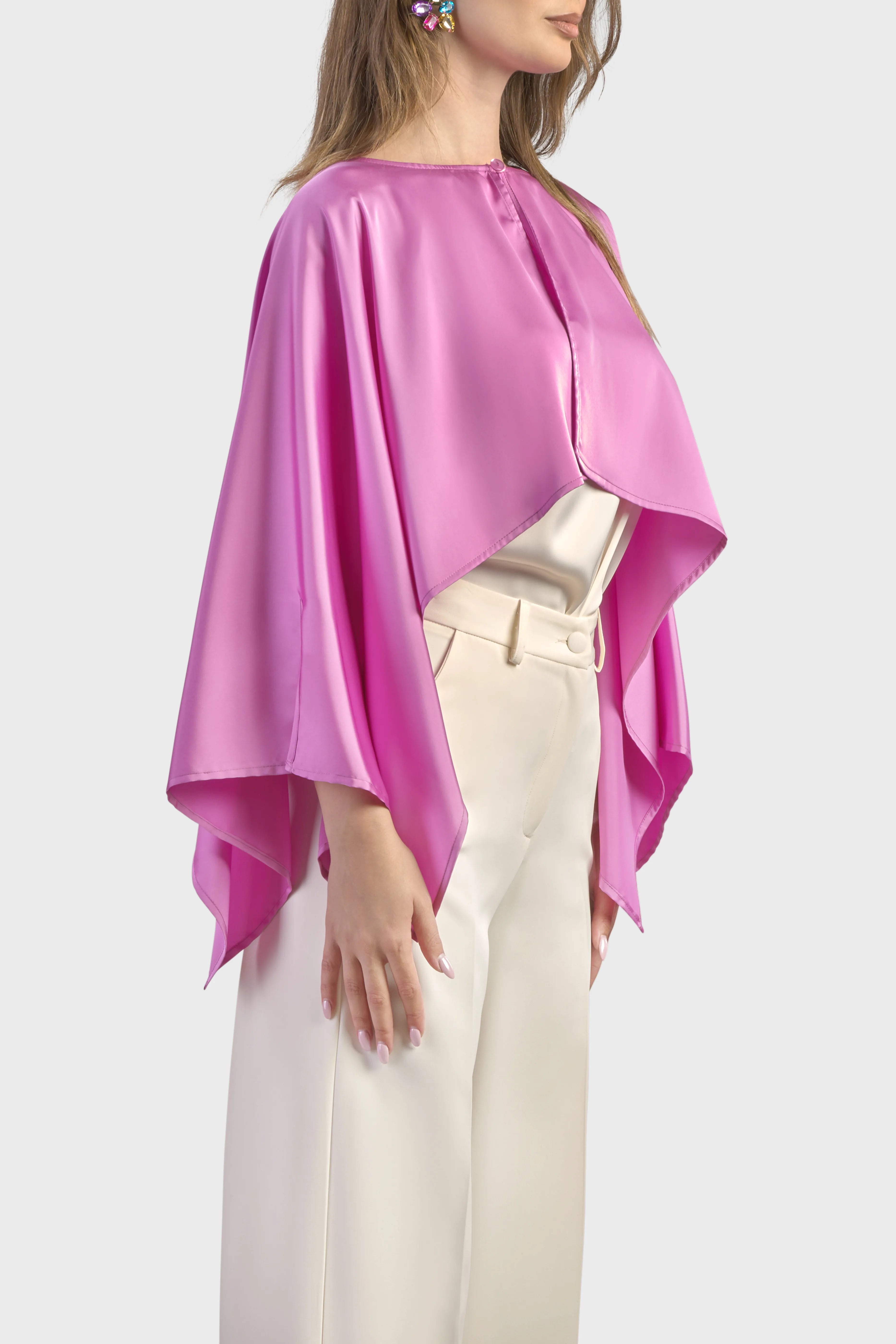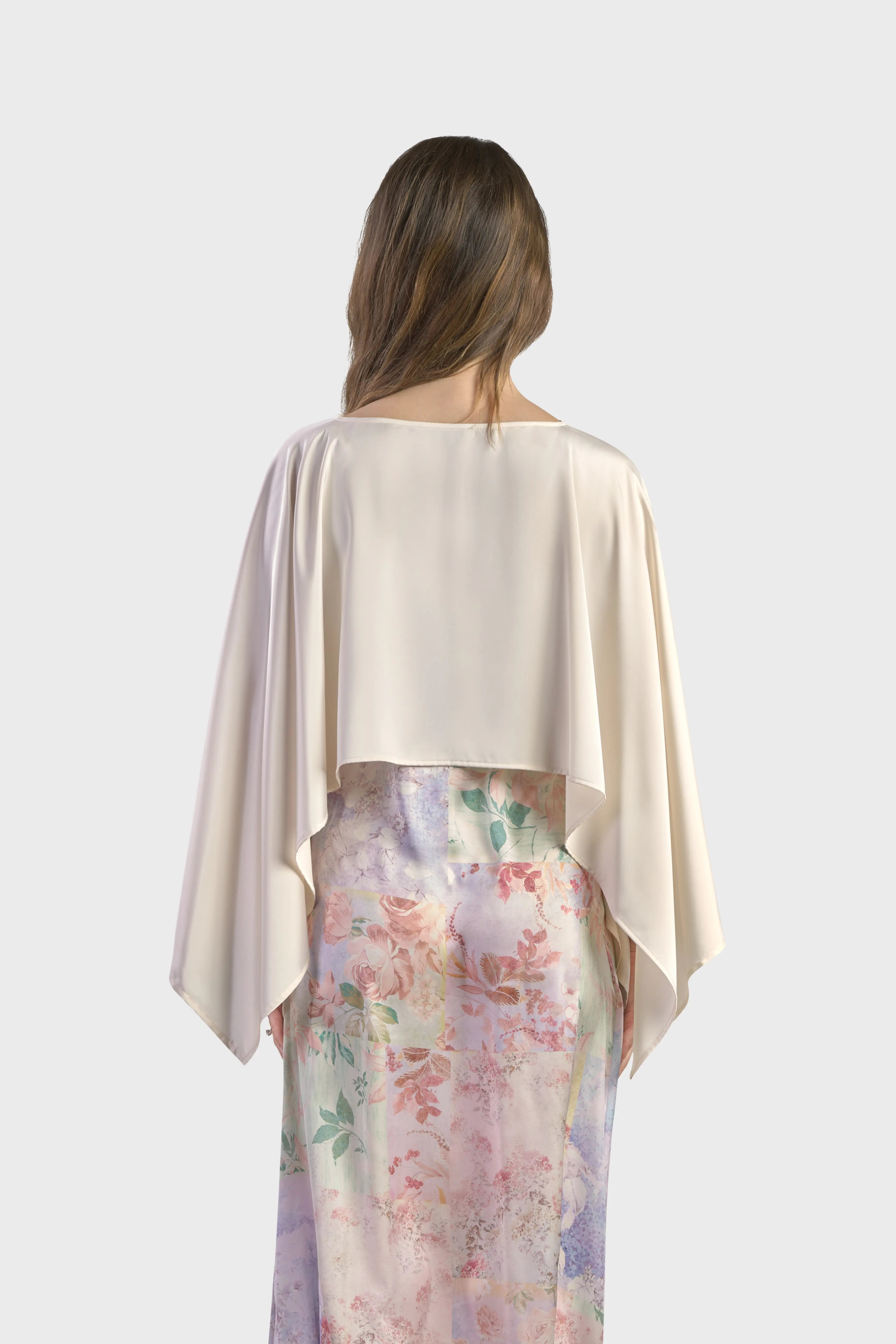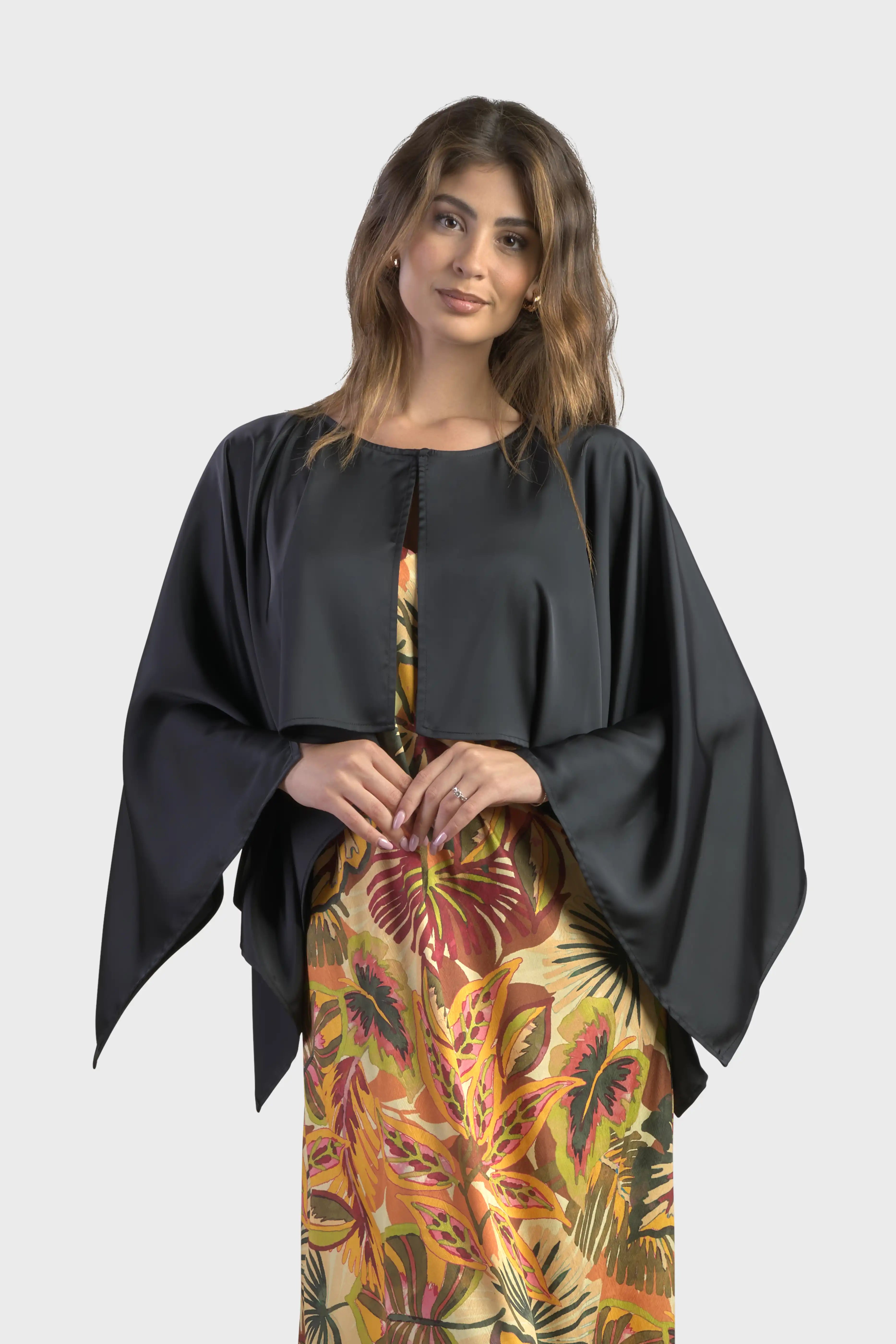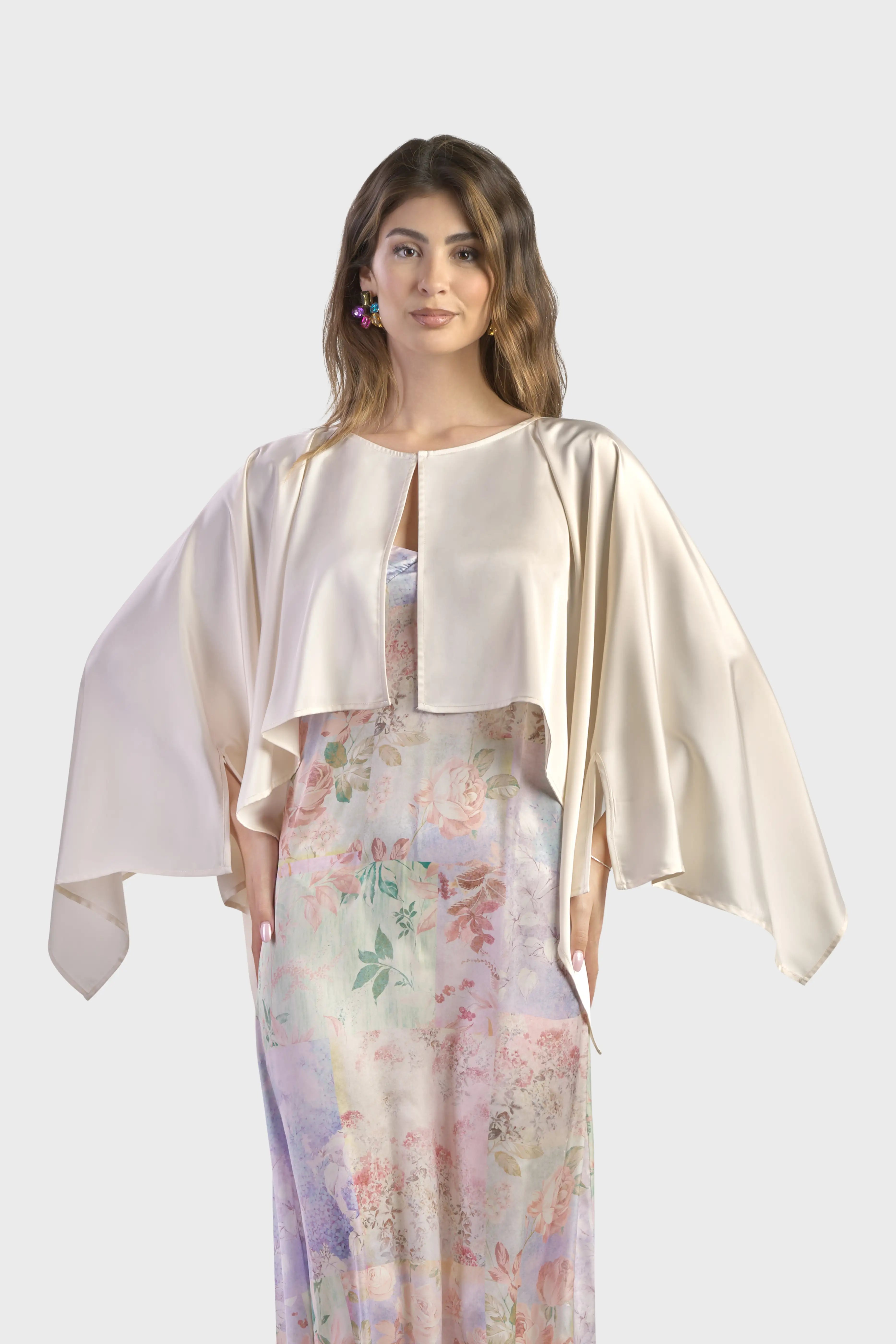 Delicata e sofisticata la stola dalla linea morbida e cascante dona un tocco raffinato a qualsiasi look. Realizzata in raso lucido, tessuto dalla mano morbida e consistente. Il modello è caratterizzato dal girocollo chiuso dal bottone nascosto tono su tono e gli spacchi al fondo manica. Un accessorio luminoso, pensato per completare con eleganza i look dedicati a cerimonie ed occasioni speciali.