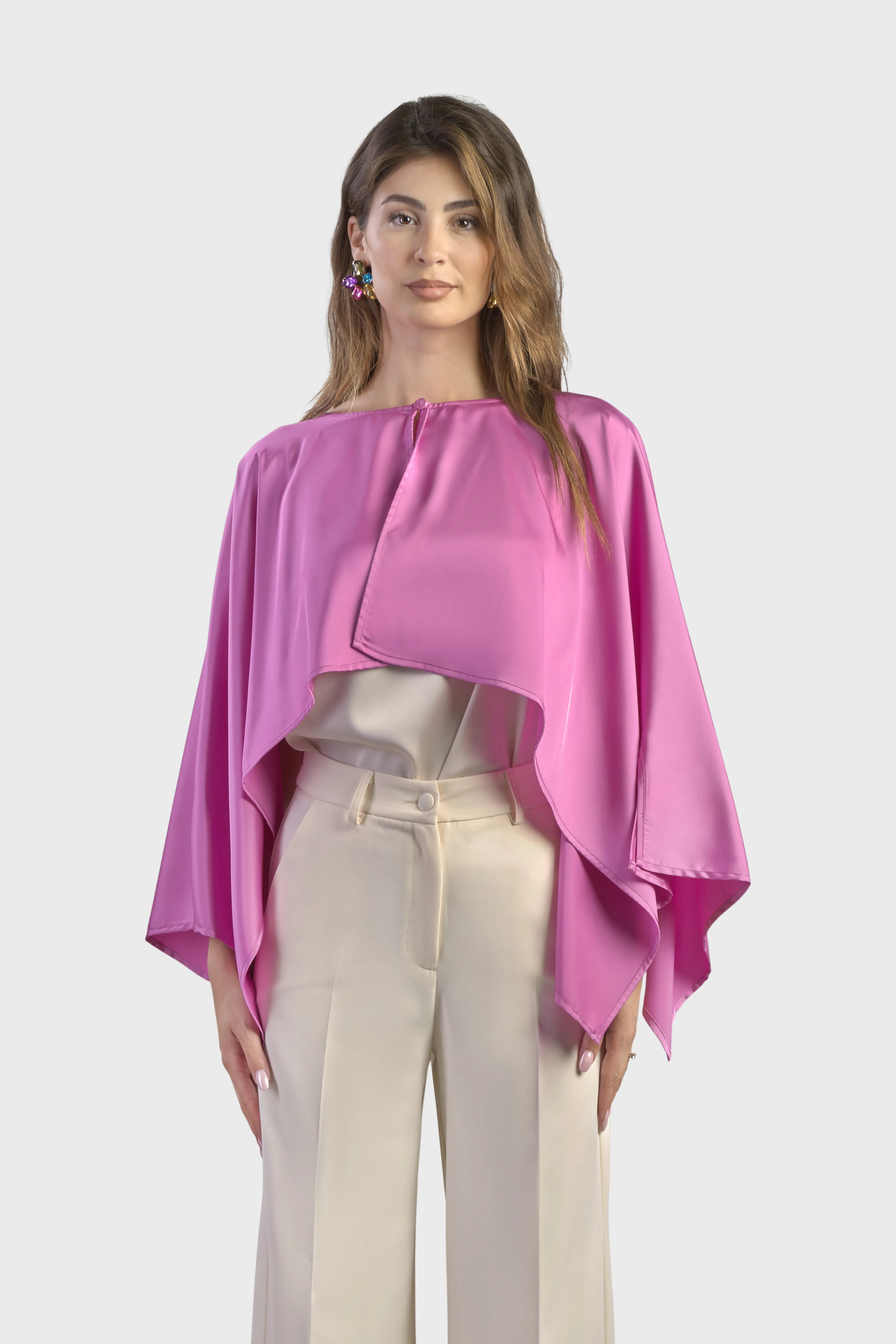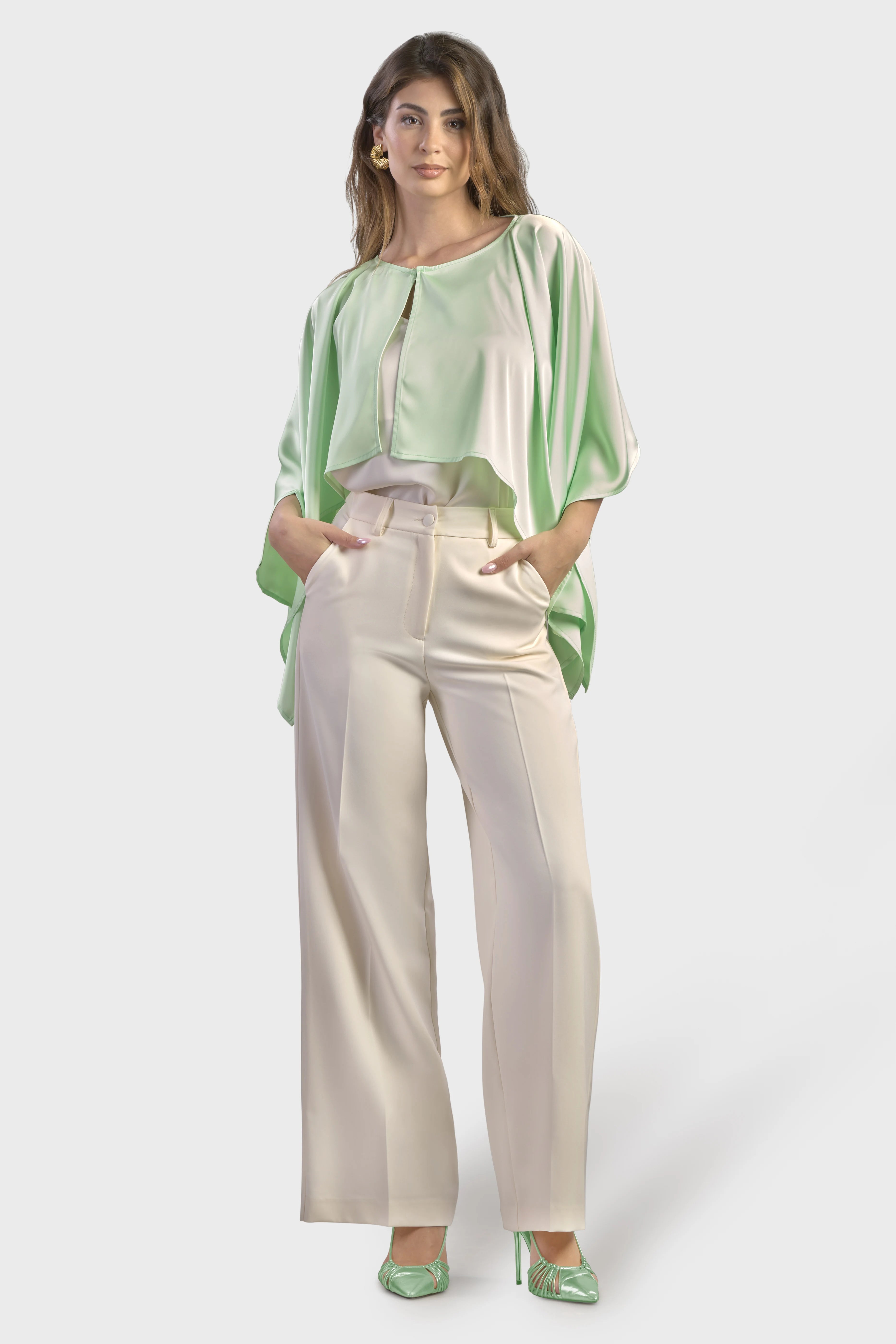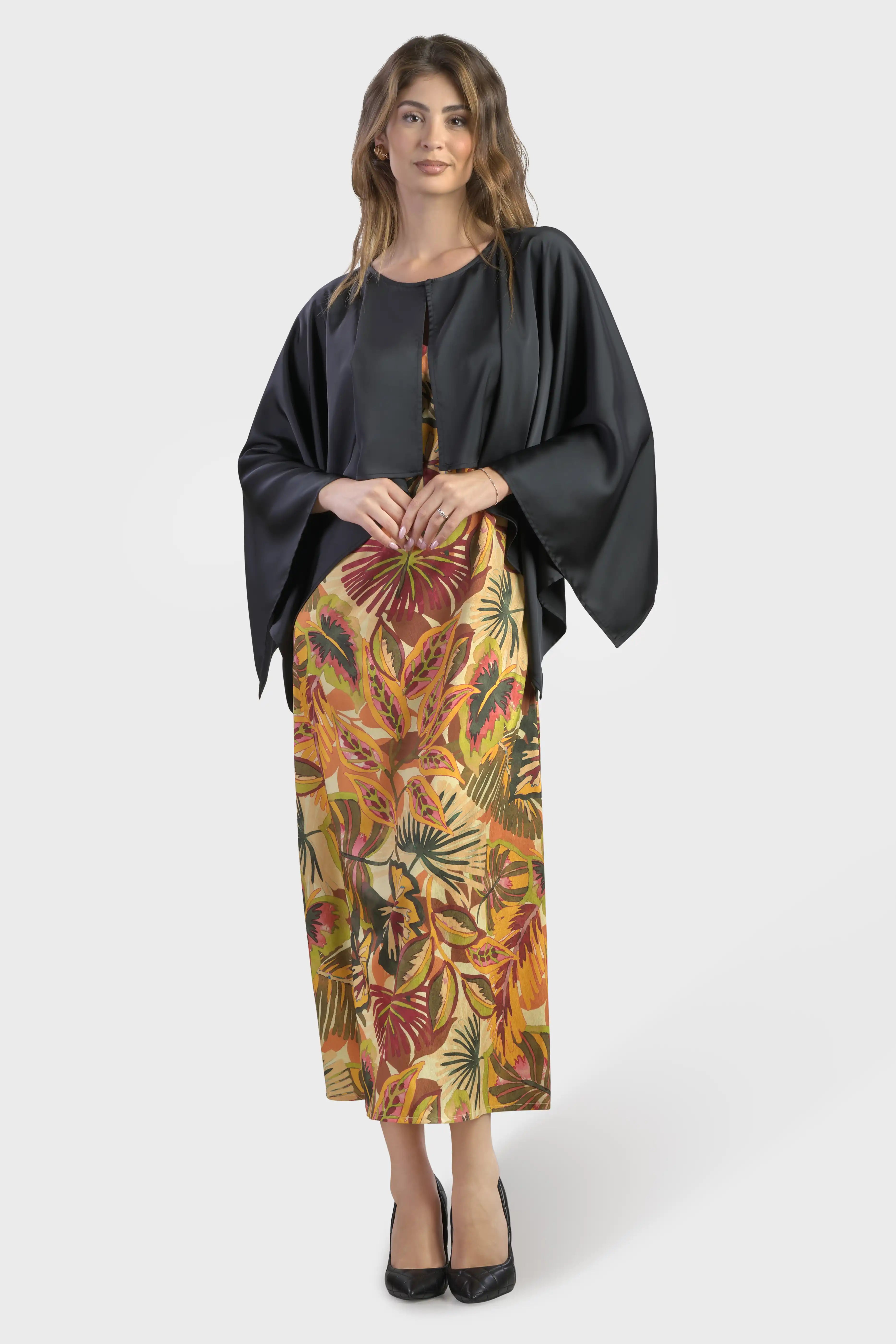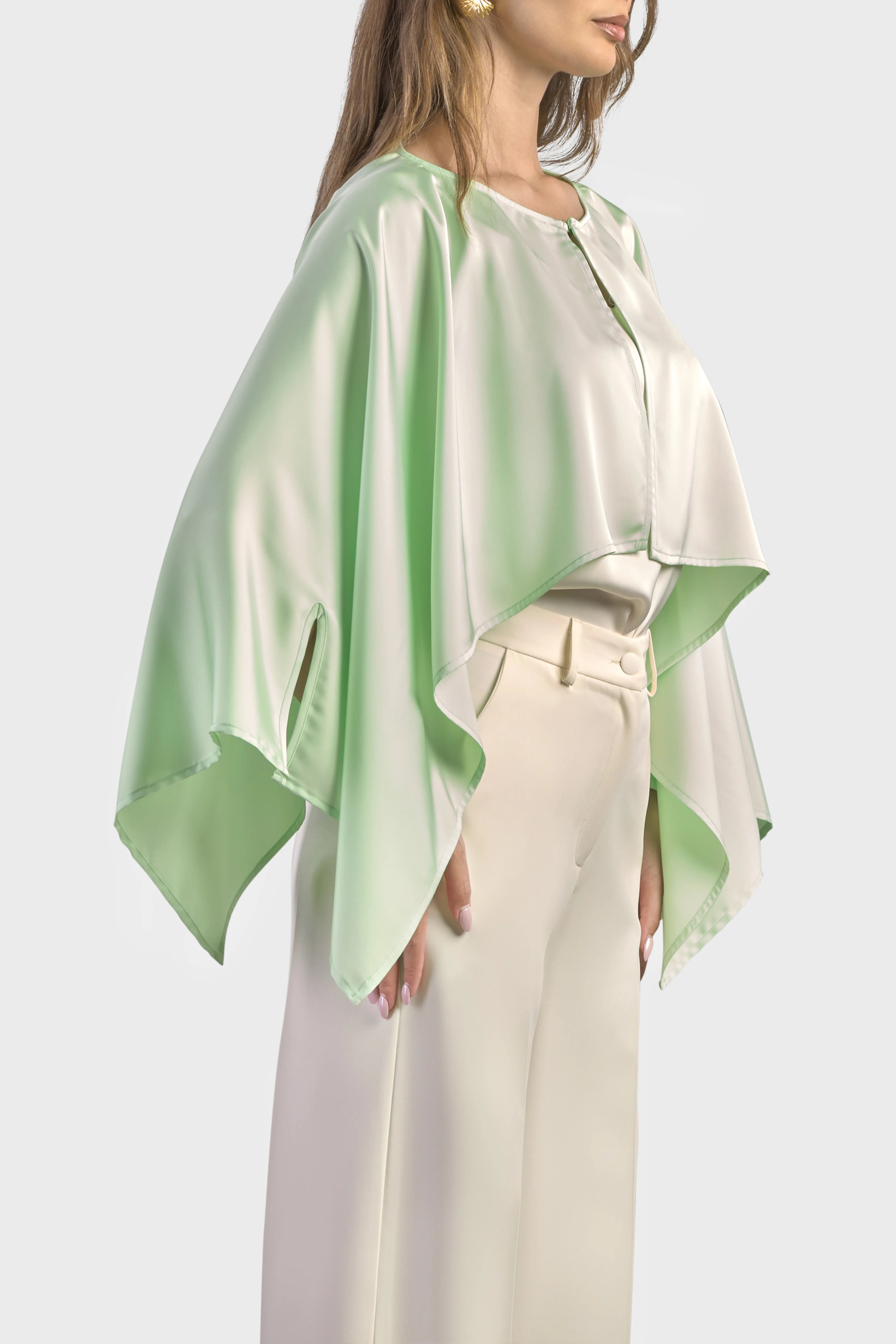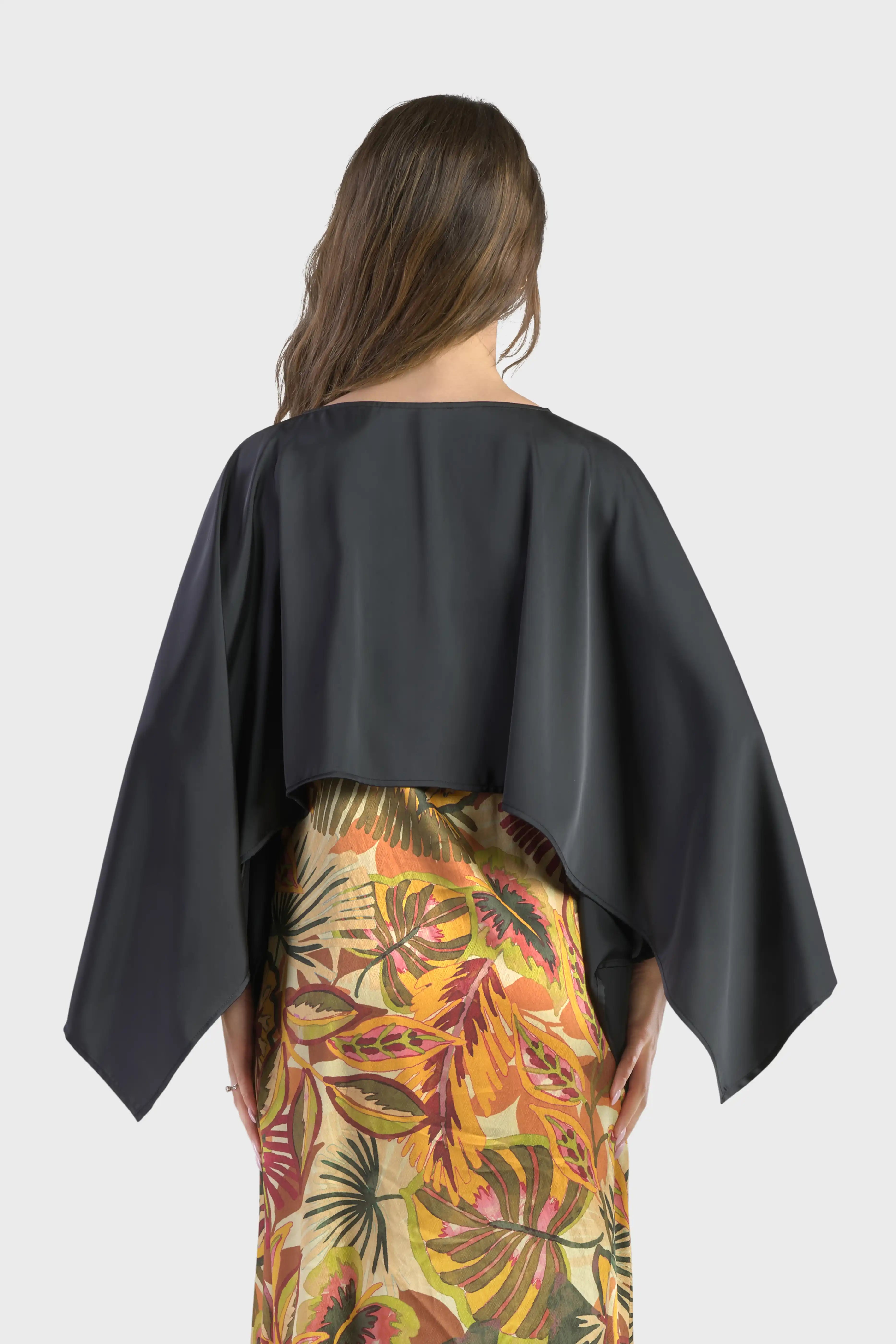 Delicata e sofisticata la stola dalla linea morbida e cascante dona un tocco raffinato a qualsiasi look. Realizzata in raso lucido, tessuto dalla mano morbida e consistente. Il modello è caratterizzato dal girocollo chiuso dal bottone nascosto tono su tono e gli spacchi al fondo manica. Un accessorio luminoso, pensato per completare con eleganza i look dedicati a cerimonie ed occasioni speciali.