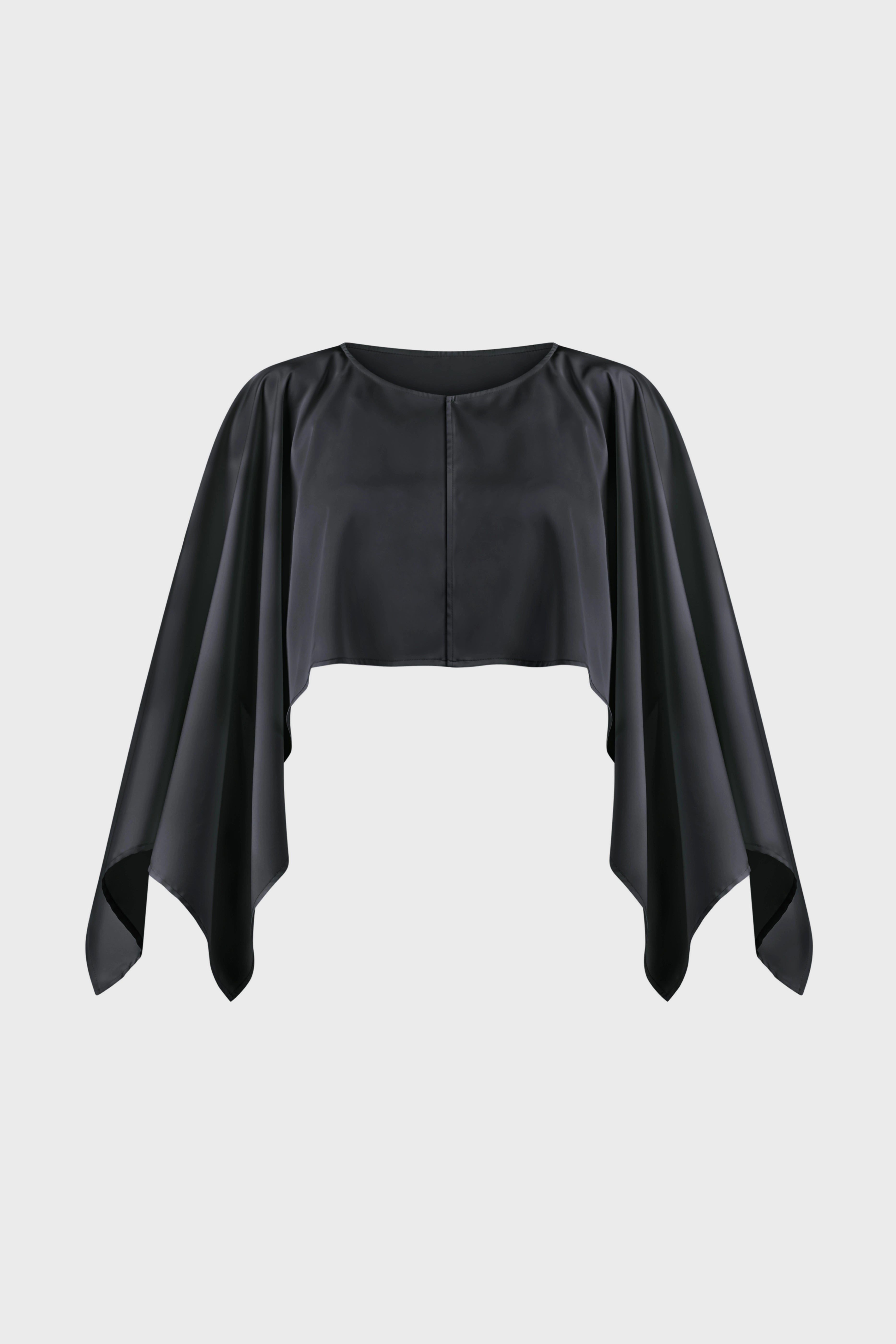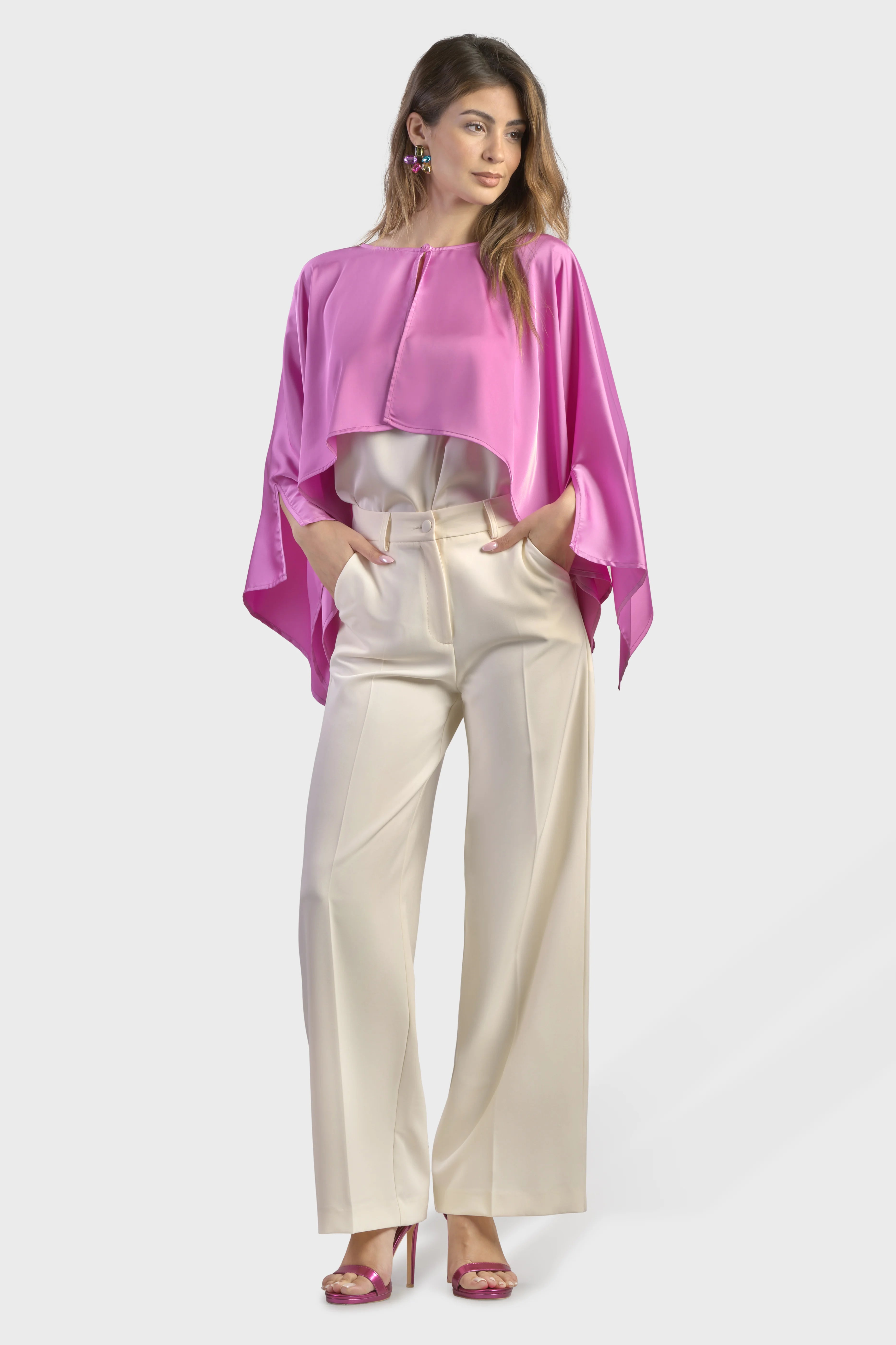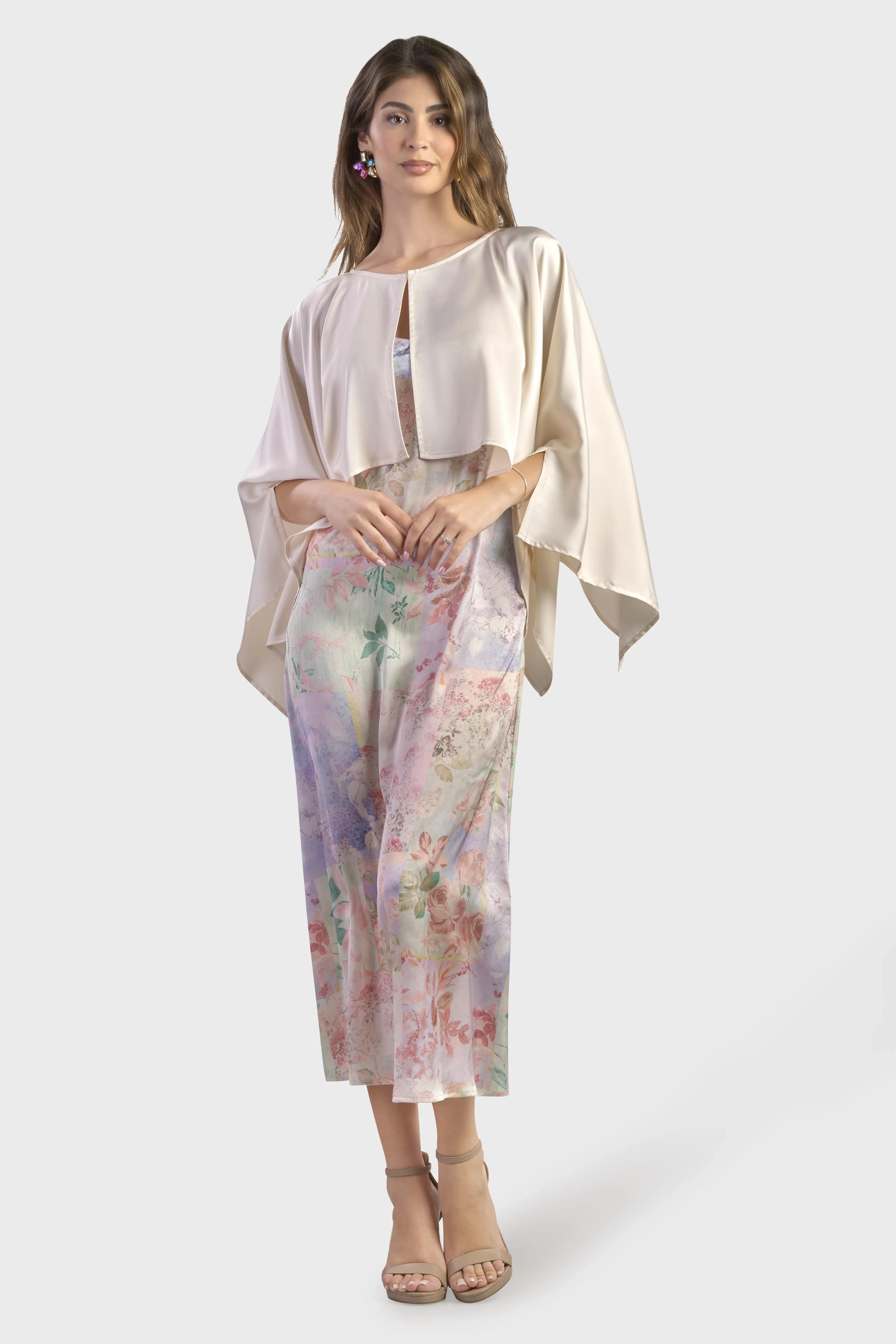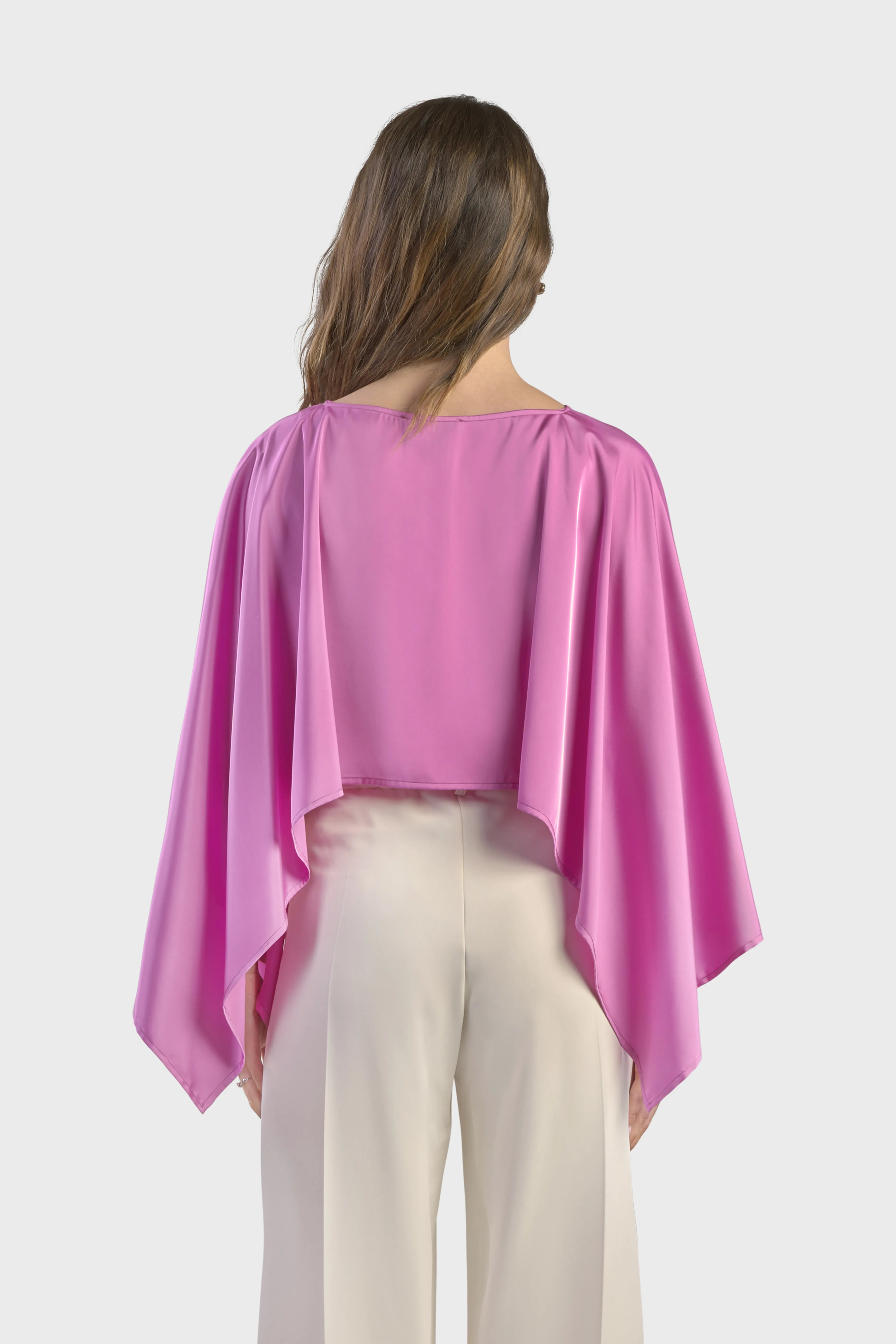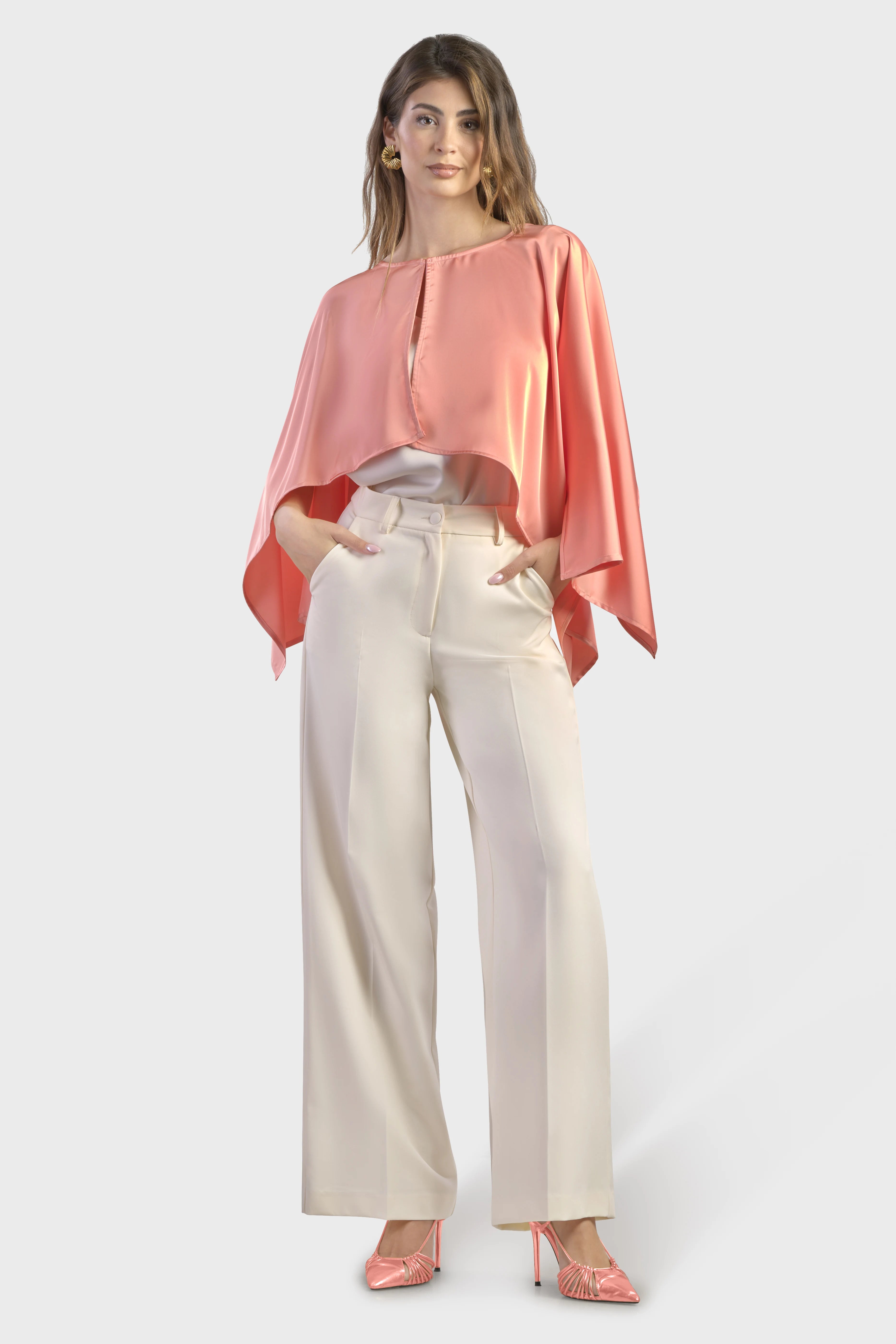 Delicata e sofisticata la stola dalla linea morbida e cascante dona un tocco raffinato a qualsiasi look. Realizzata in raso lucido, tessuto dalla mano morbida e consistente. Il modello è caratterizzato dal girocollo chiuso dal bottone nascosto tono su tono e gli spacchi al fondo manica. Un accessorio luminoso, pensato per completare con eleganza i look dedicati a cerimonie ed occasioni speciali.