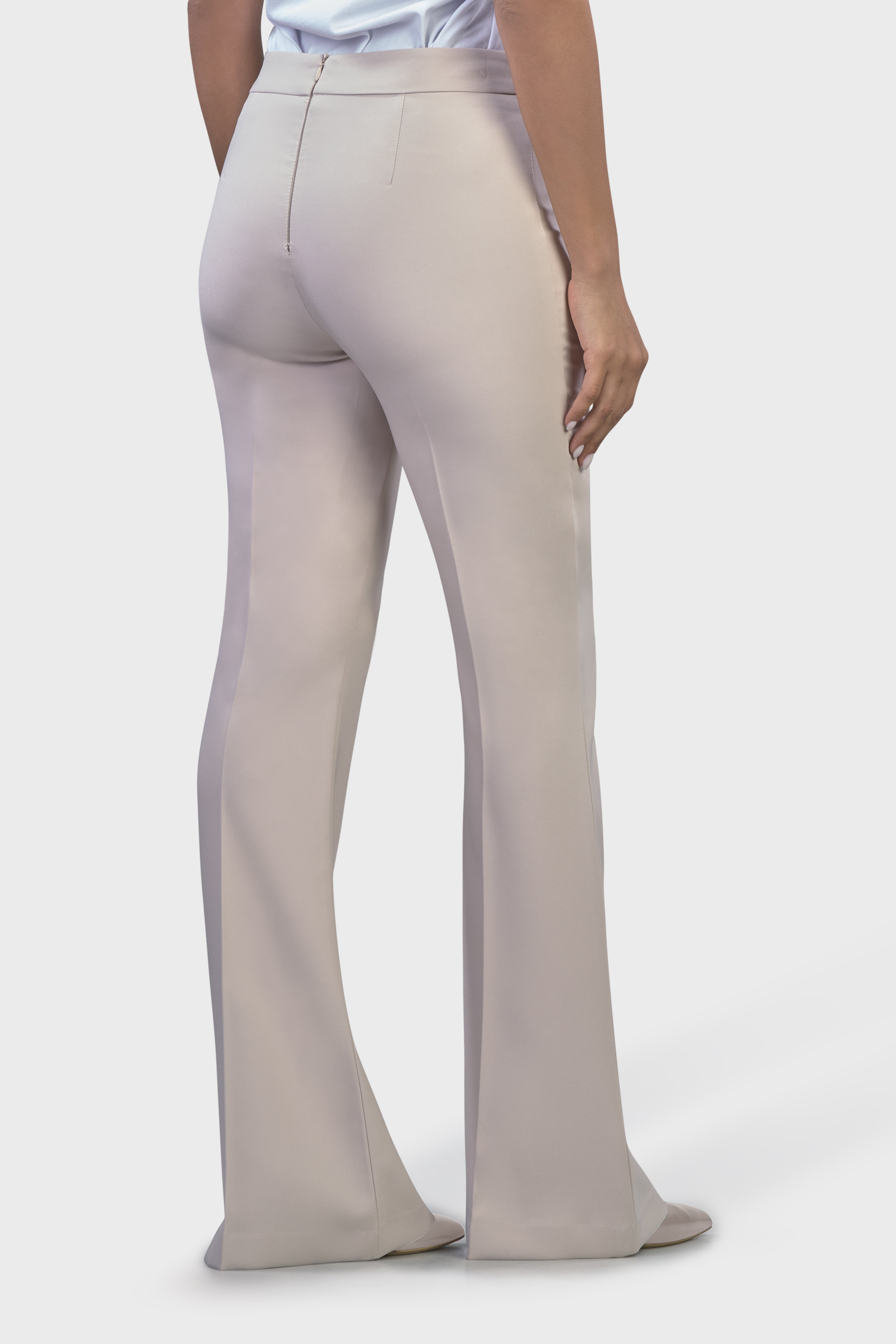 Ne evidenzia la lavorazione sartoriale la piega stirata sul davanti.