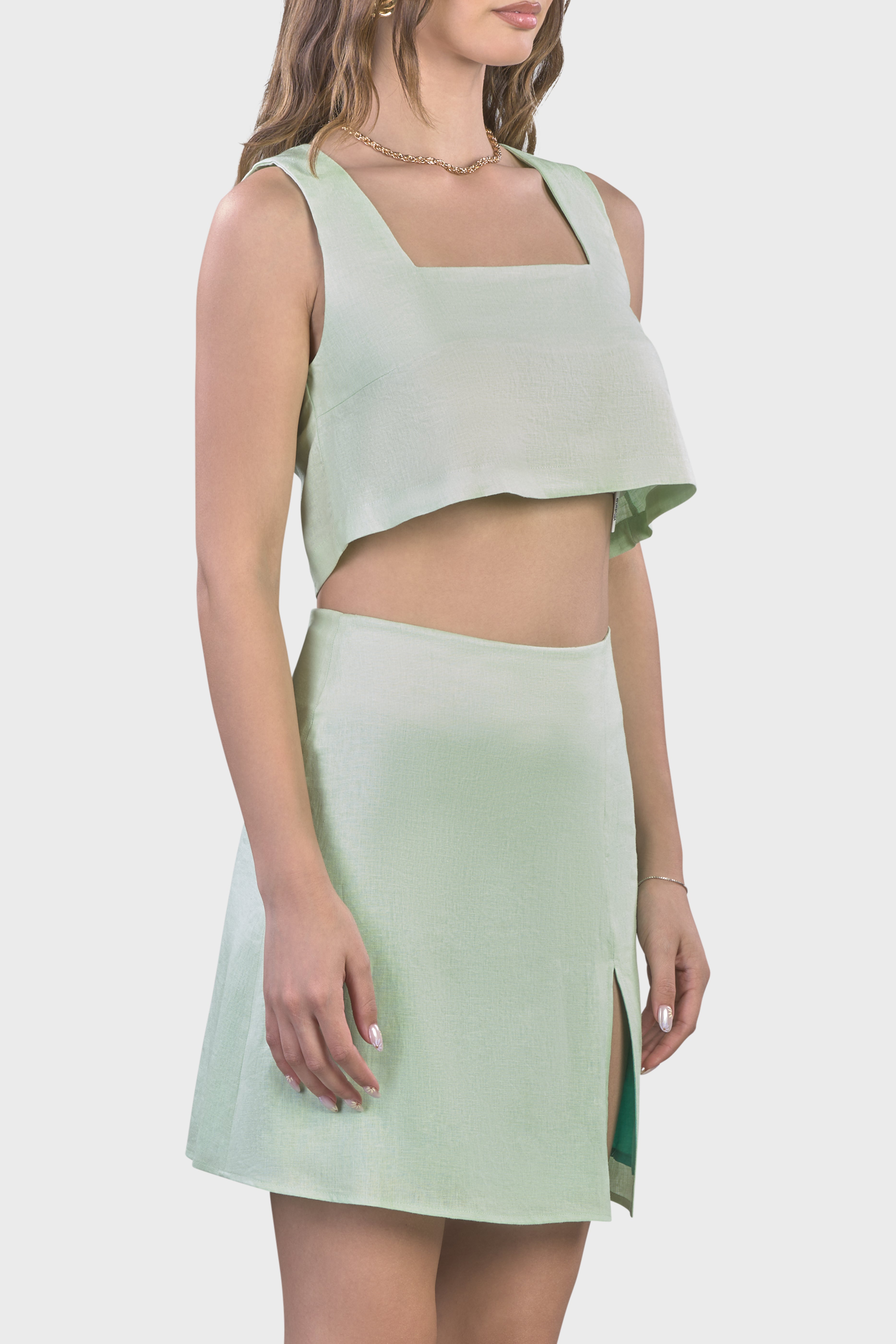Il design di questa gonna dalle linee minimal e pulite ci permette di giocare con abbinamenti alternativi. Non a caso la scelta della fodera in contrasto, che enfatizza il leggero spacco sul davanti.