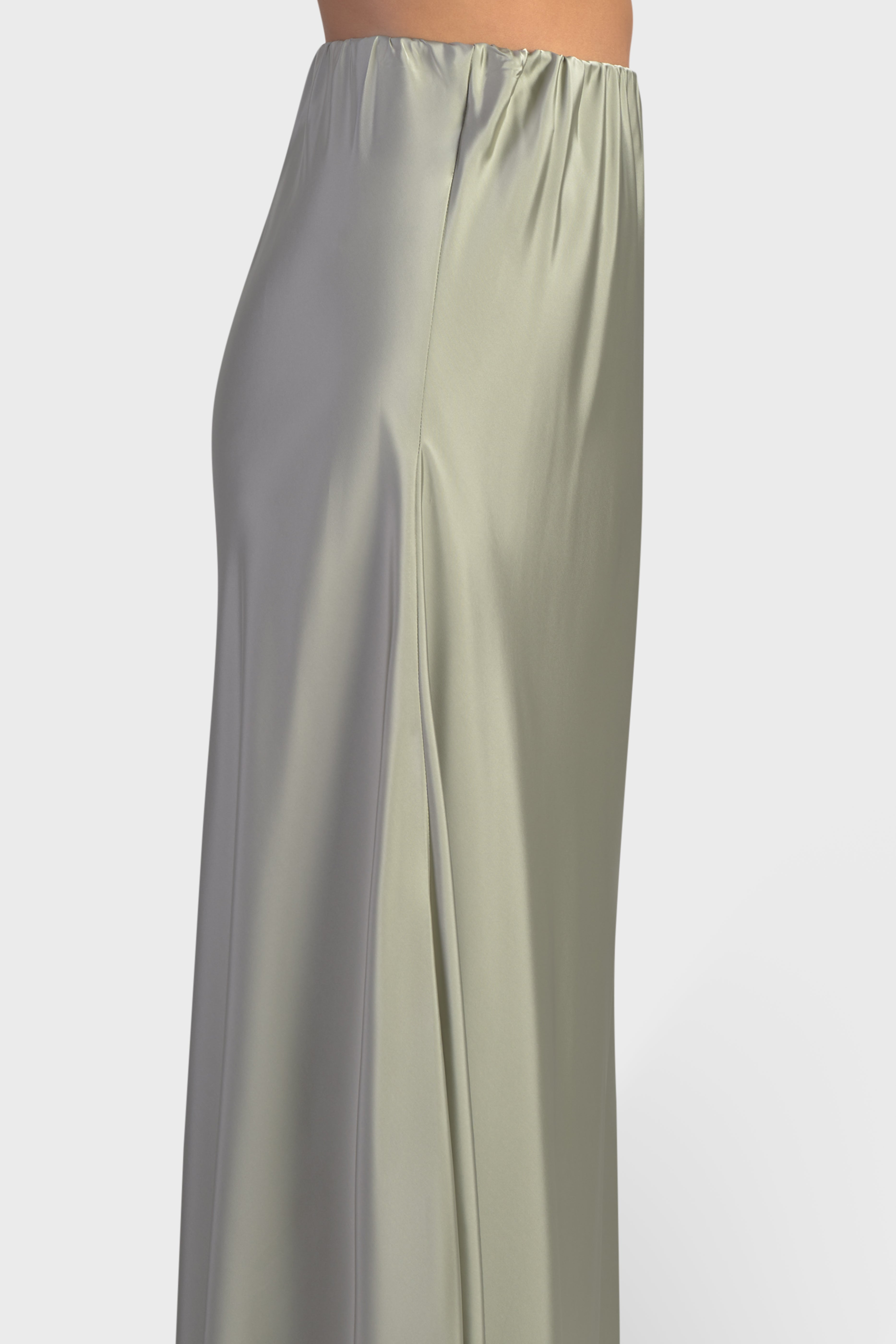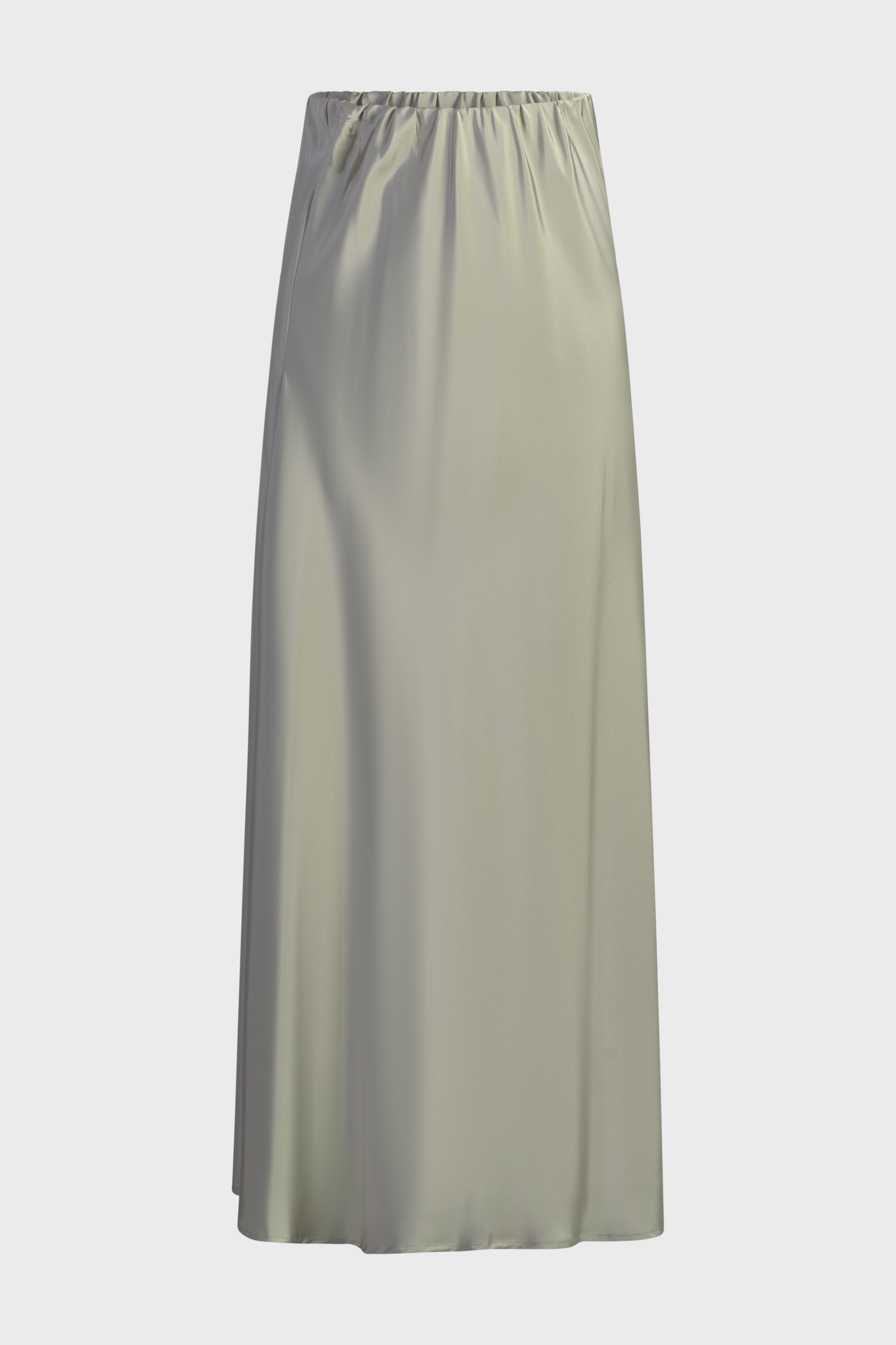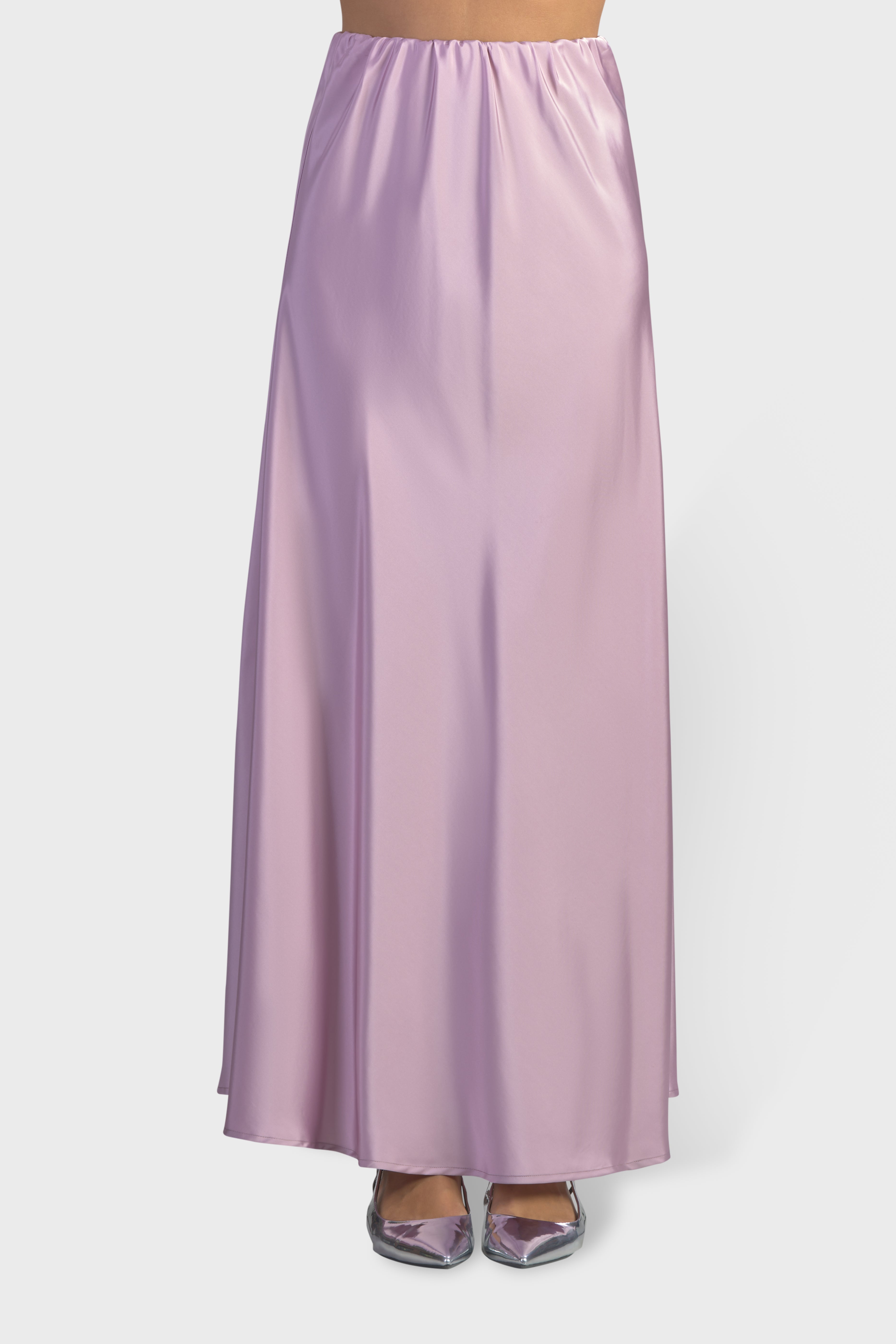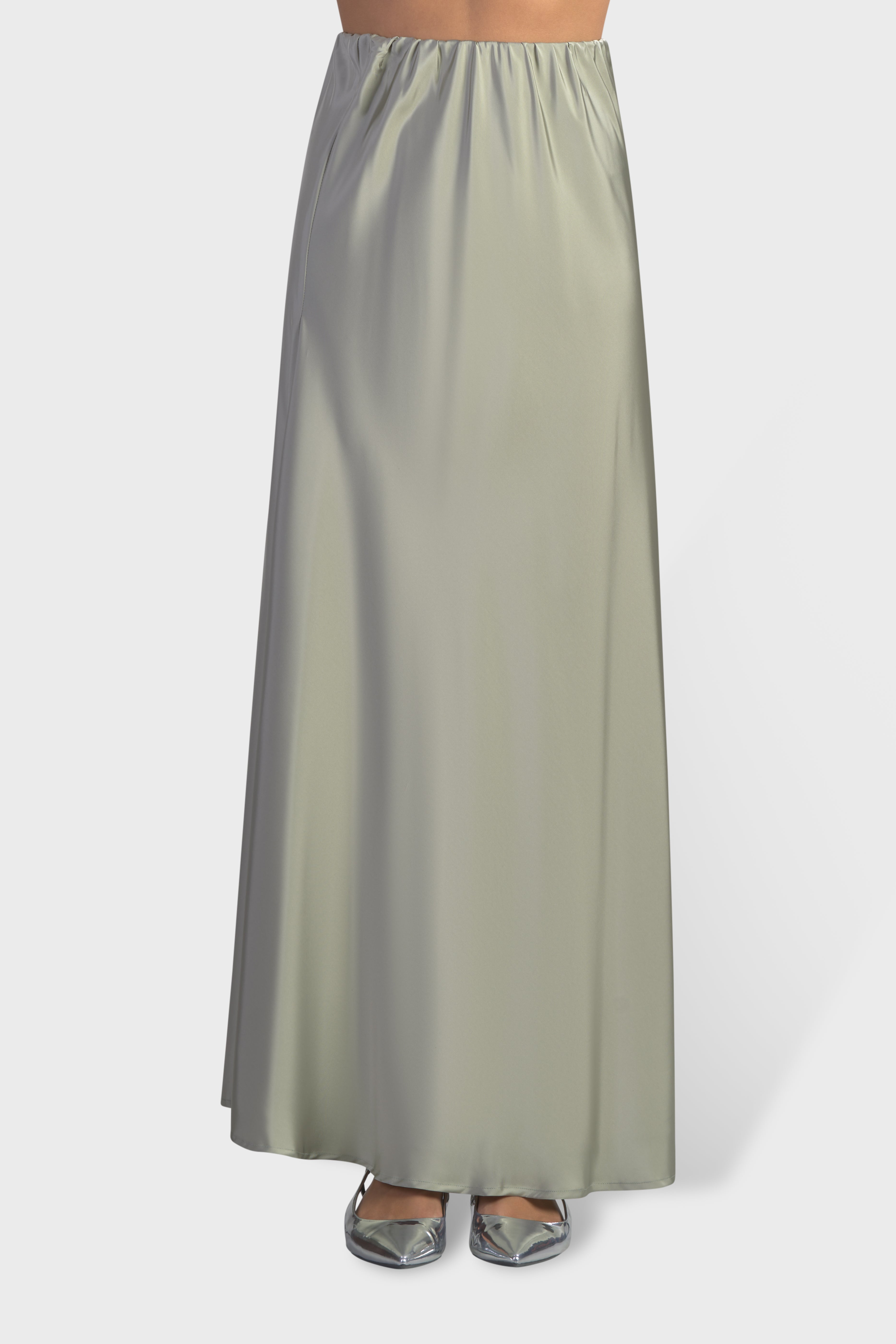 Questa gonna dalle linee fluide è leggermente svasata e ondulante al fondo. Realizzata in uno scivoloso e lucente raso, liscio al tatto, tessuto che si presta a vestire in maniera impeccabile qualsiasi tipo di corpo. La silhouette semplice e sofisticata, è caratterizzata dall’elastico nascosto in vita, in grado di definire un effetto arricciato. La gonna è perfetta per essere abbinata con facilità alla camicia Iside in coordinato della collezione per un look chic e senza tempo.
