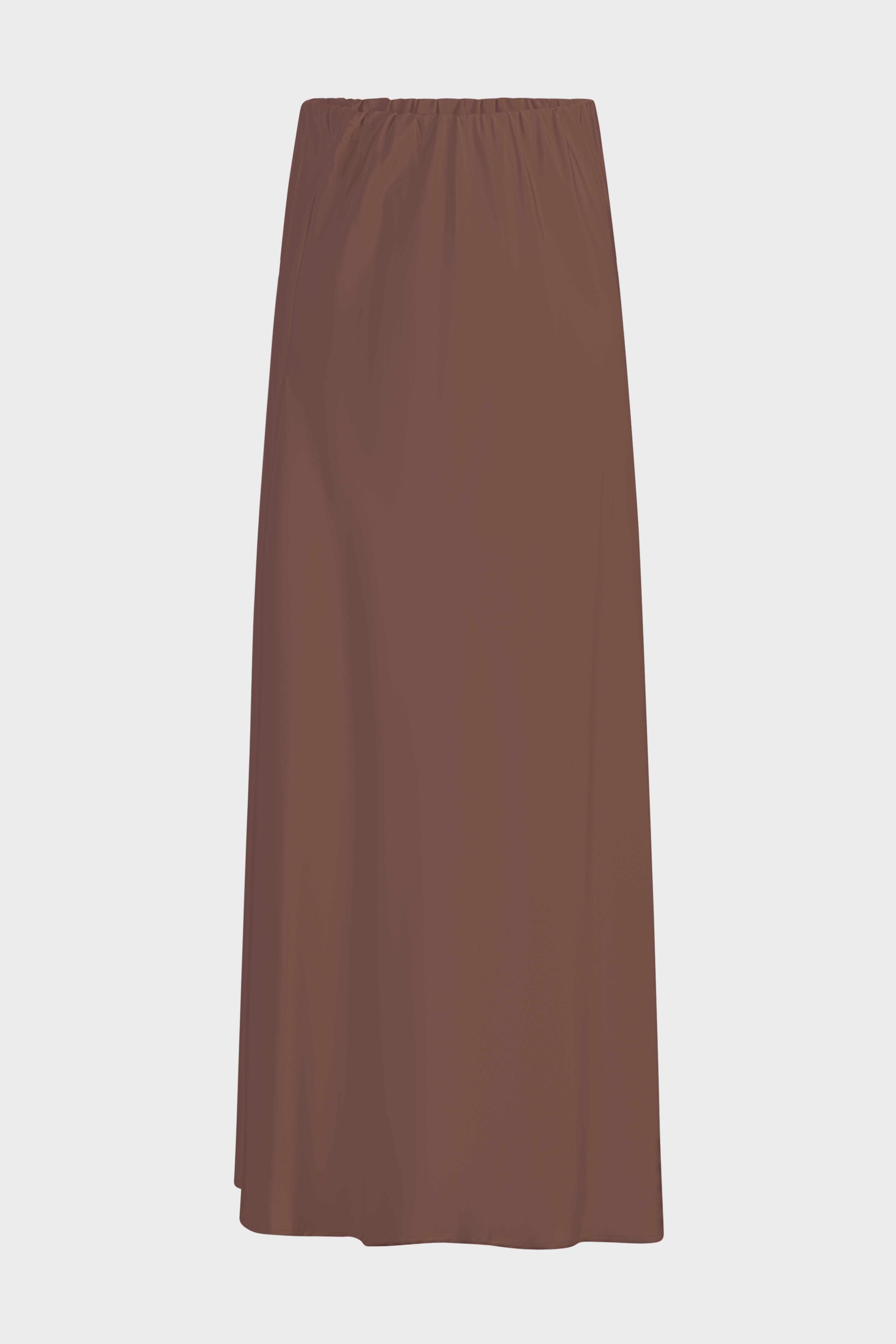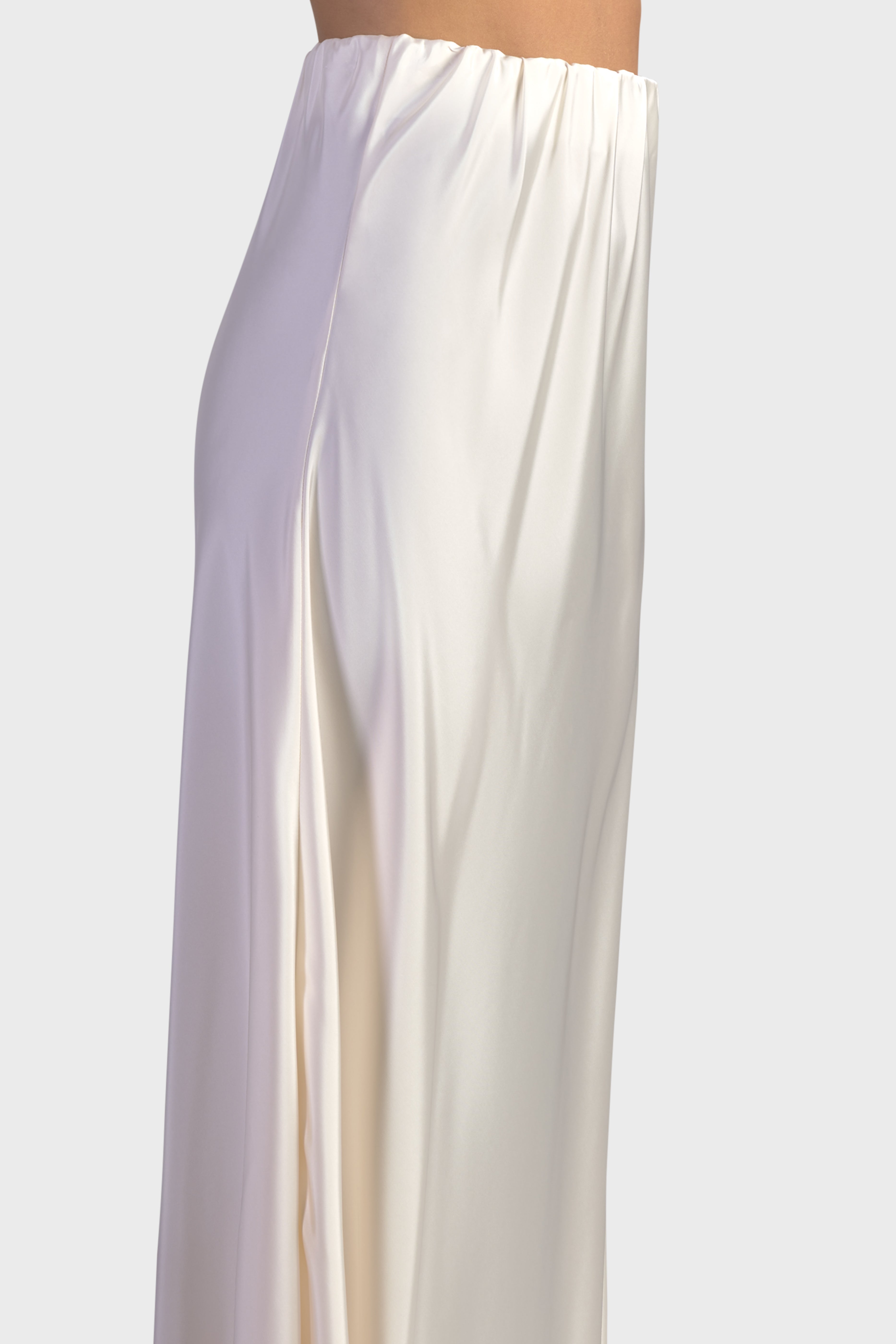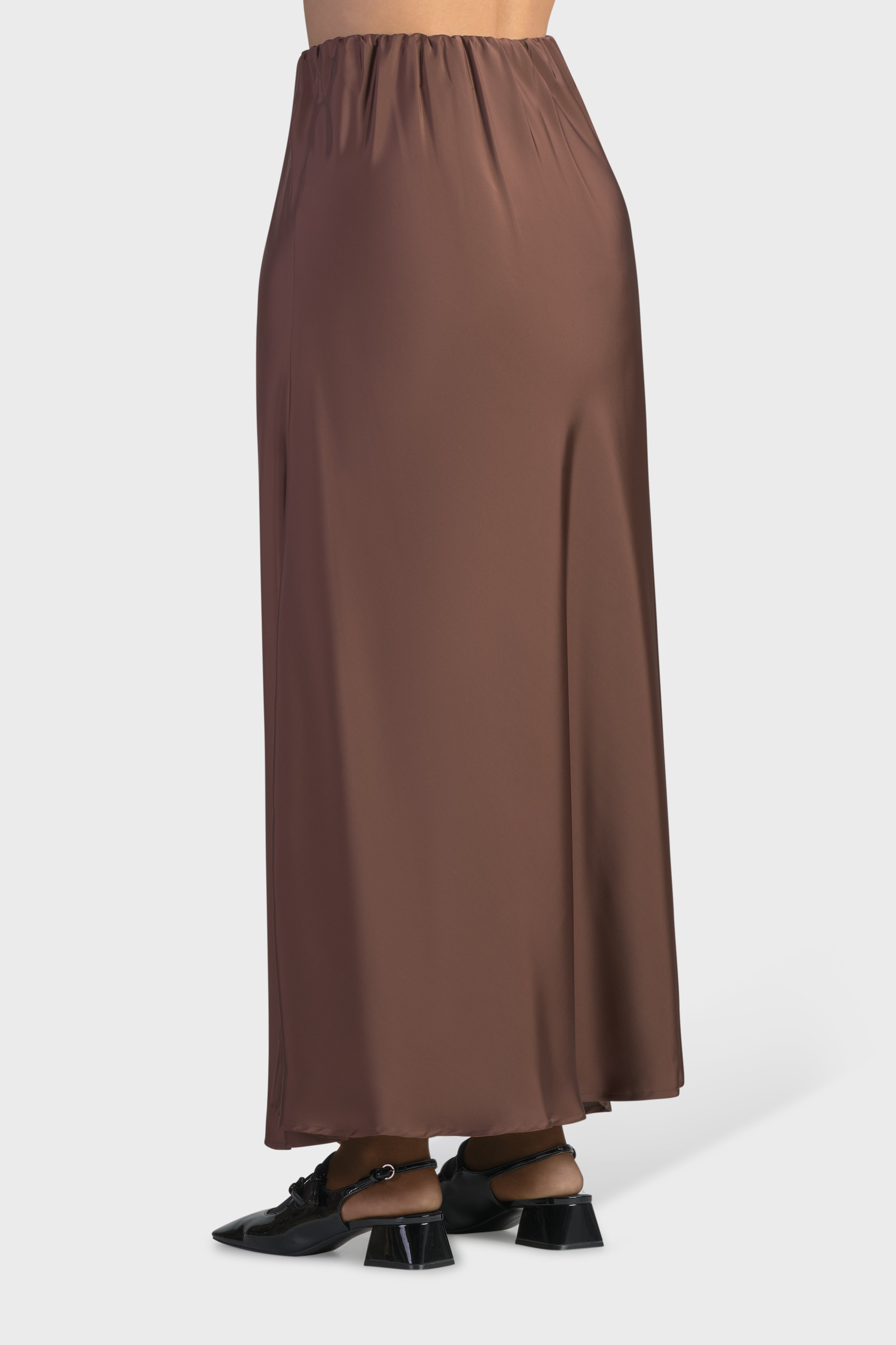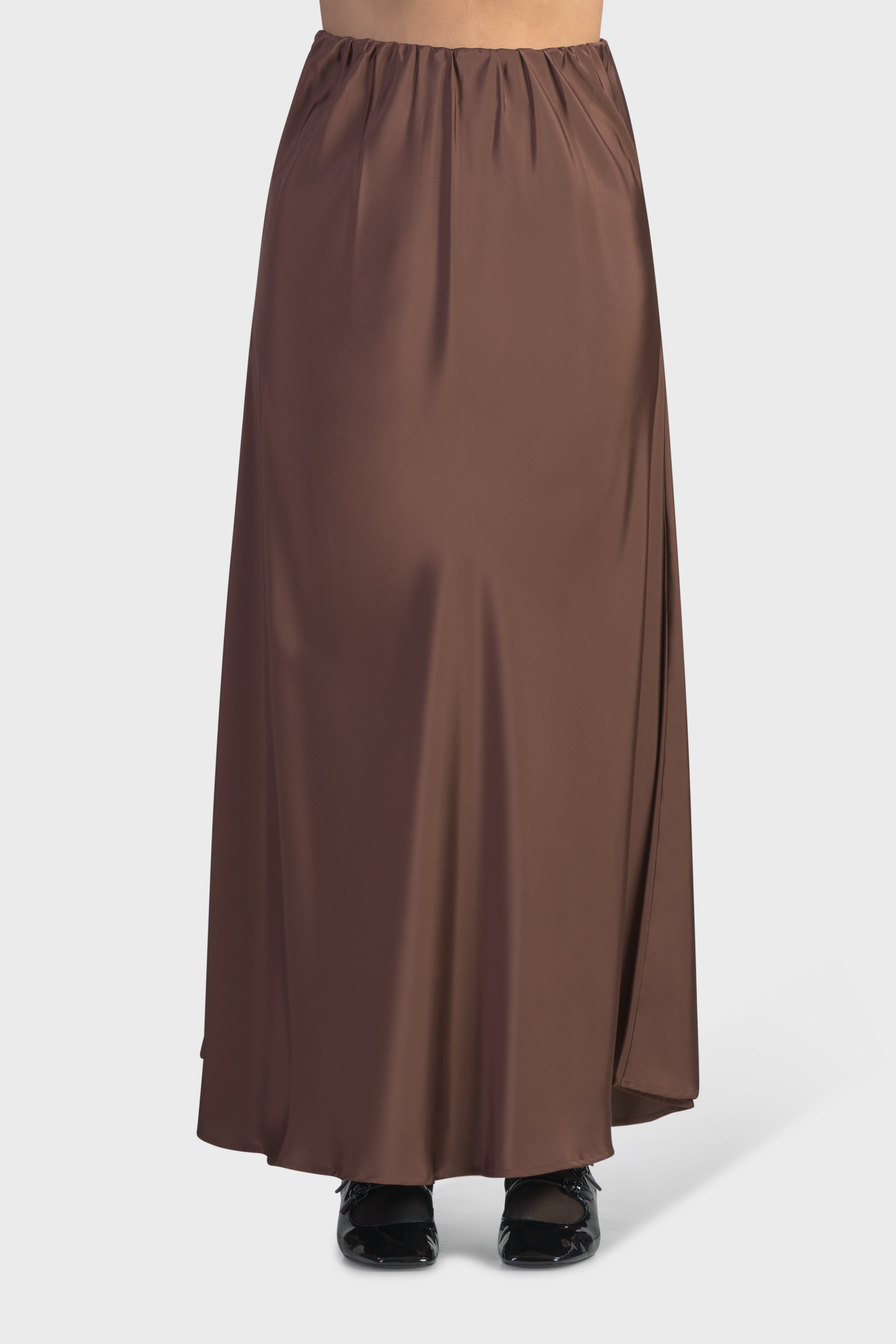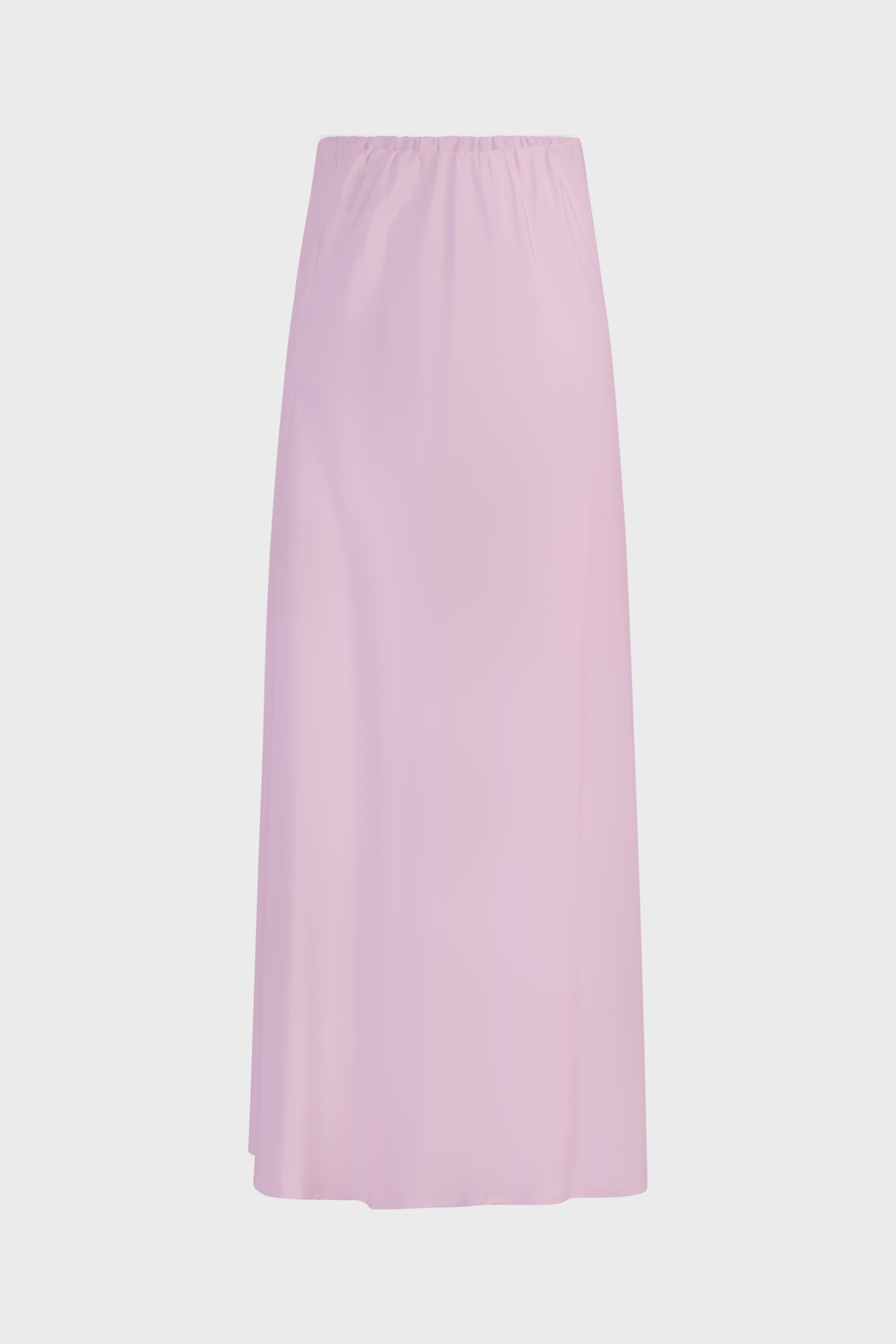 Questa gonna dalle linee fluide è leggermente svasata e ondulante al fondo. Realizzata in uno scivoloso e lucente raso, liscio al tatto, tessuto che si presta a vestire in maniera impeccabile qualsiasi tipo di corpo. La silhouette semplice e sofisticata, è caratterizzata dall’elastico nascosto in vita, in grado di definire un effetto arricciato. La gonna è perfetta per essere abbinata con facilità alla camicia Iside in coordinato della collezione per un look chic e senza tempo.