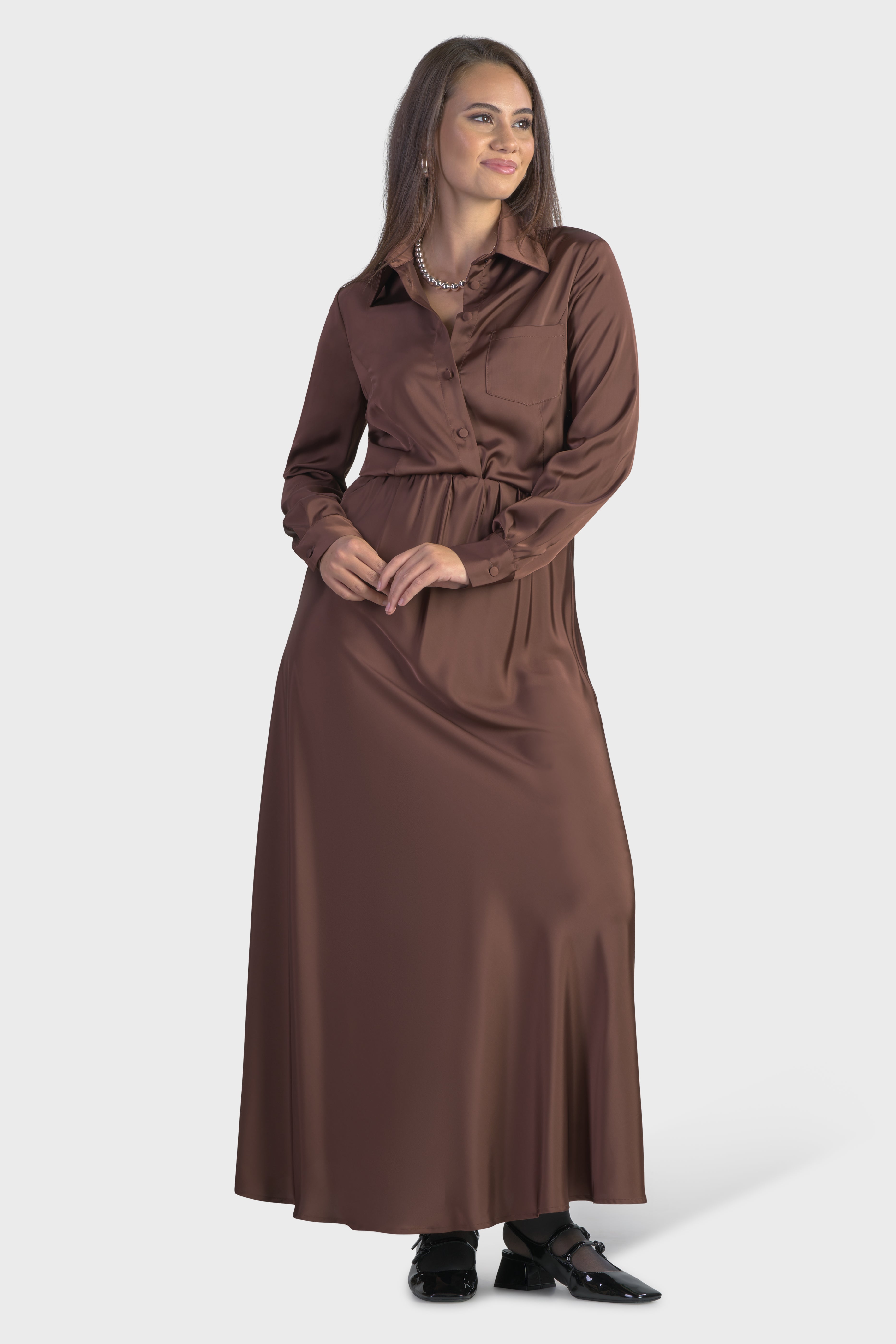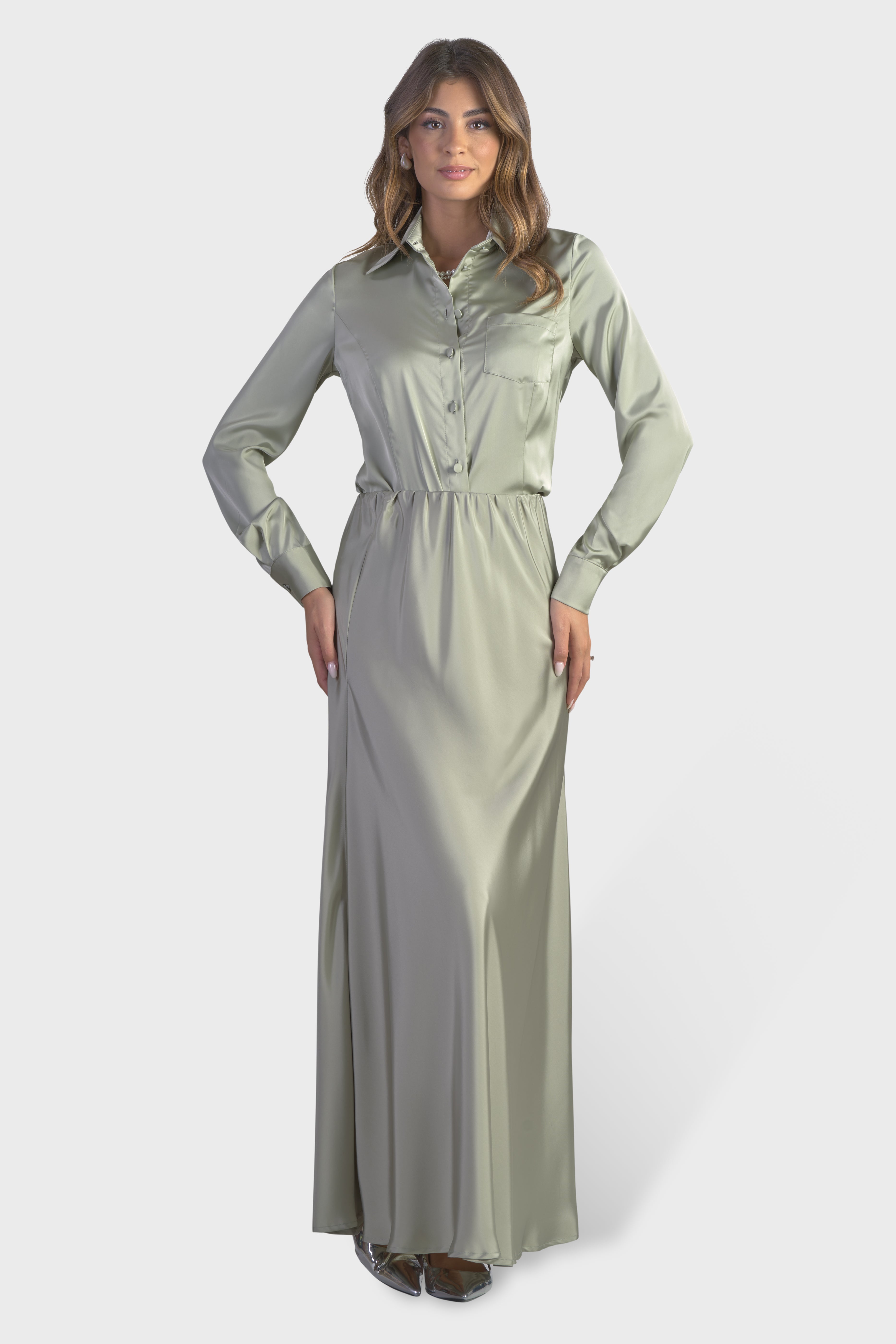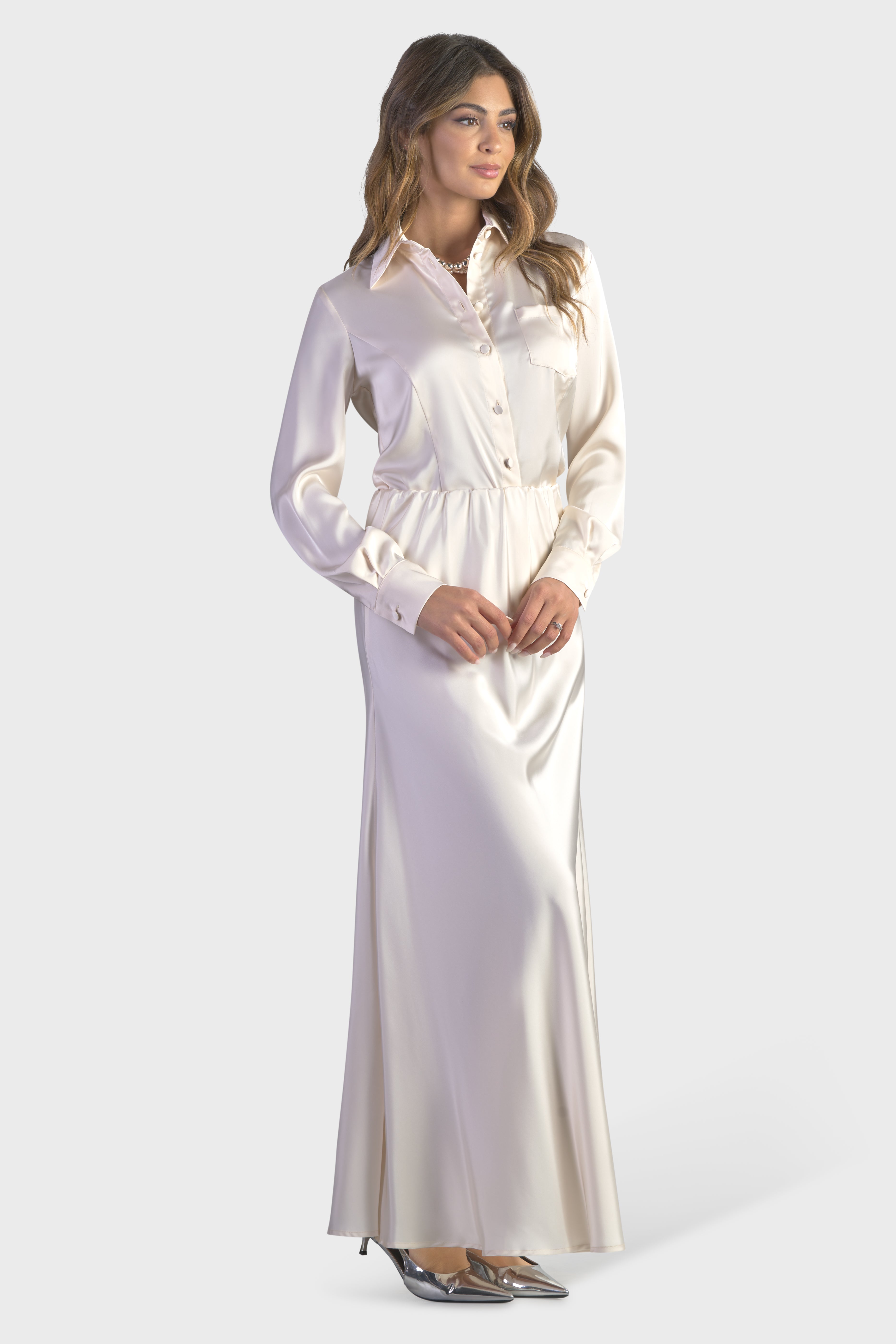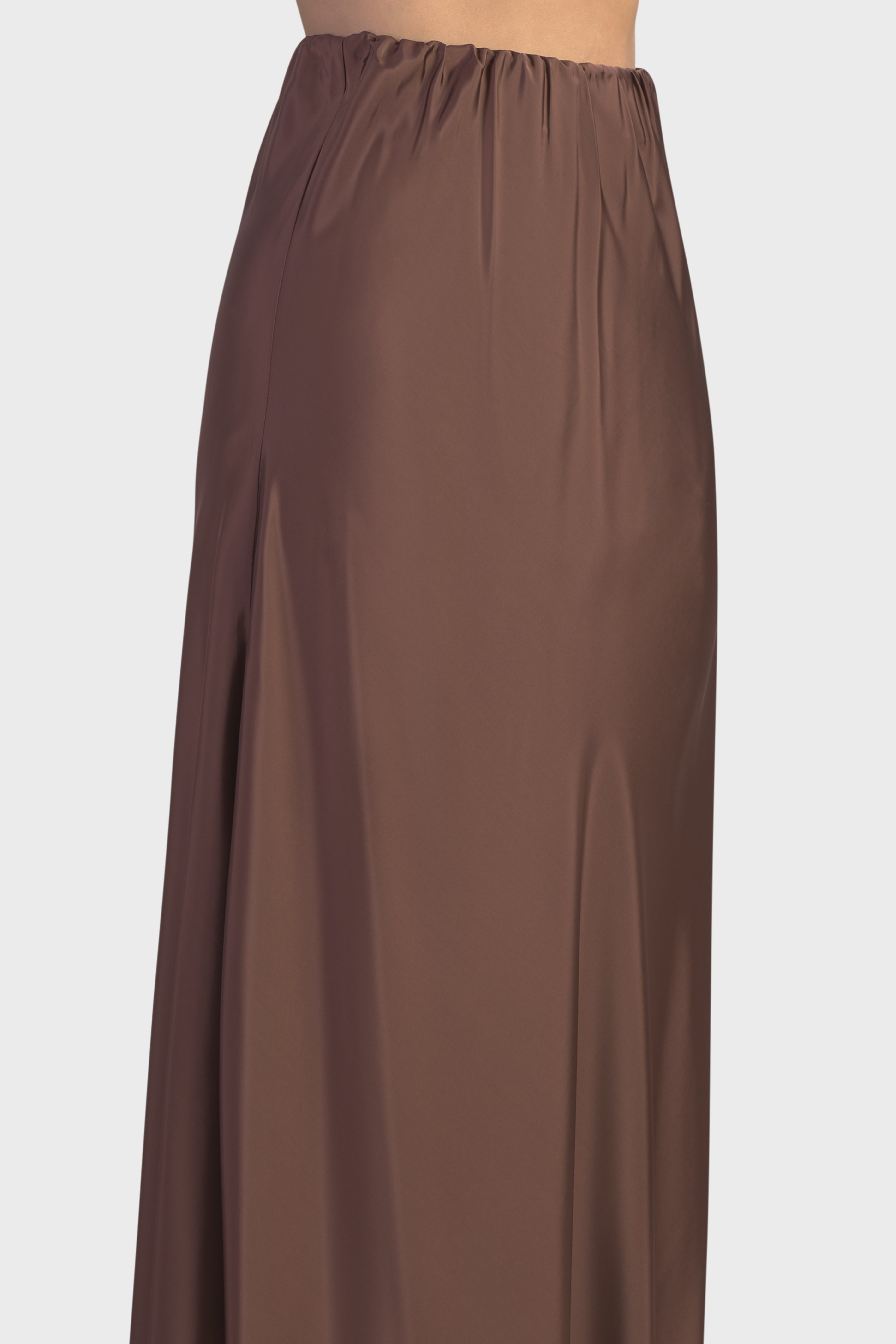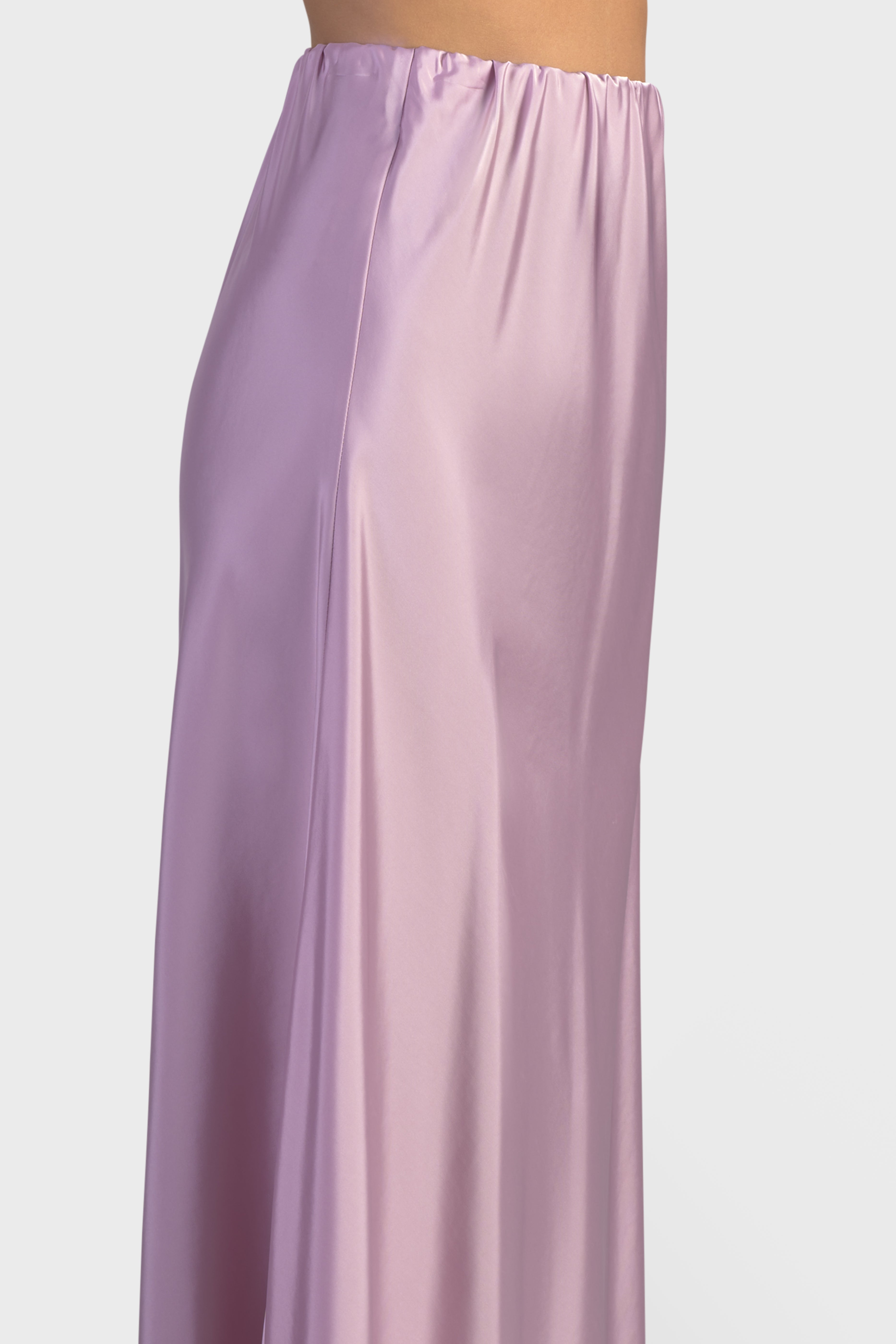 Questa gonna dalle linee fluide è leggermente svasata e ondulante al fondo. Realizzata in uno scivoloso e lucente raso, liscio al tatto, tessuto che si presta a vestire in maniera impeccabile qualsiasi tipo di corpo. La silhouette semplice e sofisticata, è caratterizzata dall’elastico nascosto in vita, in grado di definire un effetto arricciato. La gonna è perfetta per essere abbinata con facilità alla camicia Iside in coordinato della collezione per un look chic e senza tempo.