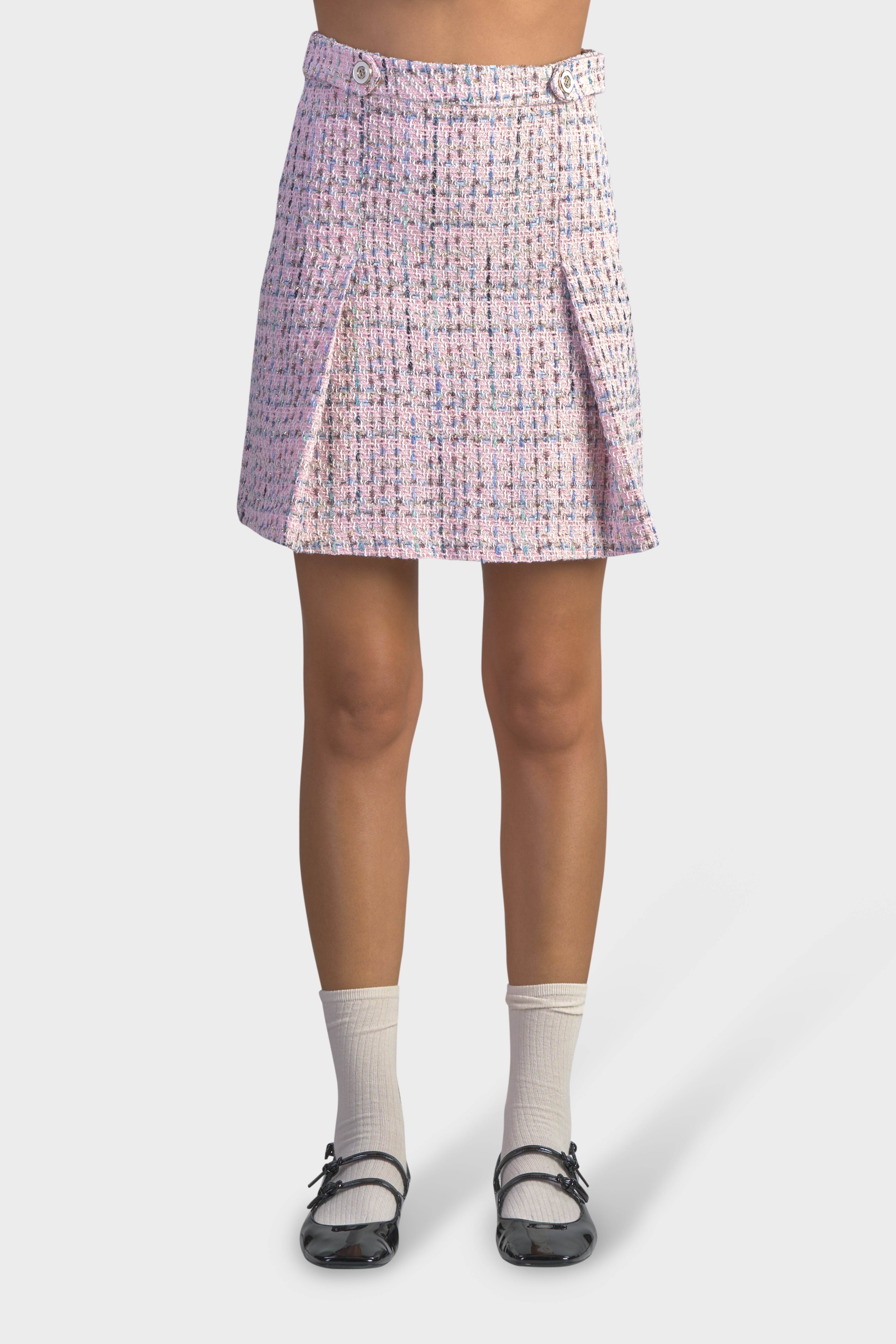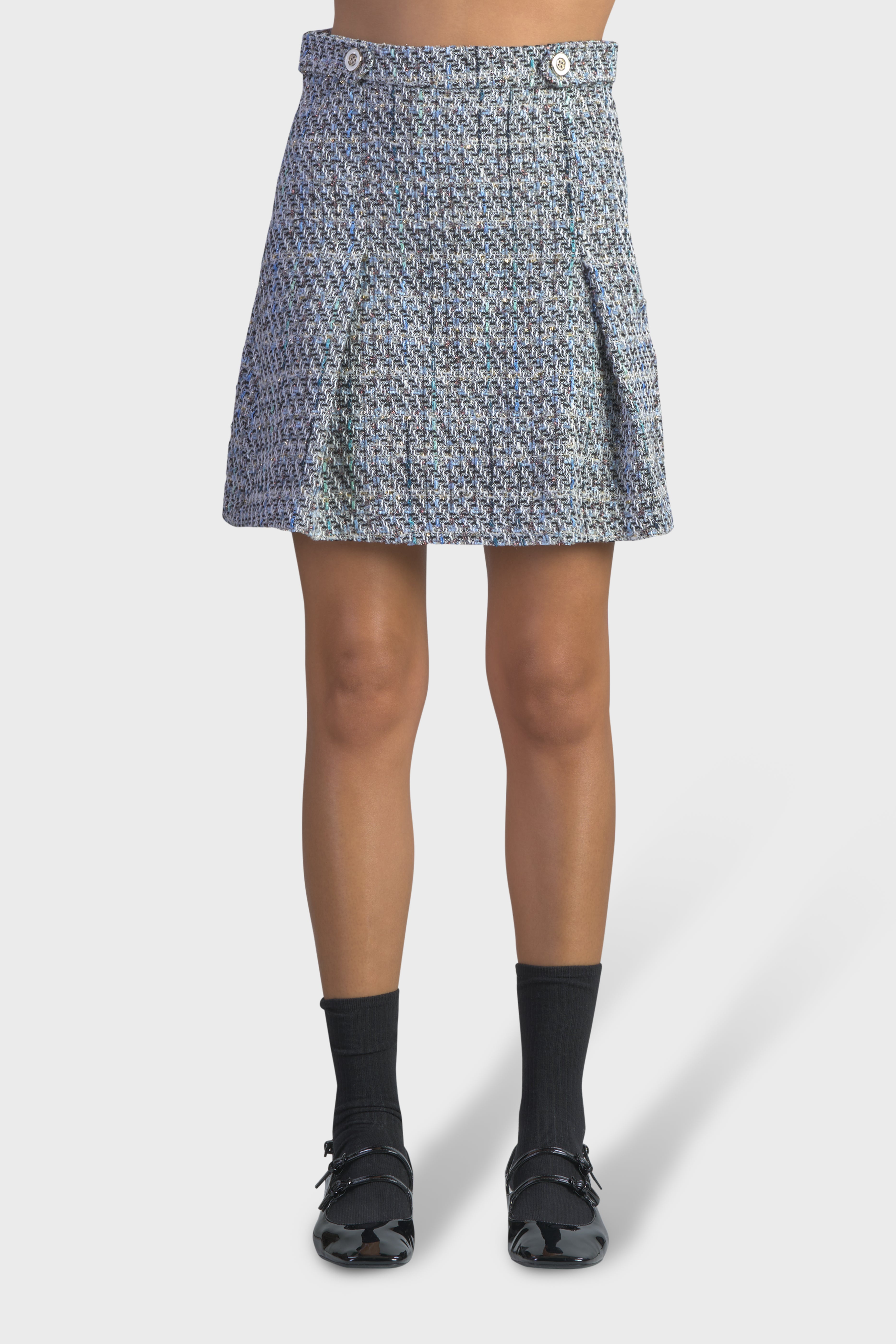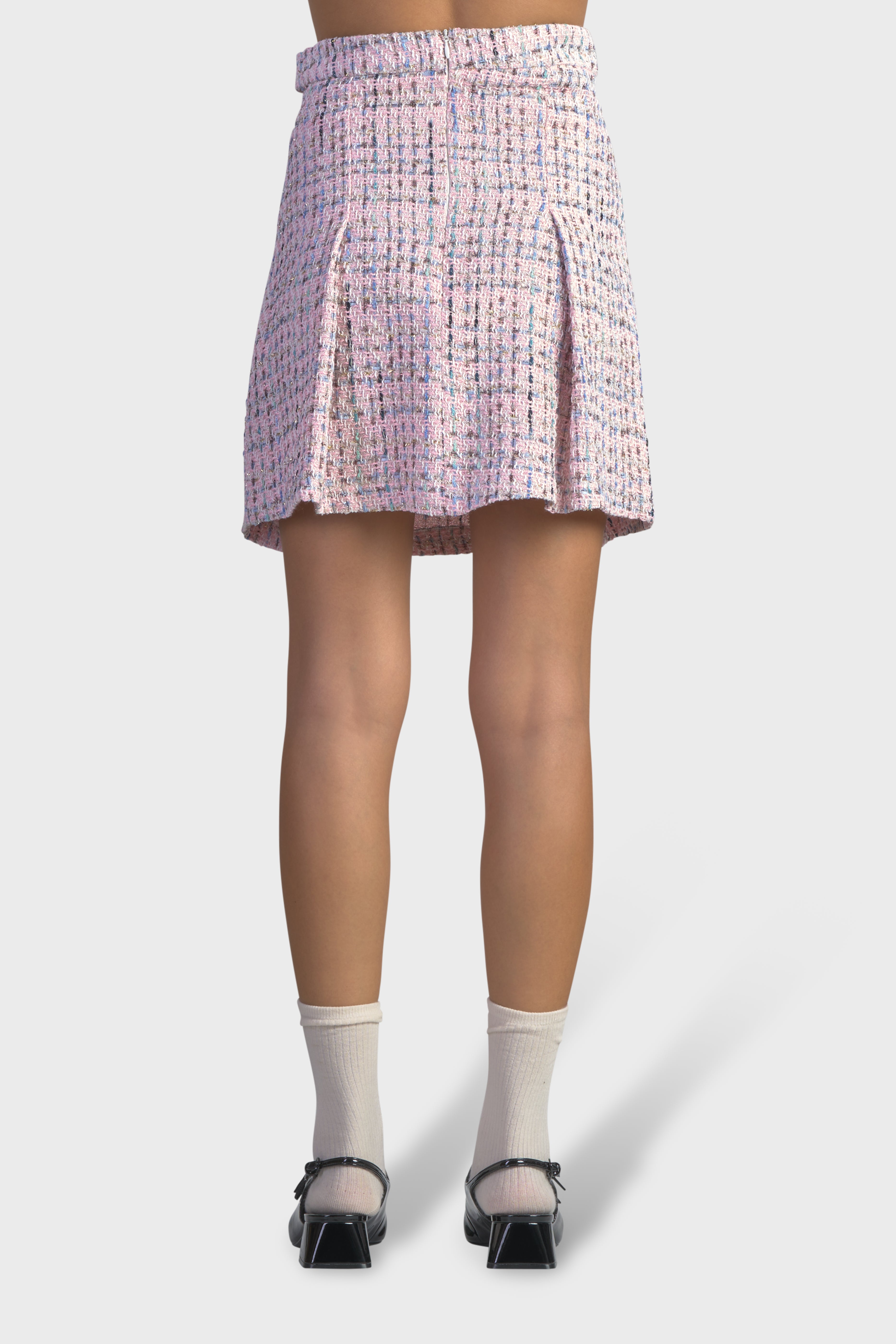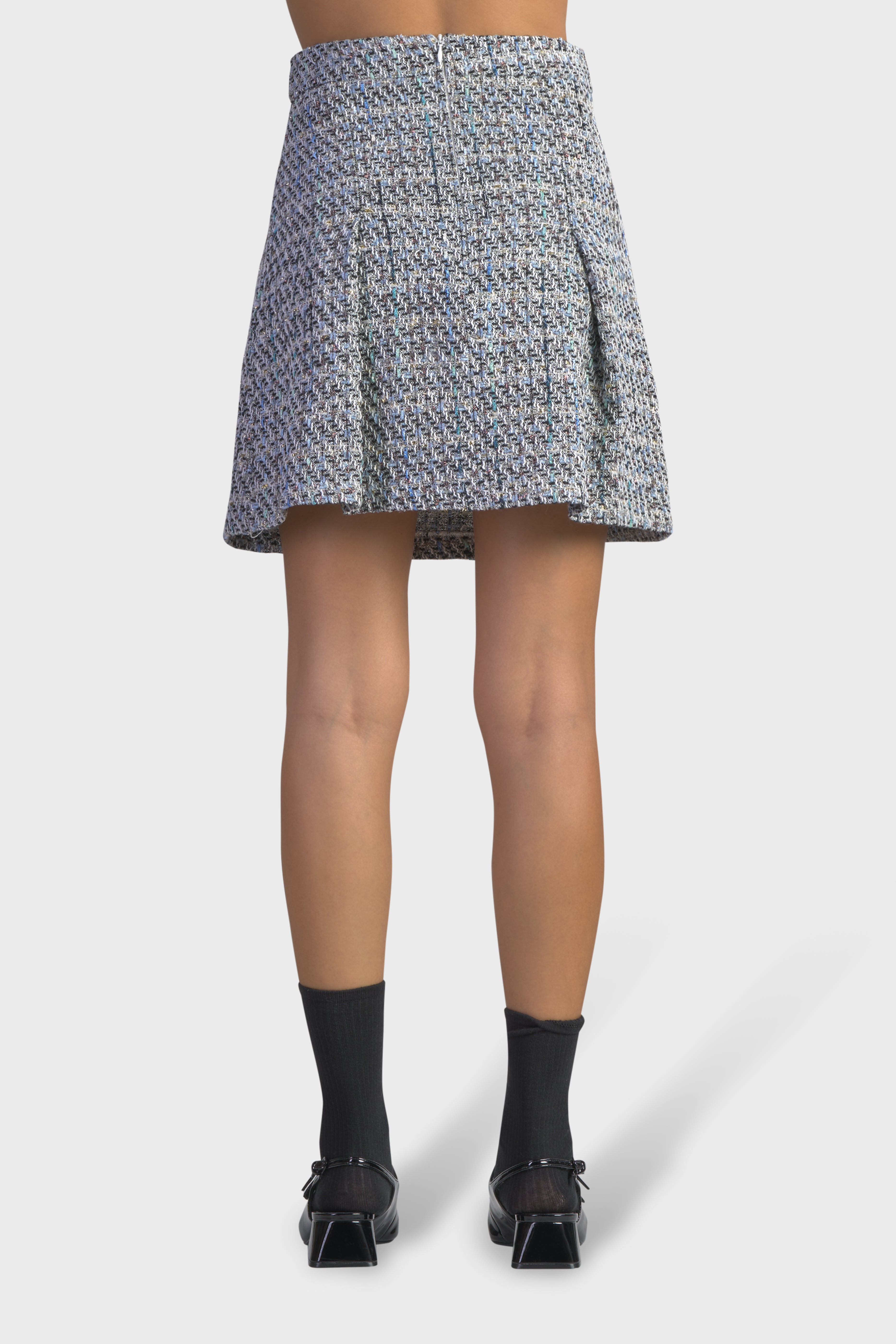 La linea svasata di questa gonna, progettata per abbracciare la figura femminile in modo elegante e distintivo, è in grado di adattarsi a tutte le tipologie di corpo. Realizzata in tweed multicolor, tessuto dall’iconica trama morbida che conferisce raffinatezza e originalità. Il modello vita alta è caratterizzato dal bustino impreziosito dai bottoni con ghiera. Il taglio morbido dona un effetto a pieghe che scorre delicatamente lungo le gambe, offrendo comfort e libertà di movimento. Infine sul retro è presente una chiusura con cerniera nascosta per una maggiore rifinitura. Ideale da indossare in occasioni speciali insieme alla giacca Tweed Crop in coordinato della collezione, creando un’aura di eleganza senza tempo.