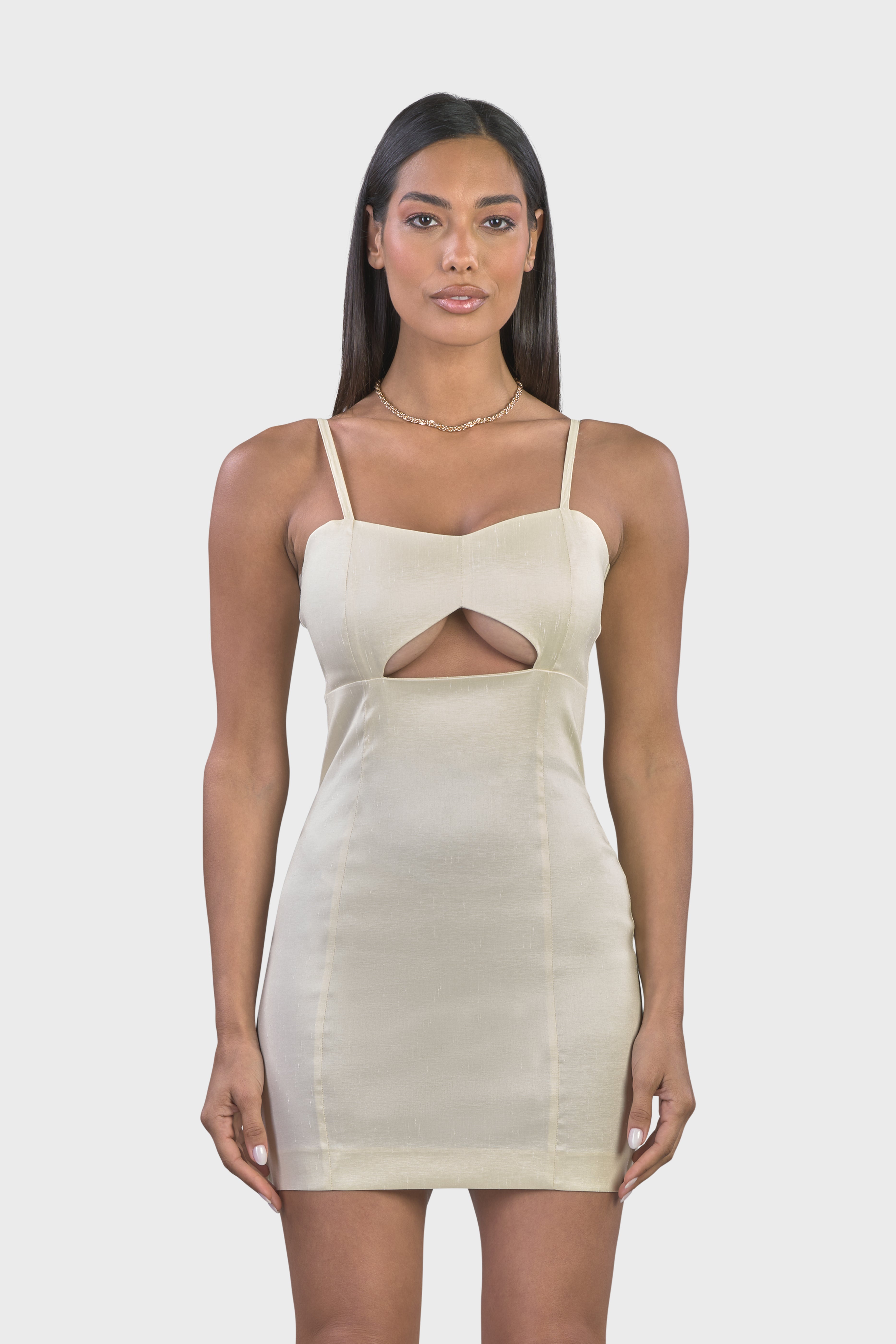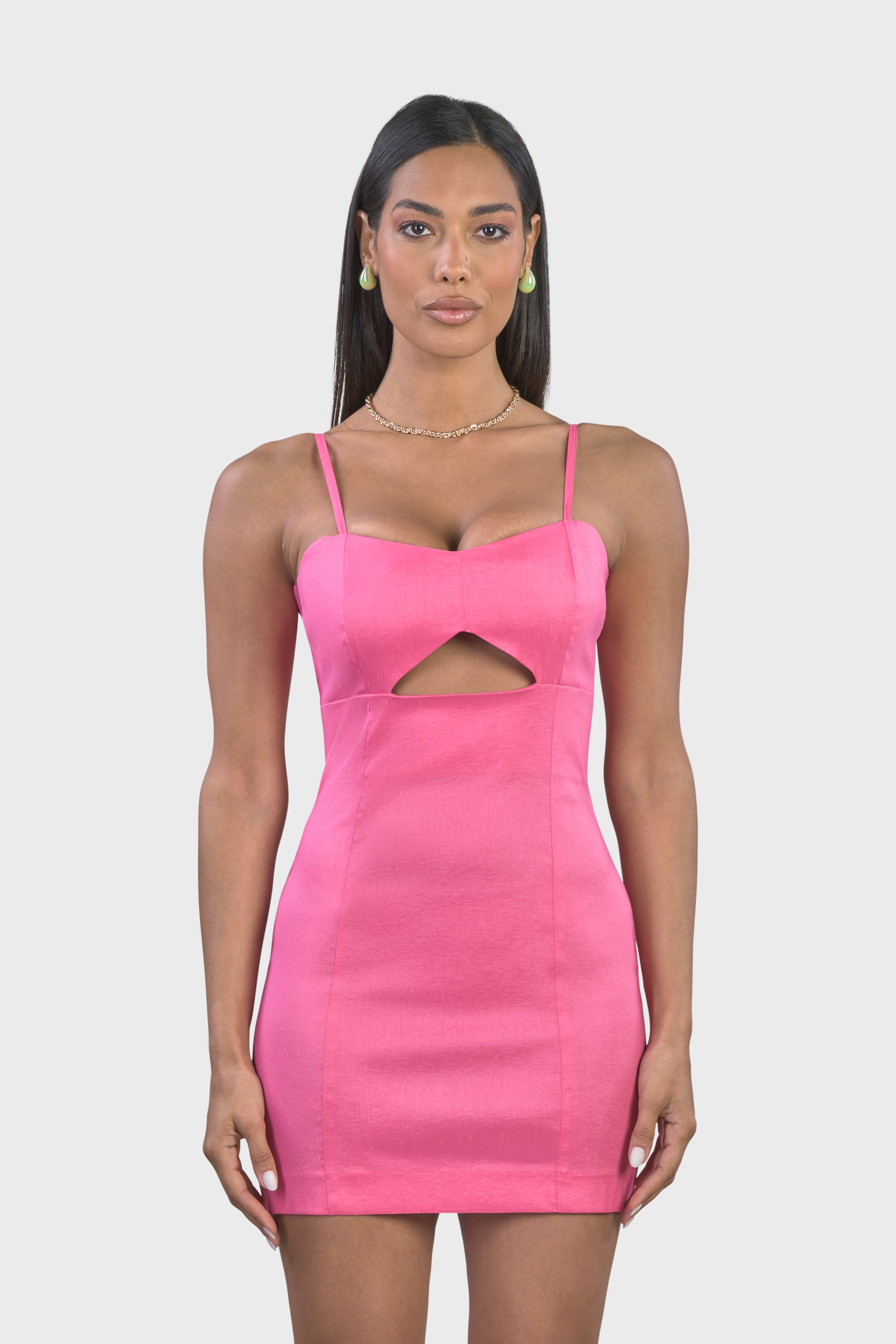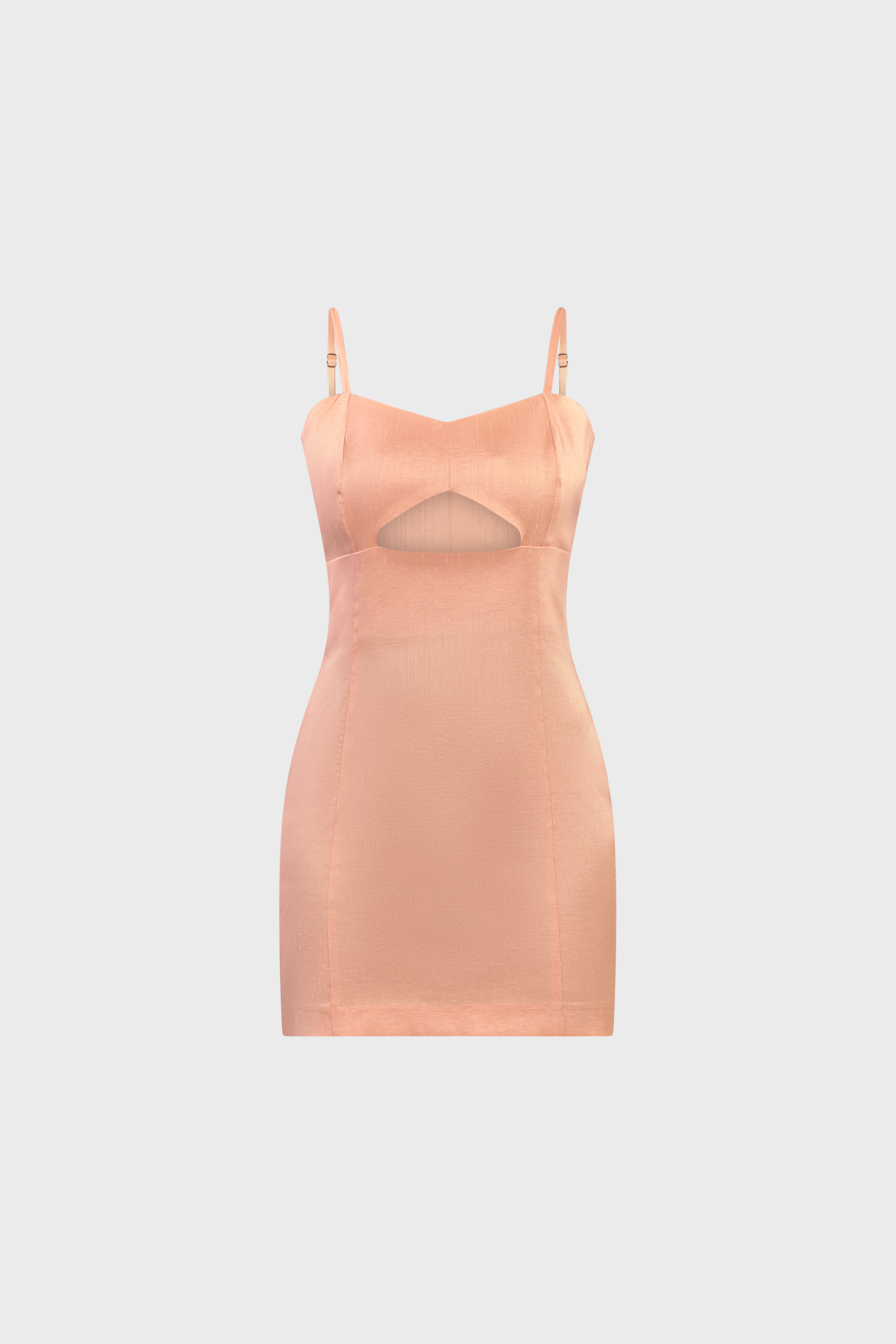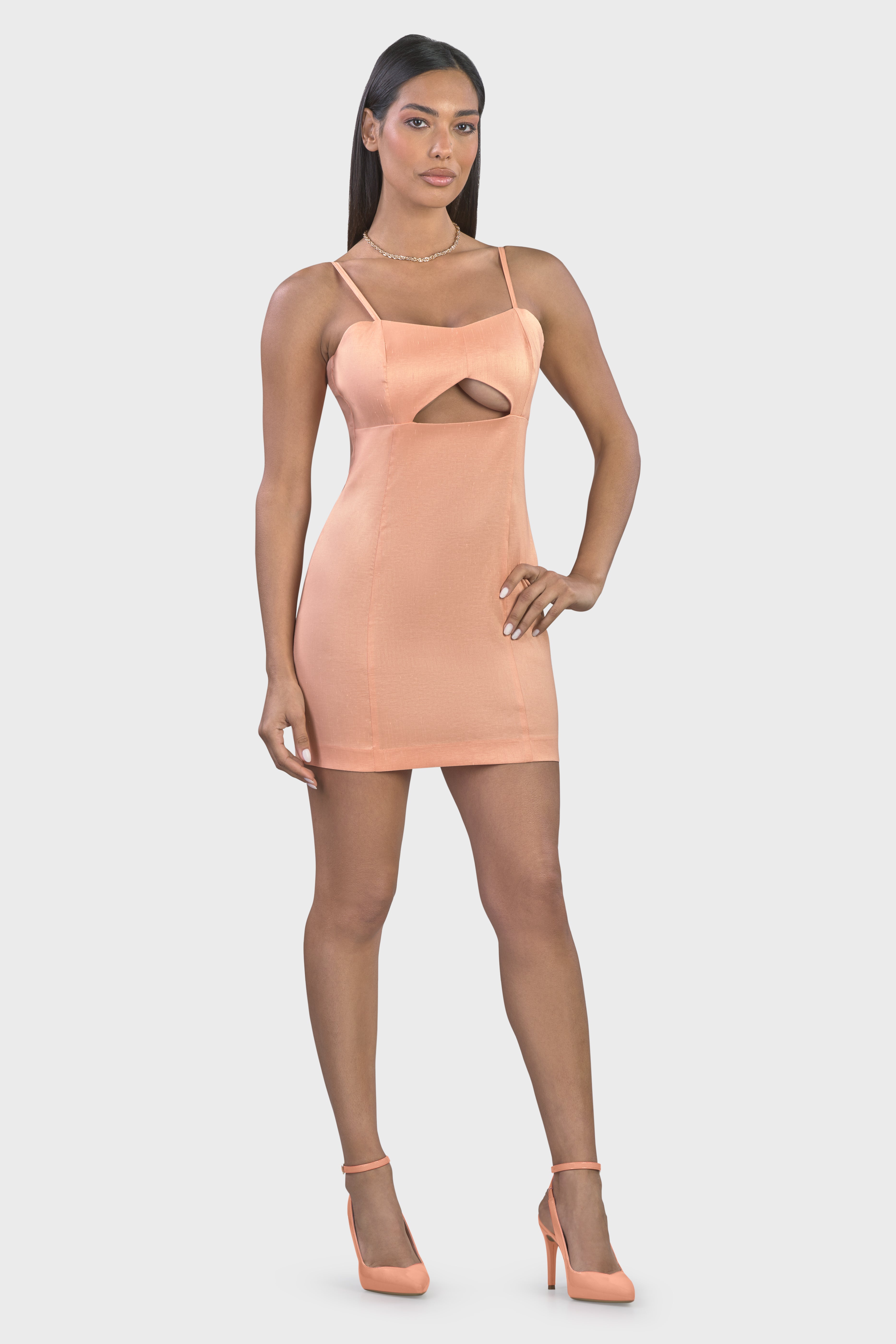 Il design seducente di questo abito corto, valorizza una silhouette dal taglio dritto rendendolo un capo versatile. E’ realizzato in un luminoso shantung, dalla struttura serrante e avvolgente. Il modello è dettagliato dalla scollatura leggermente a V e dal cut-out centrale, per un look semplice e pelle in vista. Il modello è completato dalle spalline sottili, regolabili. Perfetto da indossare per una cena romantica, o perché no, per impreziosire con un tocco di stile il tuo look casual di tutti i -giorni.