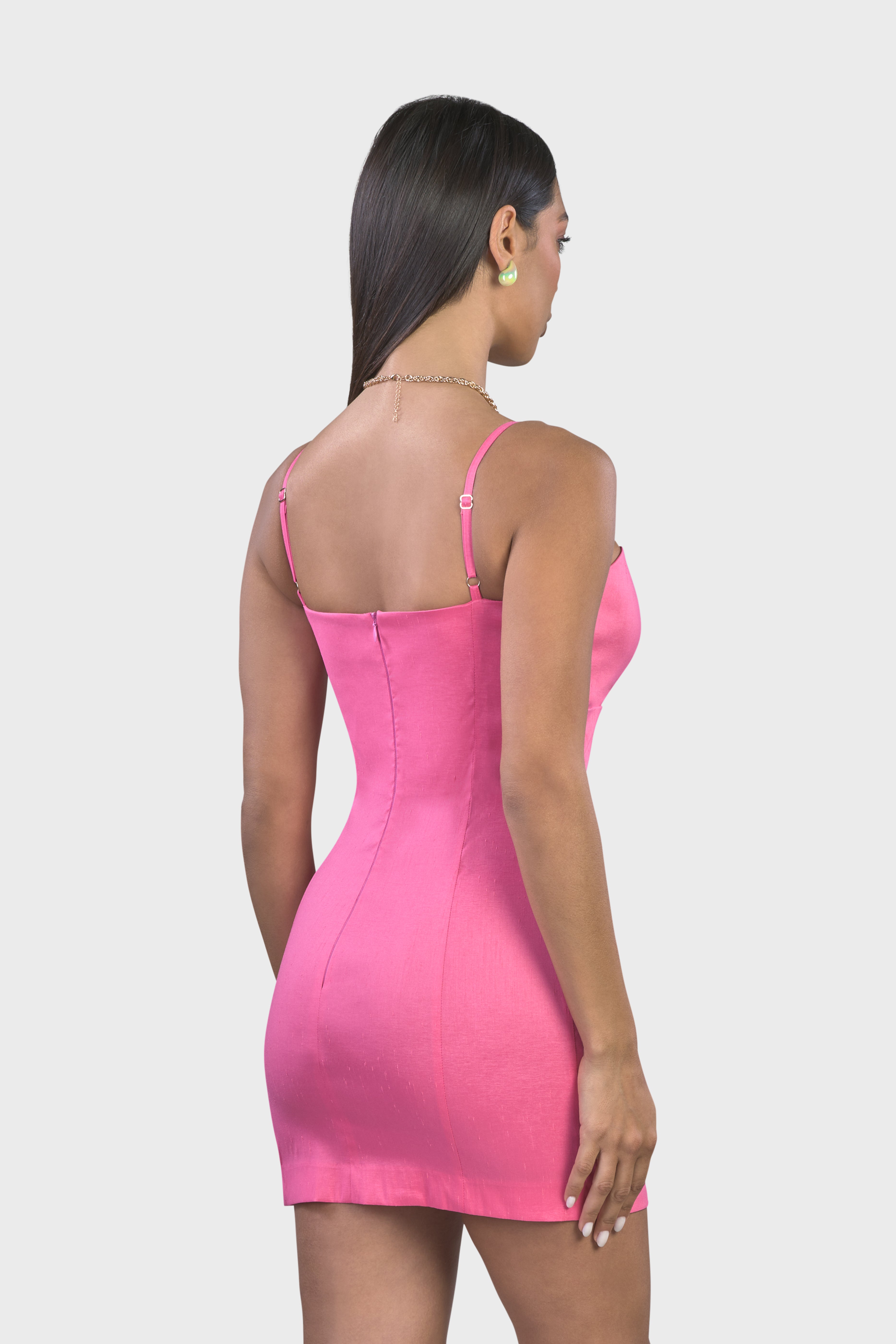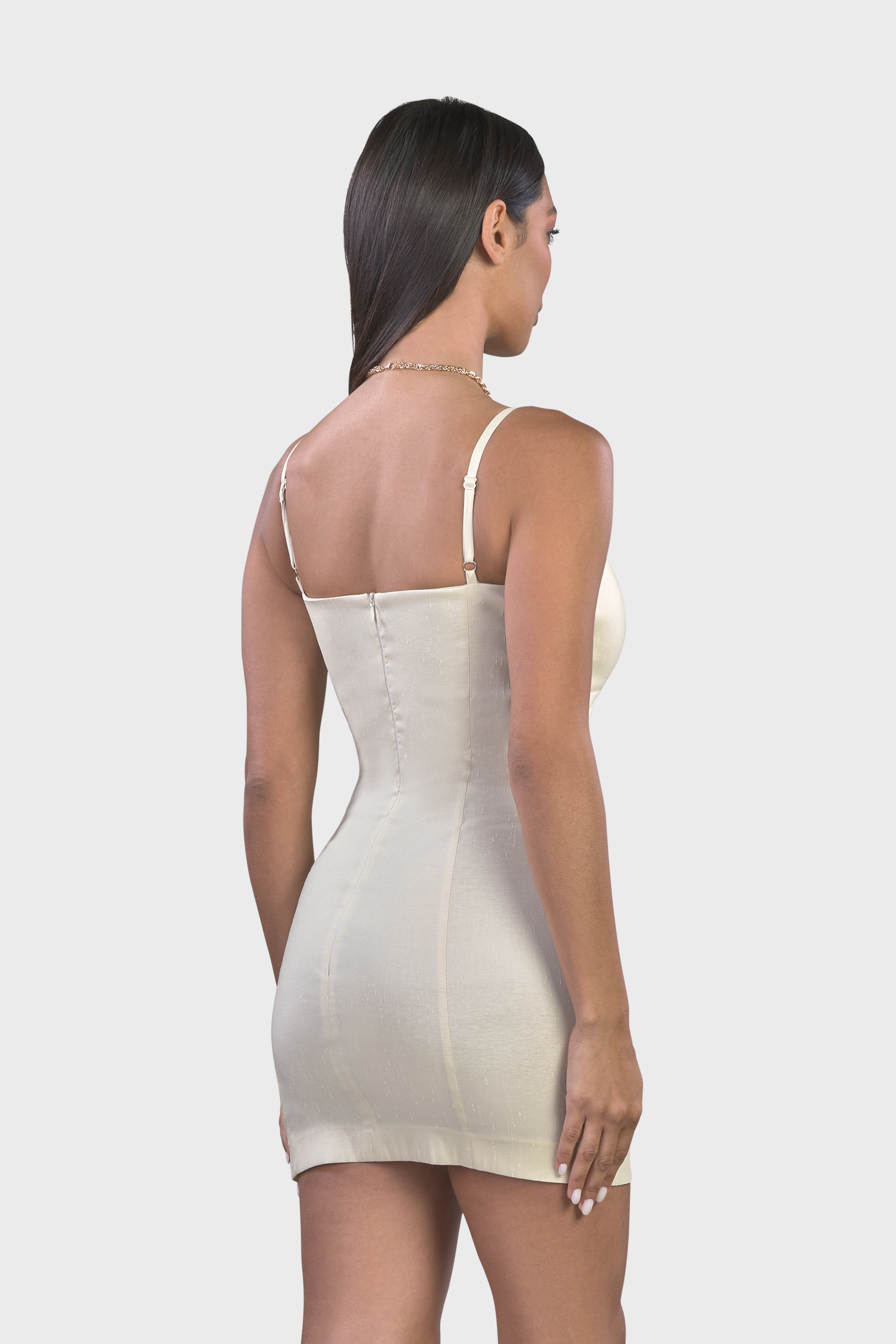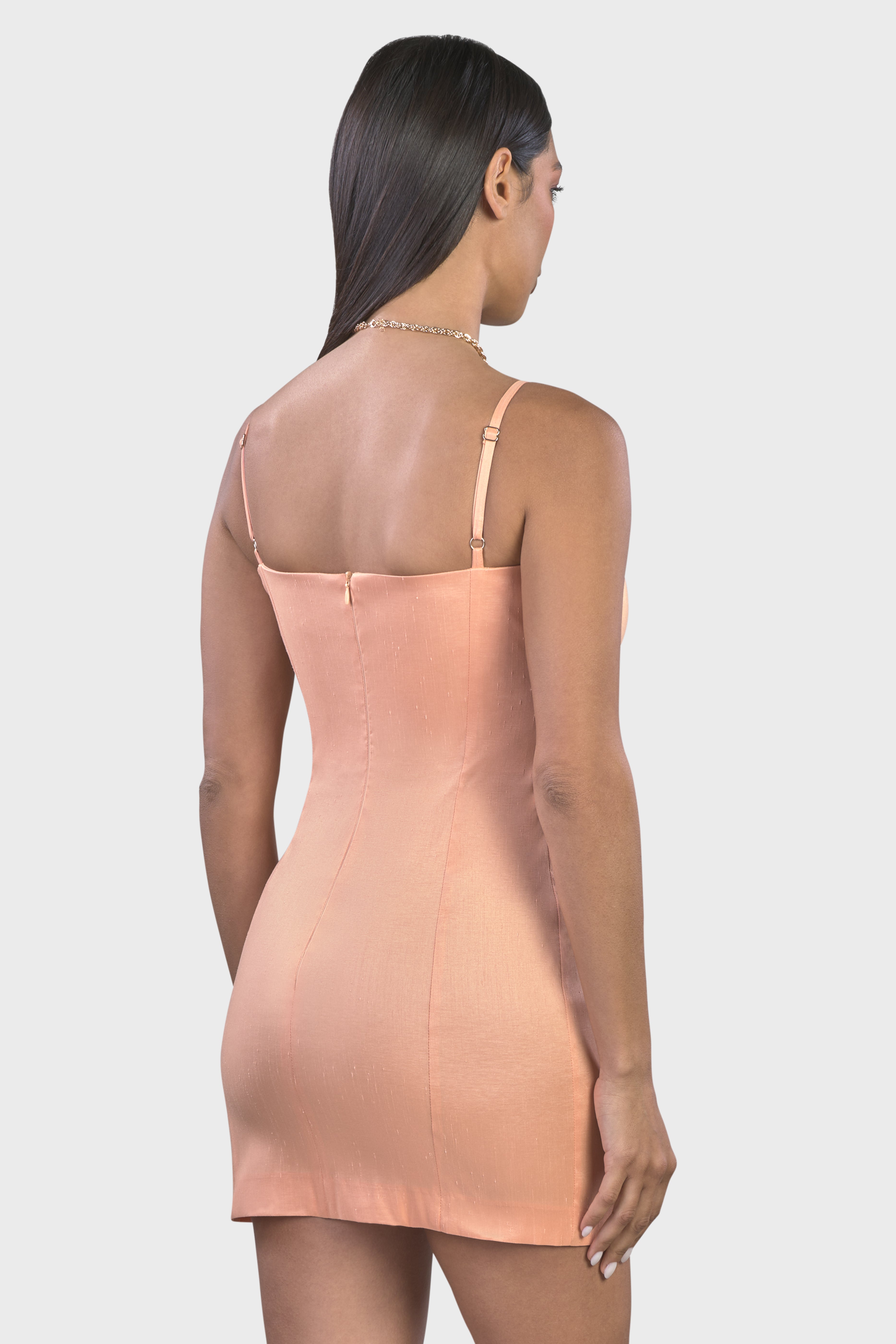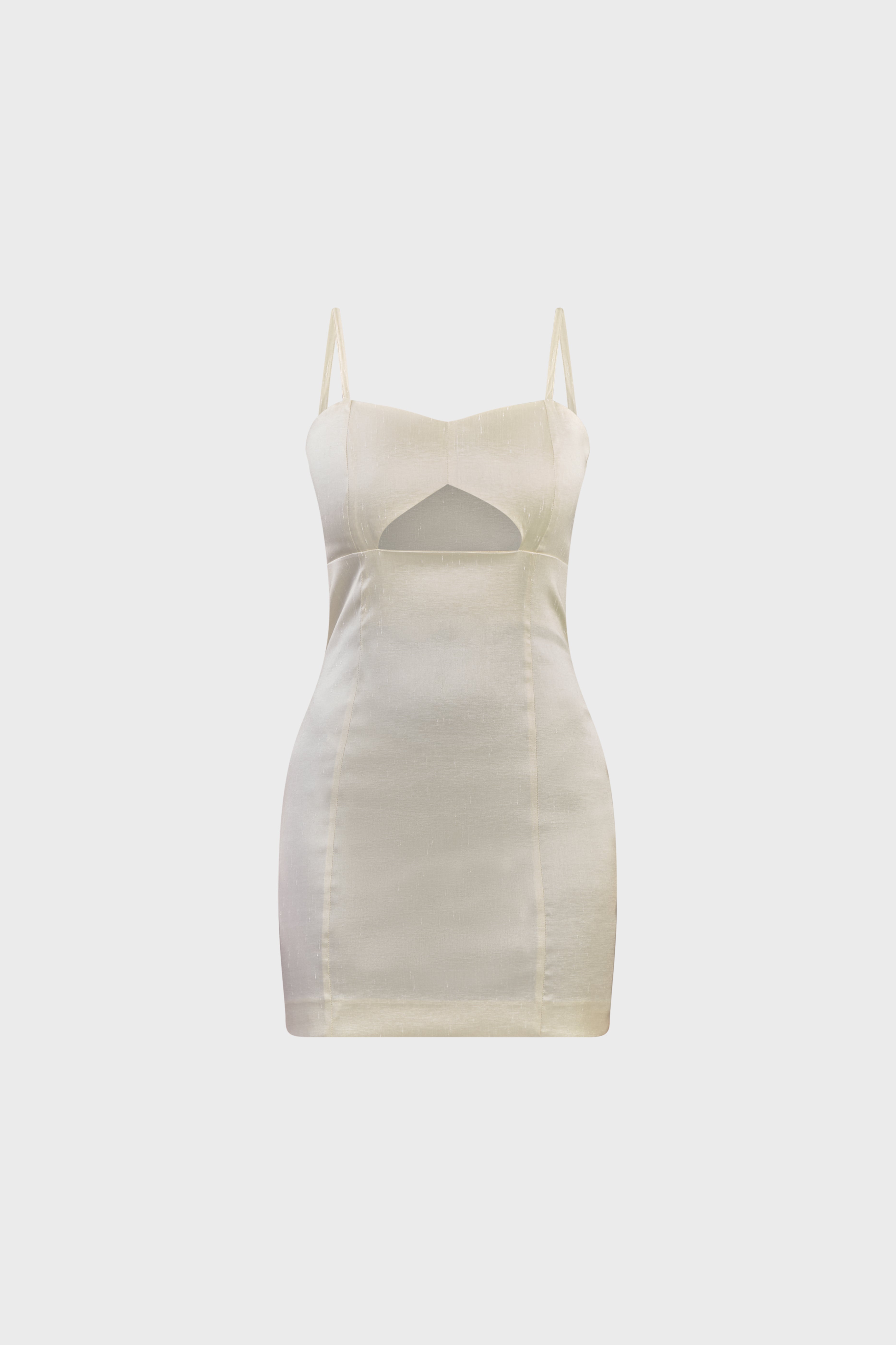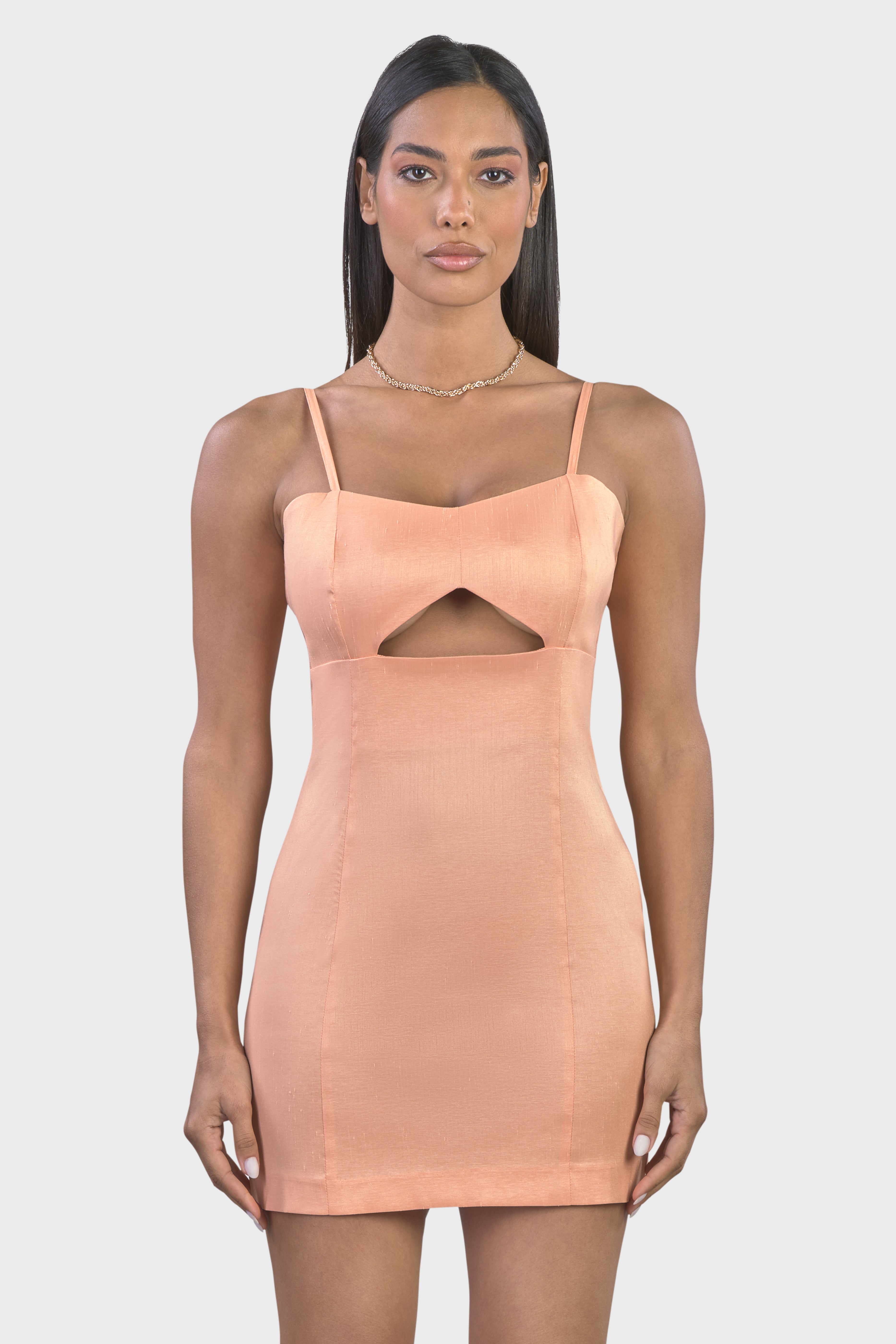 Il design seducente di questo abito corto, valorizza una silhouette dal taglio dritto rendendolo un capo versatile. E’ realizzato in un luminoso shantung, dalla struttura serrante e avvolgente. Il modello è dettagliato dalla scollatura leggermente a V e dal cut-out centrale, per un look semplice e pelle in vista. Il modello è completato dalle spalline sottili, regolabili. Perfetto da indossare per una cena romantica, o perché no, per impreziosire con un tocco di stile il tuo look casual di tutti i -giorni.