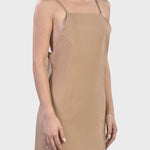Il modello è caratterizzato dalla scollo dritto delineato da due spalline regolabili. A completare il capo è l’ampia scollatura sulla schiena e la cerniera nascosta per una rifinitura sartoriale. Ideale da indossare per un aperitivo in spiaggia o perché no, per un brunch domenicale insieme a un paio di sandali infradito.