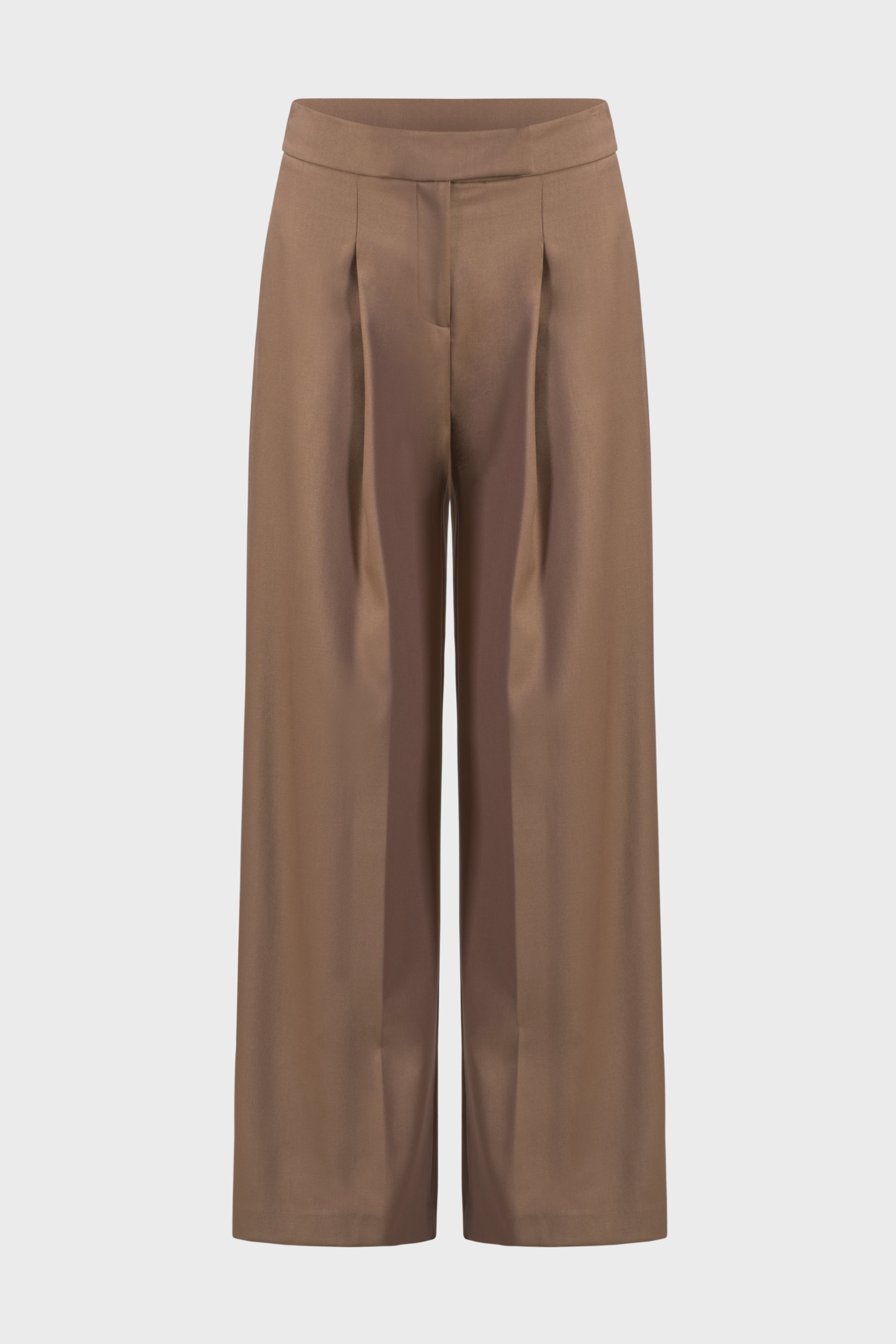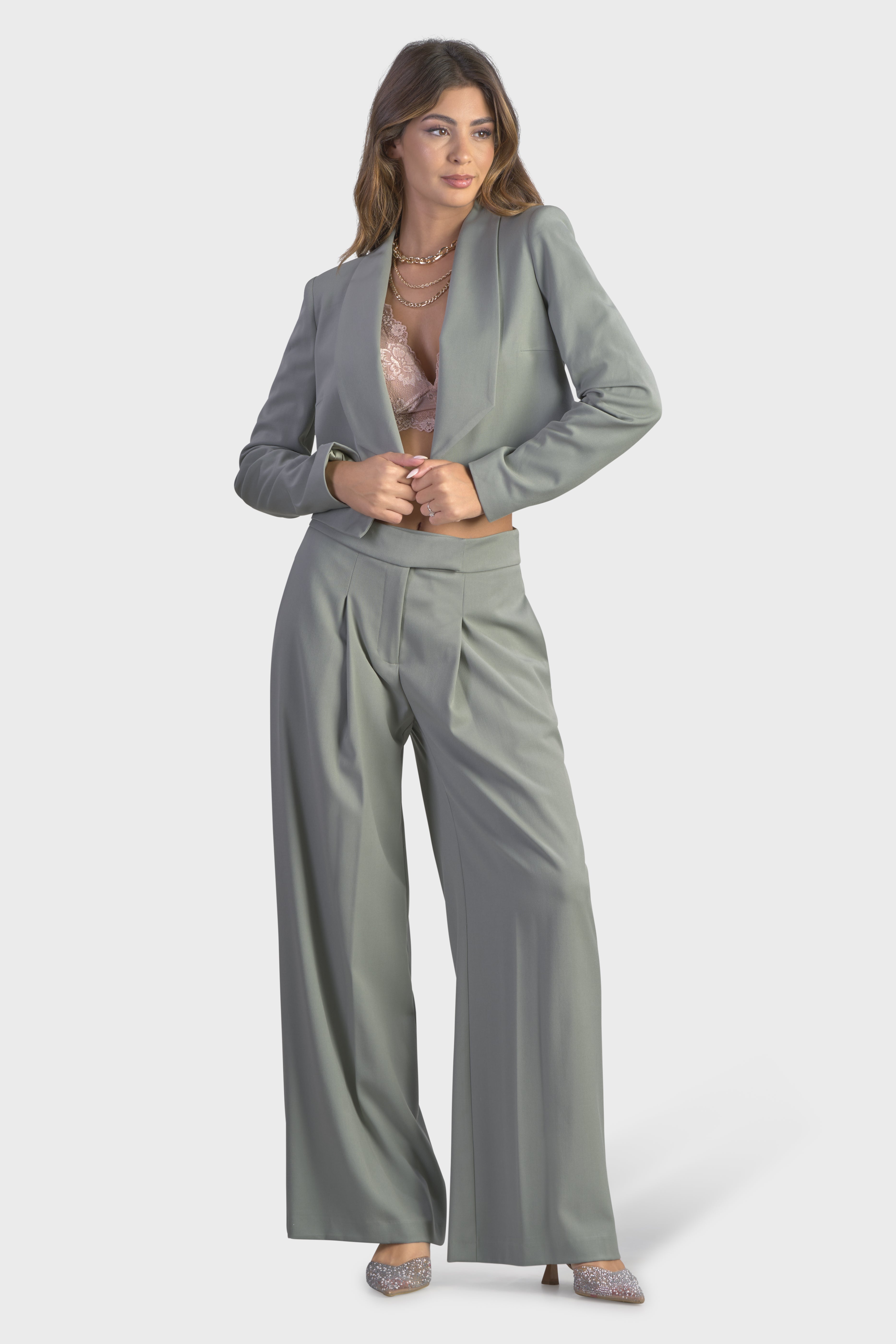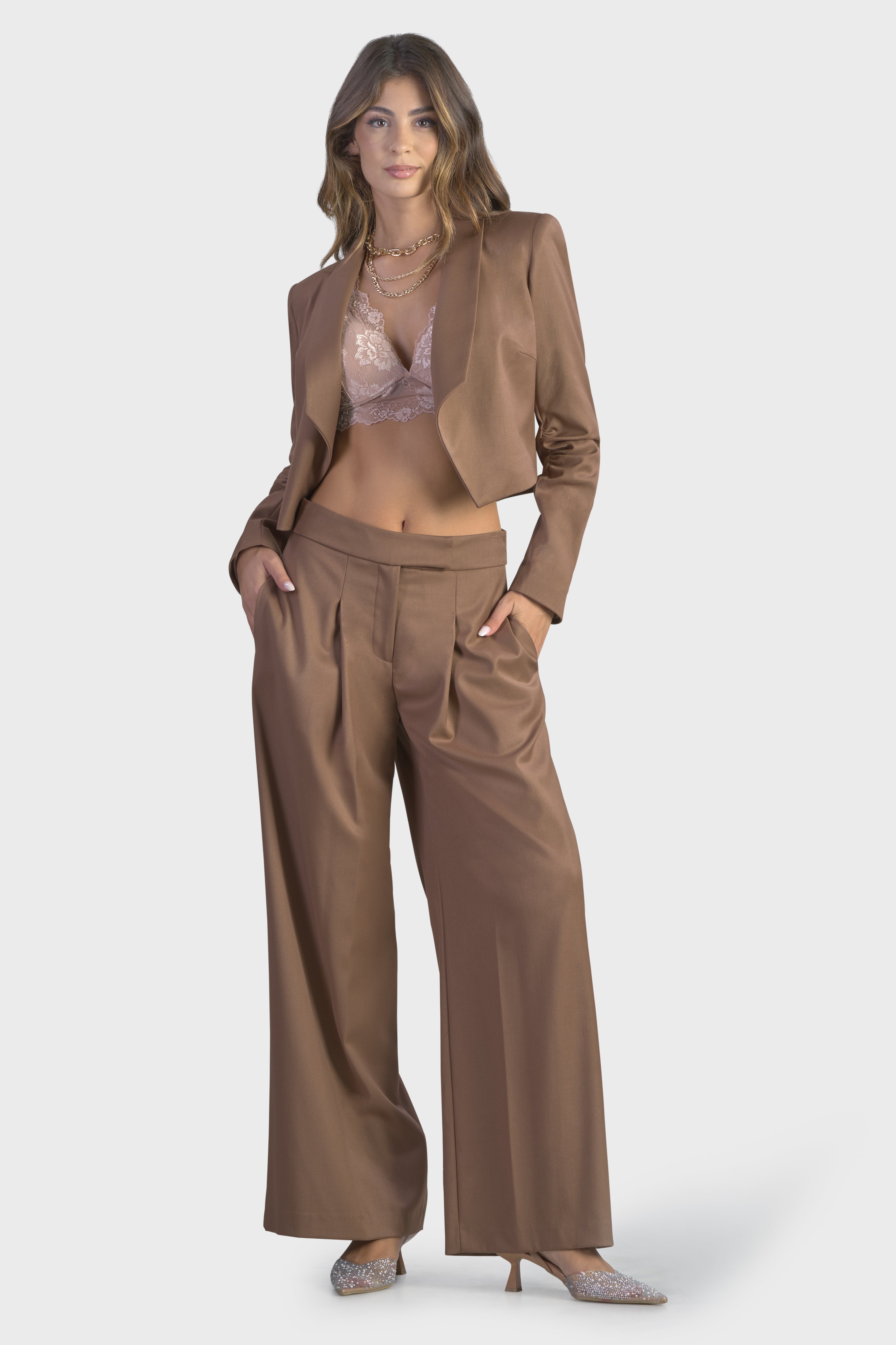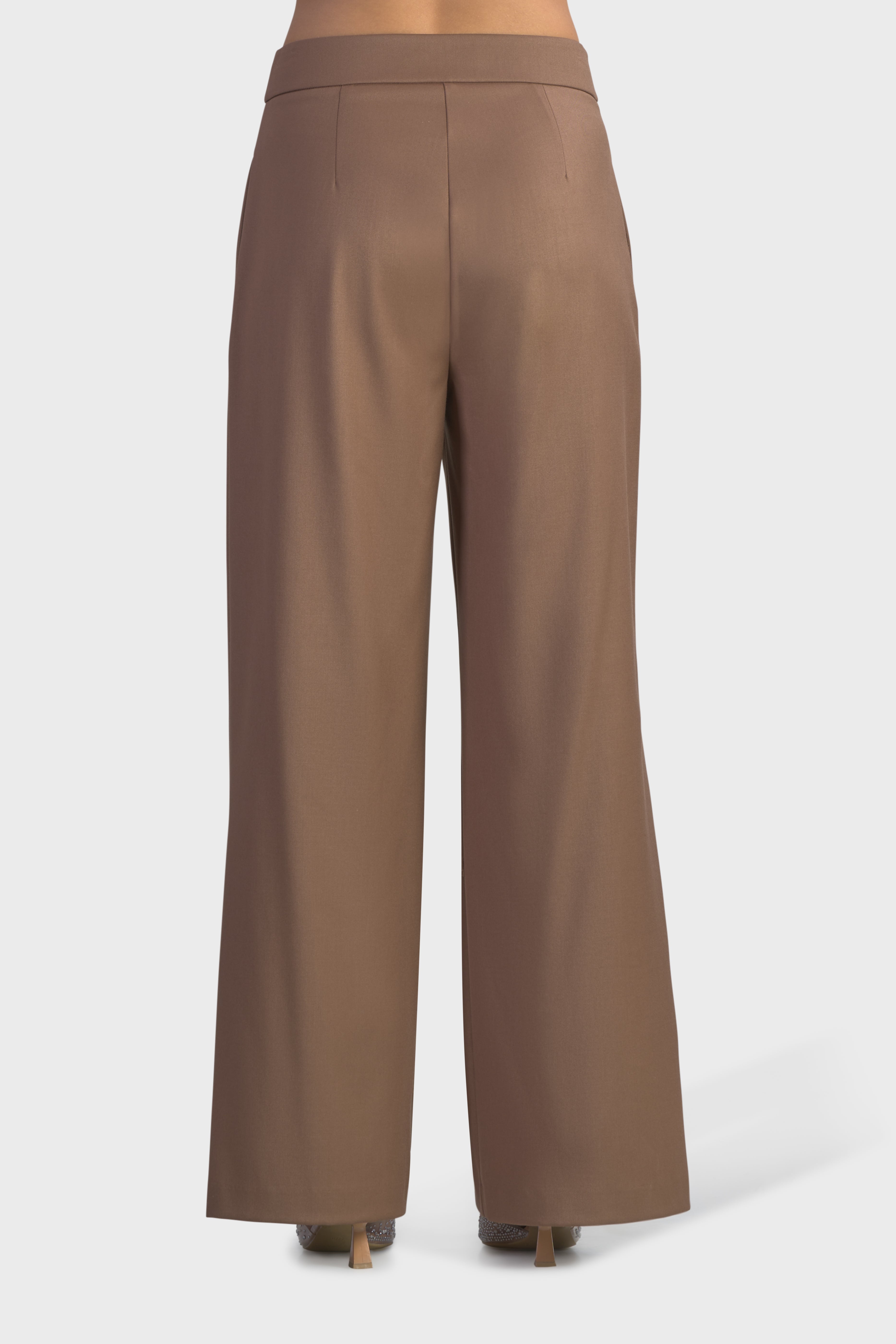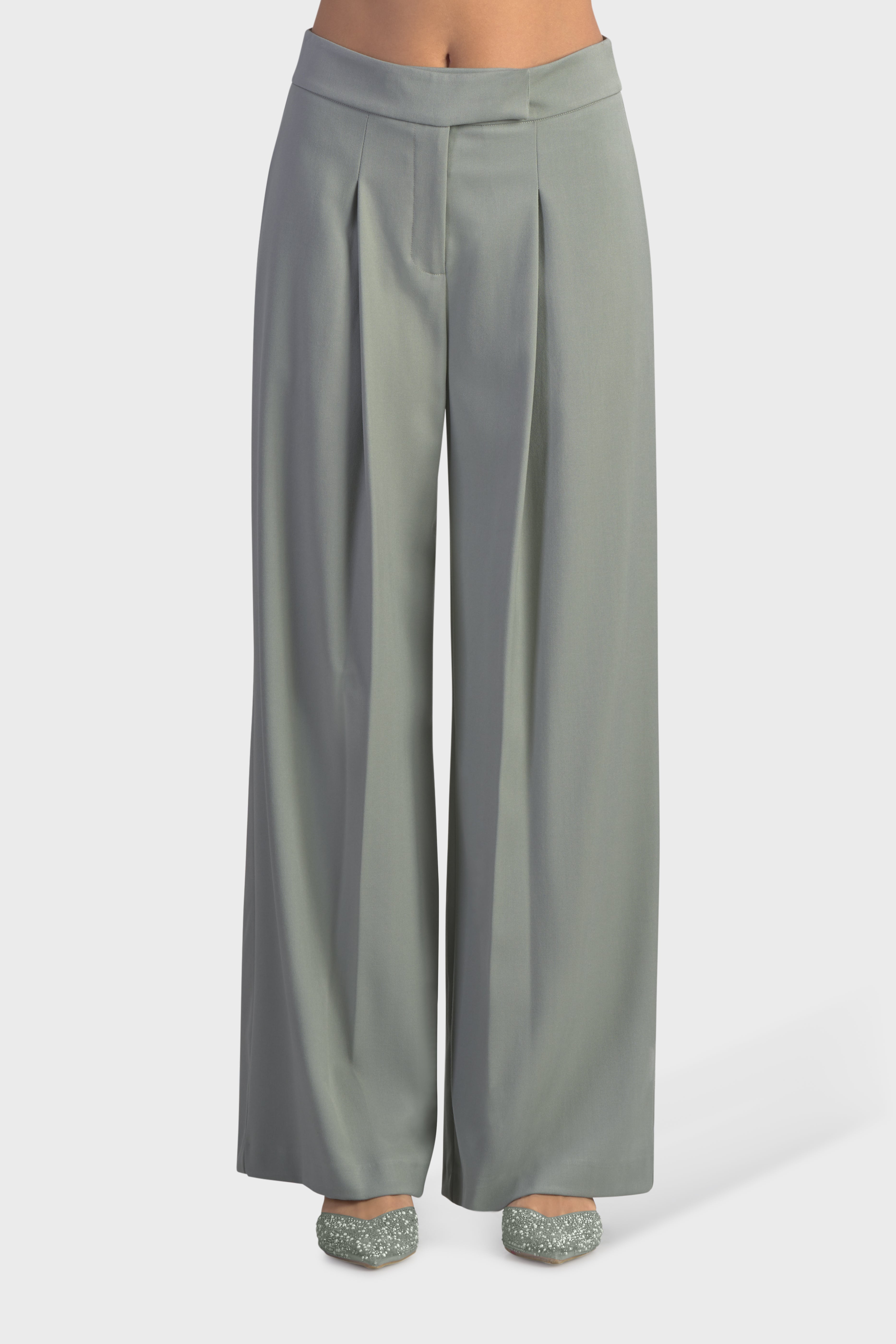 Questi pantaloni lunghi dalla linea a palazzo incarnano l'eleganza senza tempo. Realizzati in una morbidissima flanella, tessuto caldo e resistente. Il modello vita alta è caratterizzato dalle pences profonde sul davanti che ne conferiscono un look moderno, mentre le tasche a filo nel fianco aggiungono un tocco di classe funzionale. A completare il capo è l’abbottonatura da uomo, che si prolunga sul fianco sinistro indossato, con gancio, cerniera e finta nascosta. Ideali per ricreare look chic e versatili, sono perfetti per ogni occasione, sia formale che casual. Da indossare insieme alla giacca Coco in coordinato della collezione.
