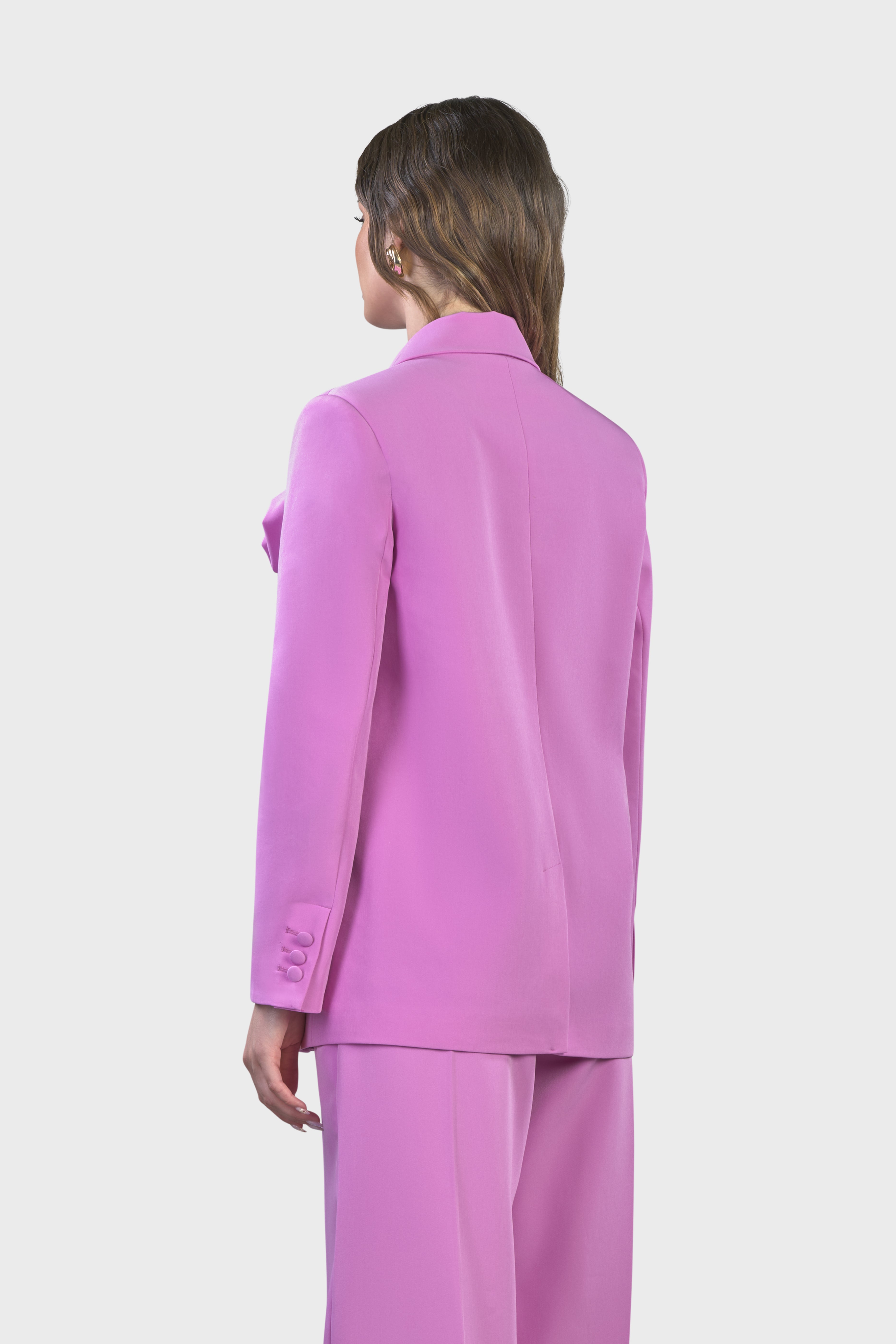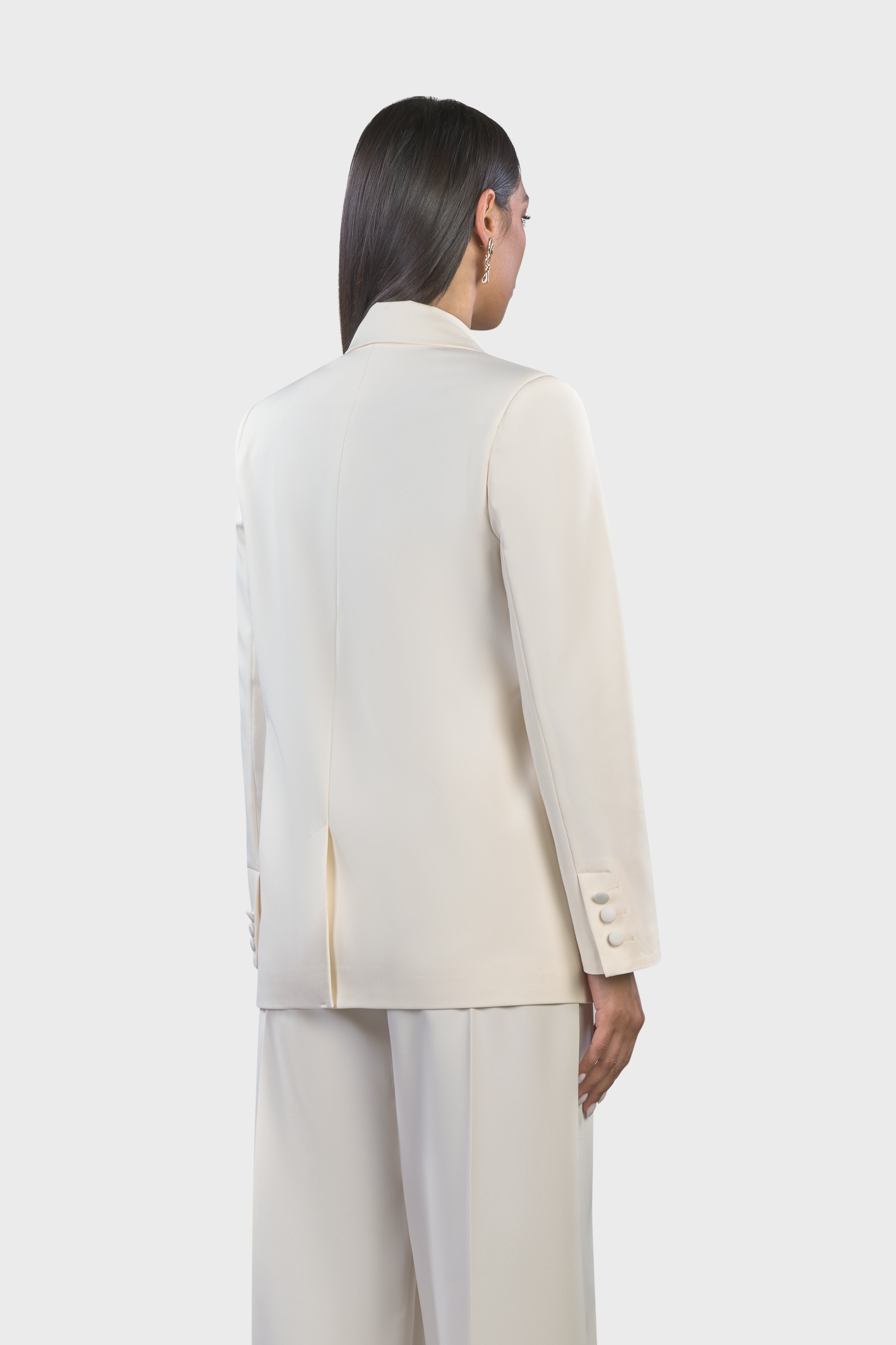 Ne enfatizza lo spirito sartoriale lo spacco sul retro e i bottoncini al fondo manica rivestiti nello stesso tessuto. Ideale da indossare per un occasione, da abbinare con i pantaloni in coordinato per un look senza tempo.