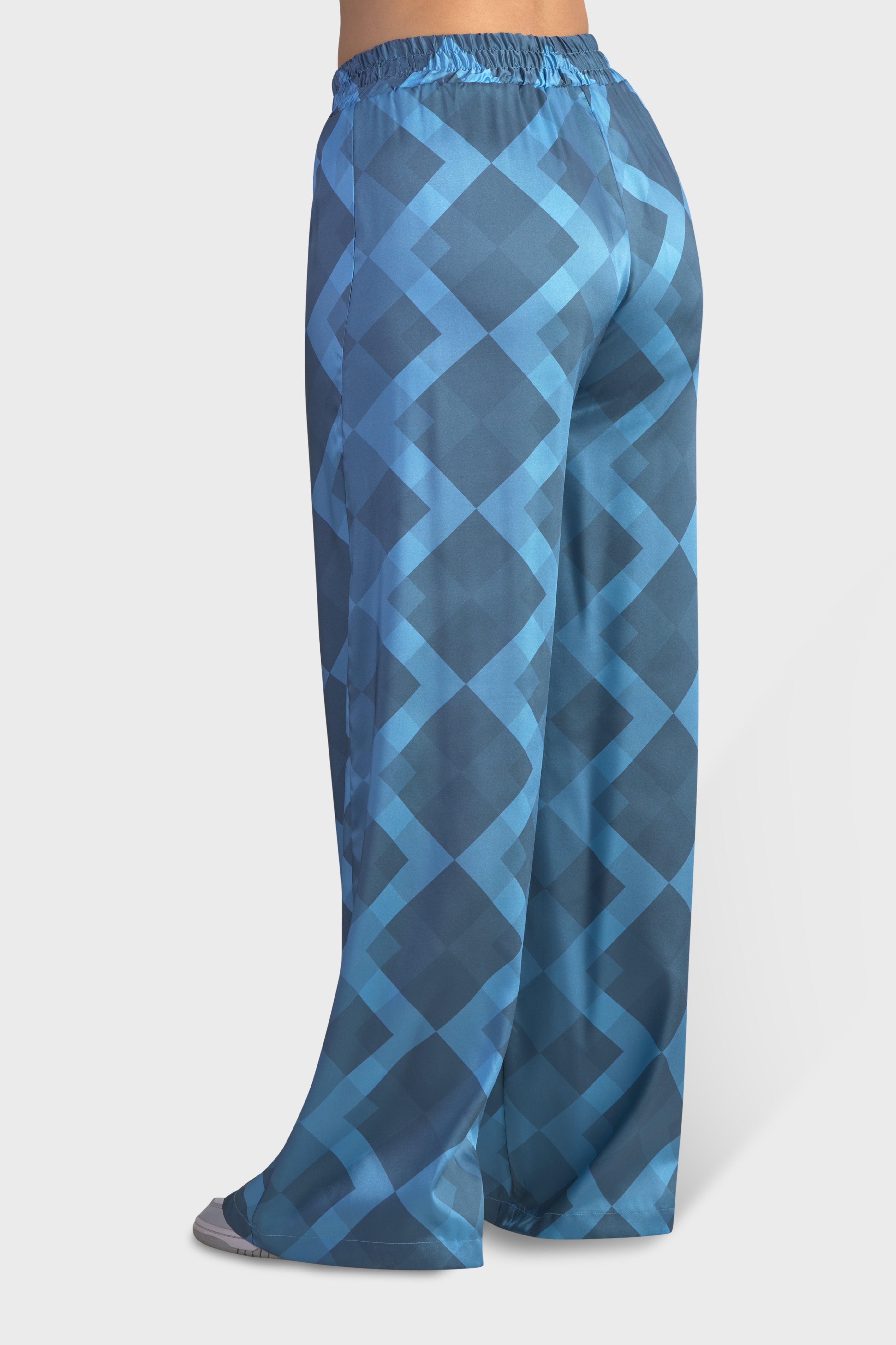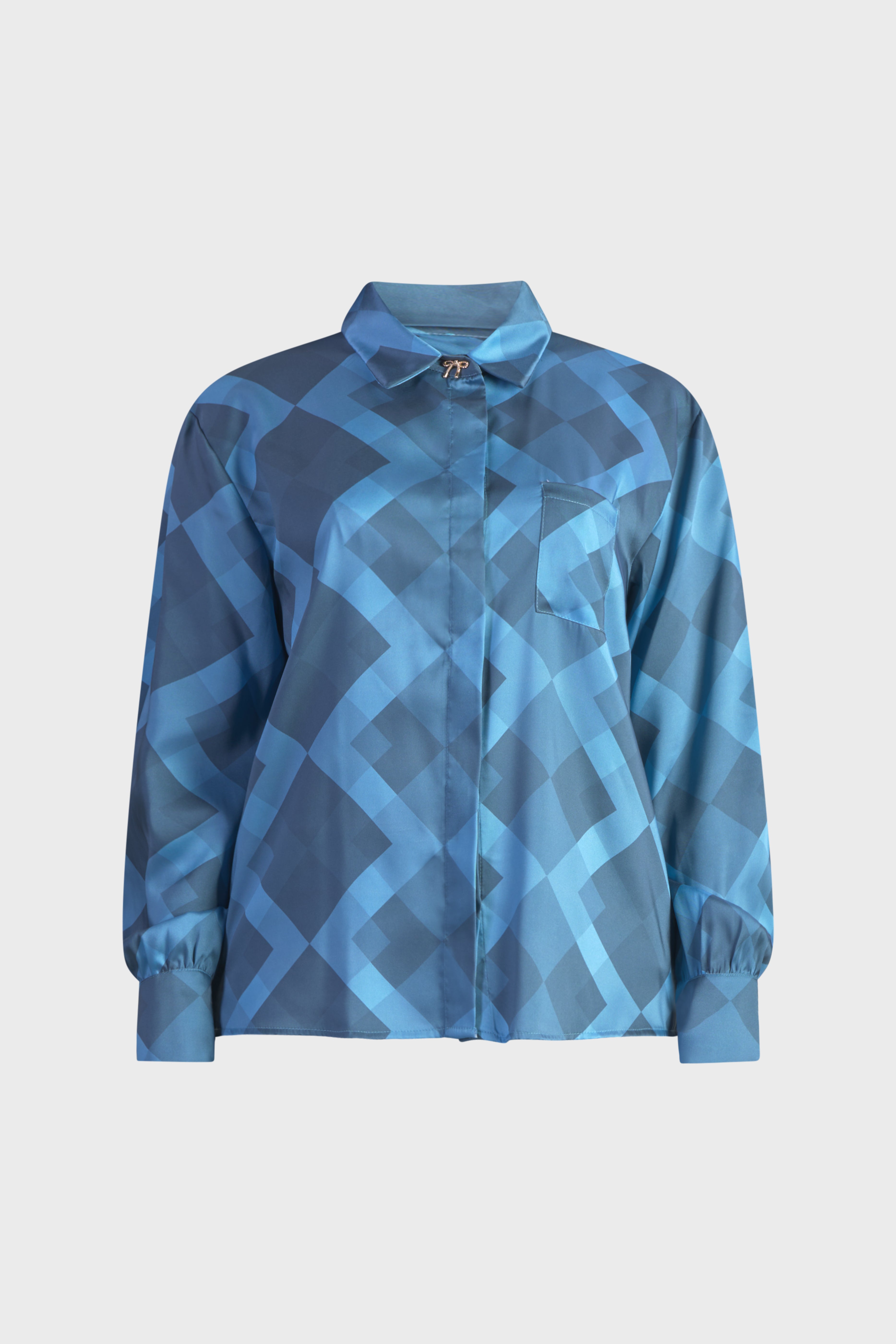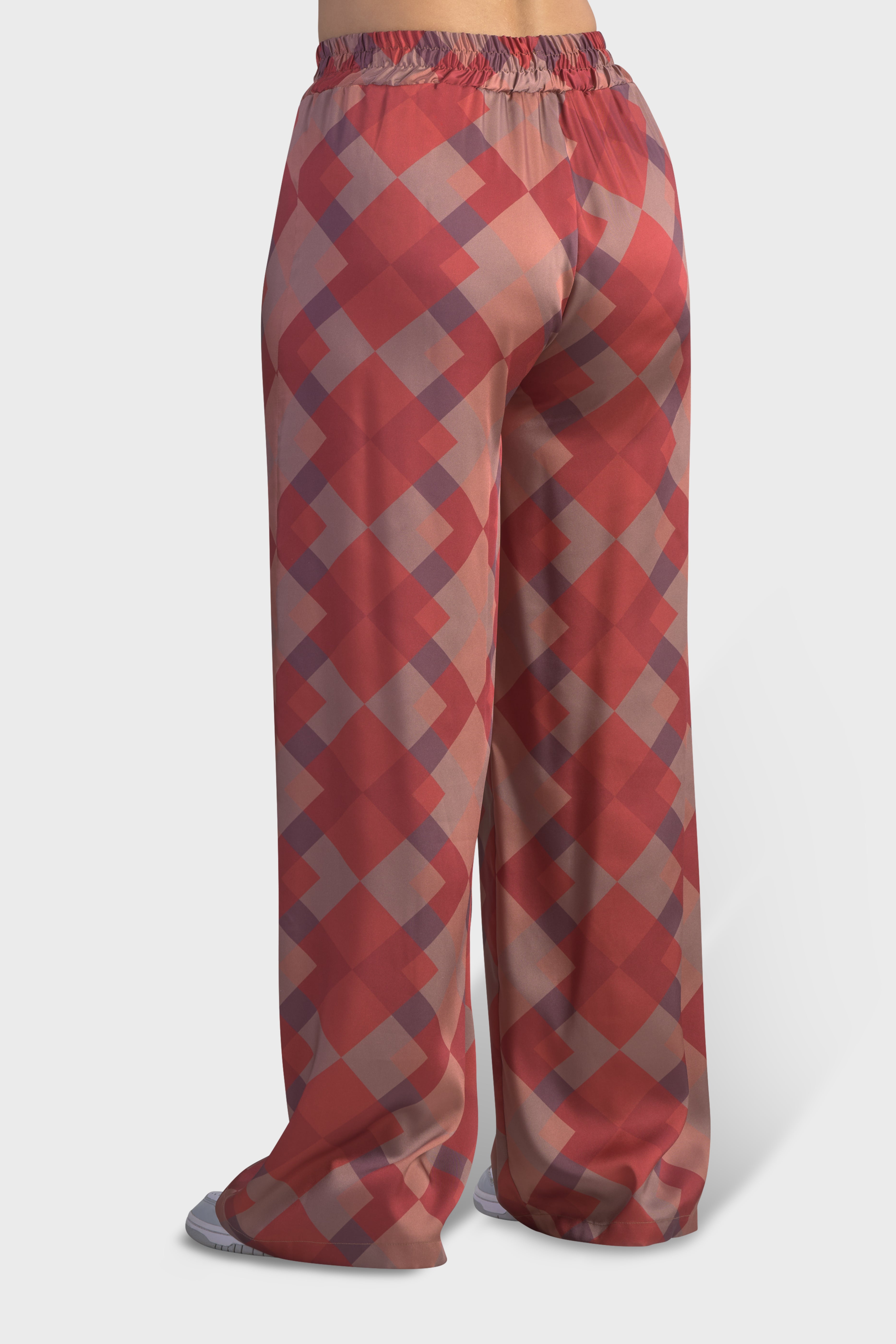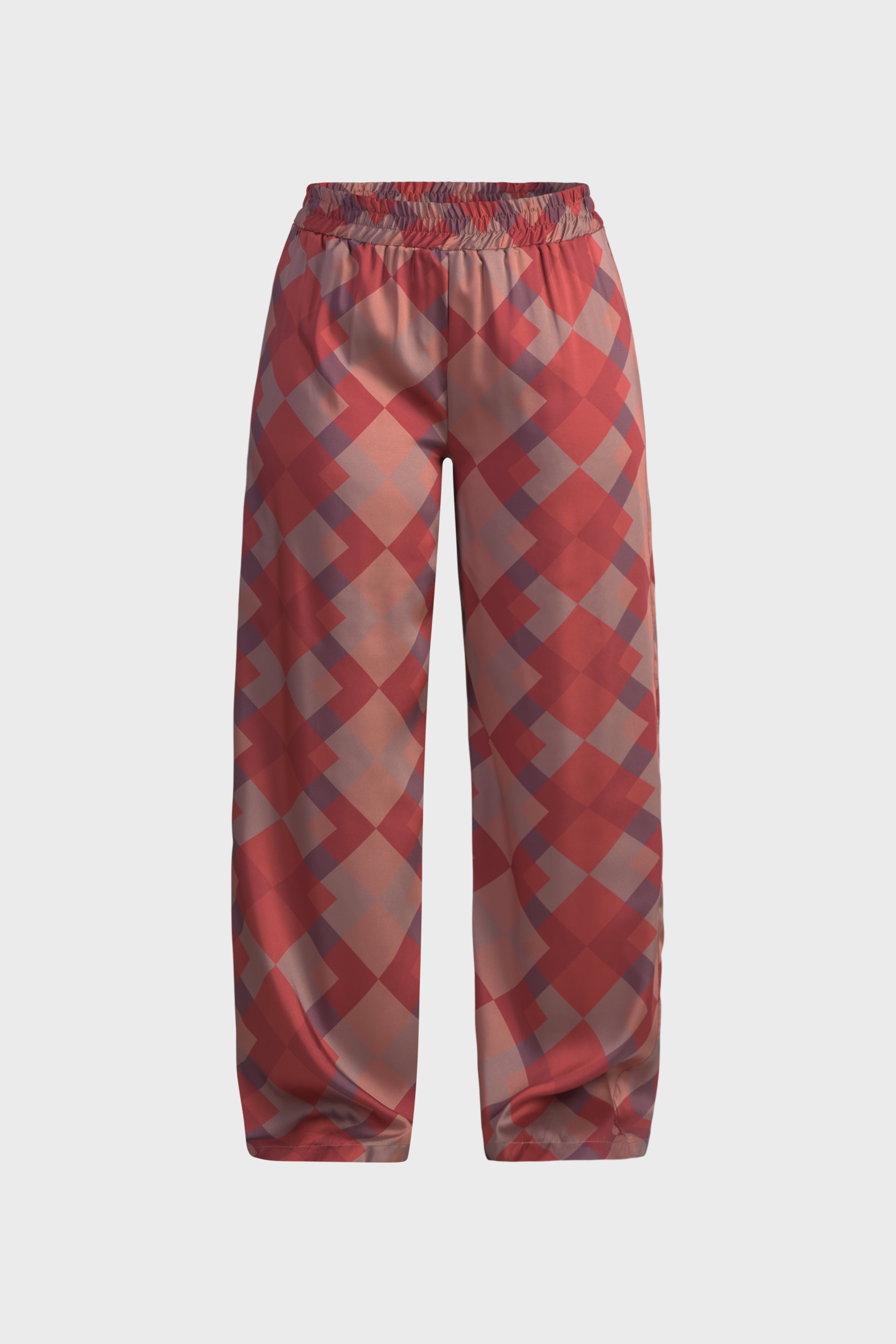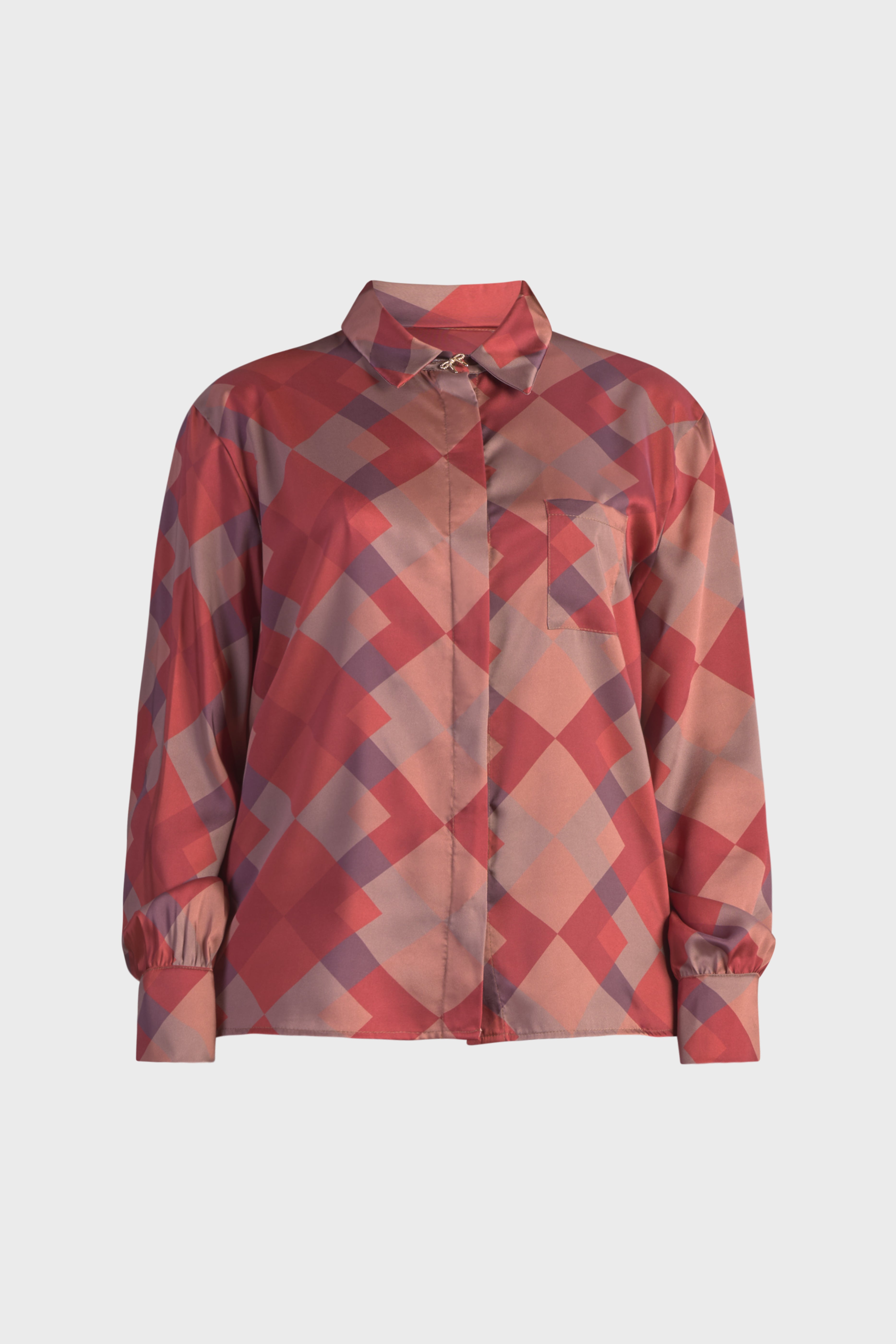 Le linee raffinate di questo coordinato, si distinguono per la loro delicatezza, conferendo una vestibilità lineare e confortevole. Realizzato in raso stampato, tessuto scivoloso e lucente, liscio al tatto. La stampa geometrica crea giochi di rombi in diverse forme e colori. La camicia dritta con abbottonatura all’inglese e colletto a punta trasmette stile ed eleganza. A completare il modello è il taschino sul davanti. Il pantalone è dettagliato dall’elastico in vita mentre la gamba scende dritta. Questo cord set è perfetto da indossare con facilità nel quotidiano o di sera insieme ad un paio di tacchi e una mini borsa a tracolla.