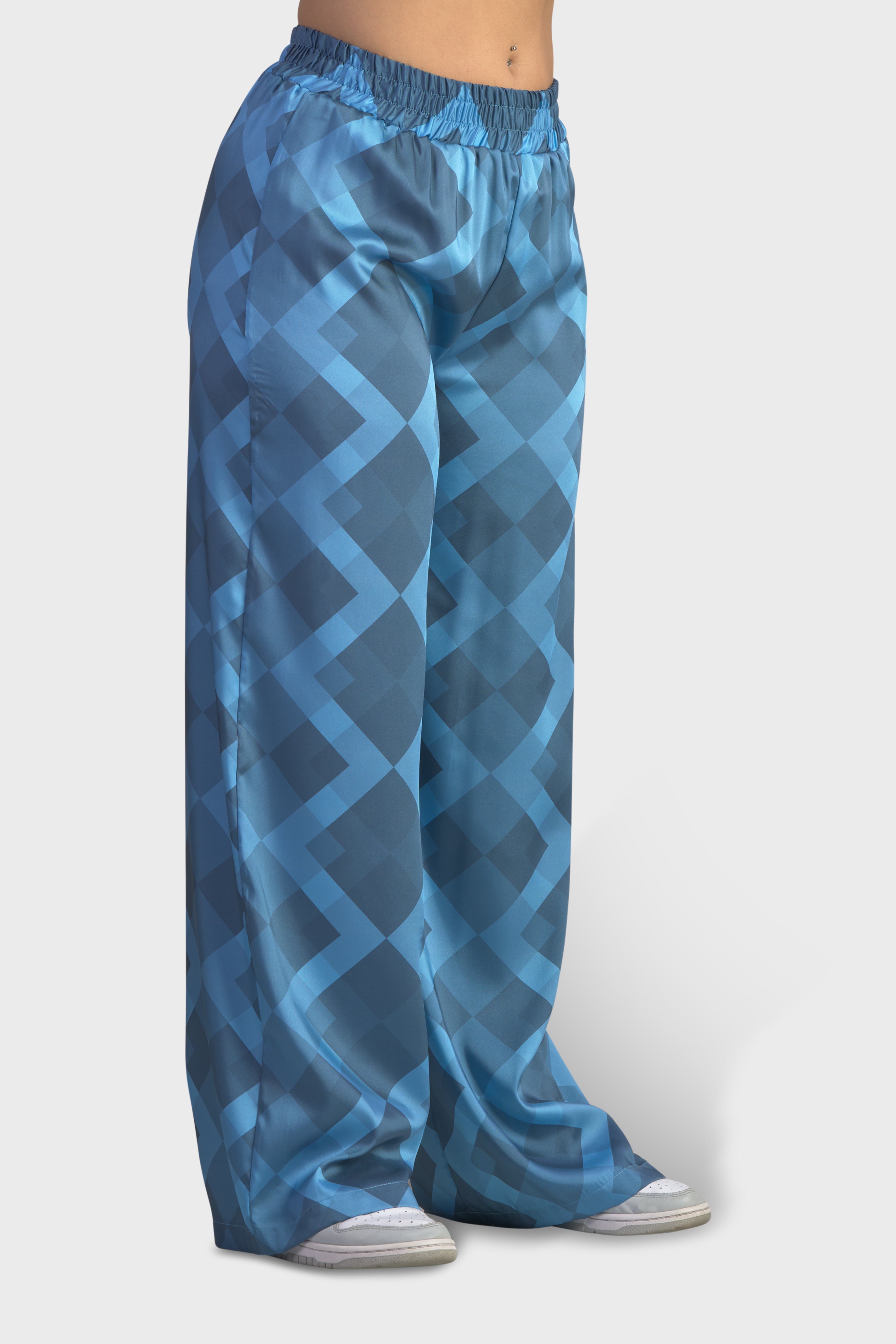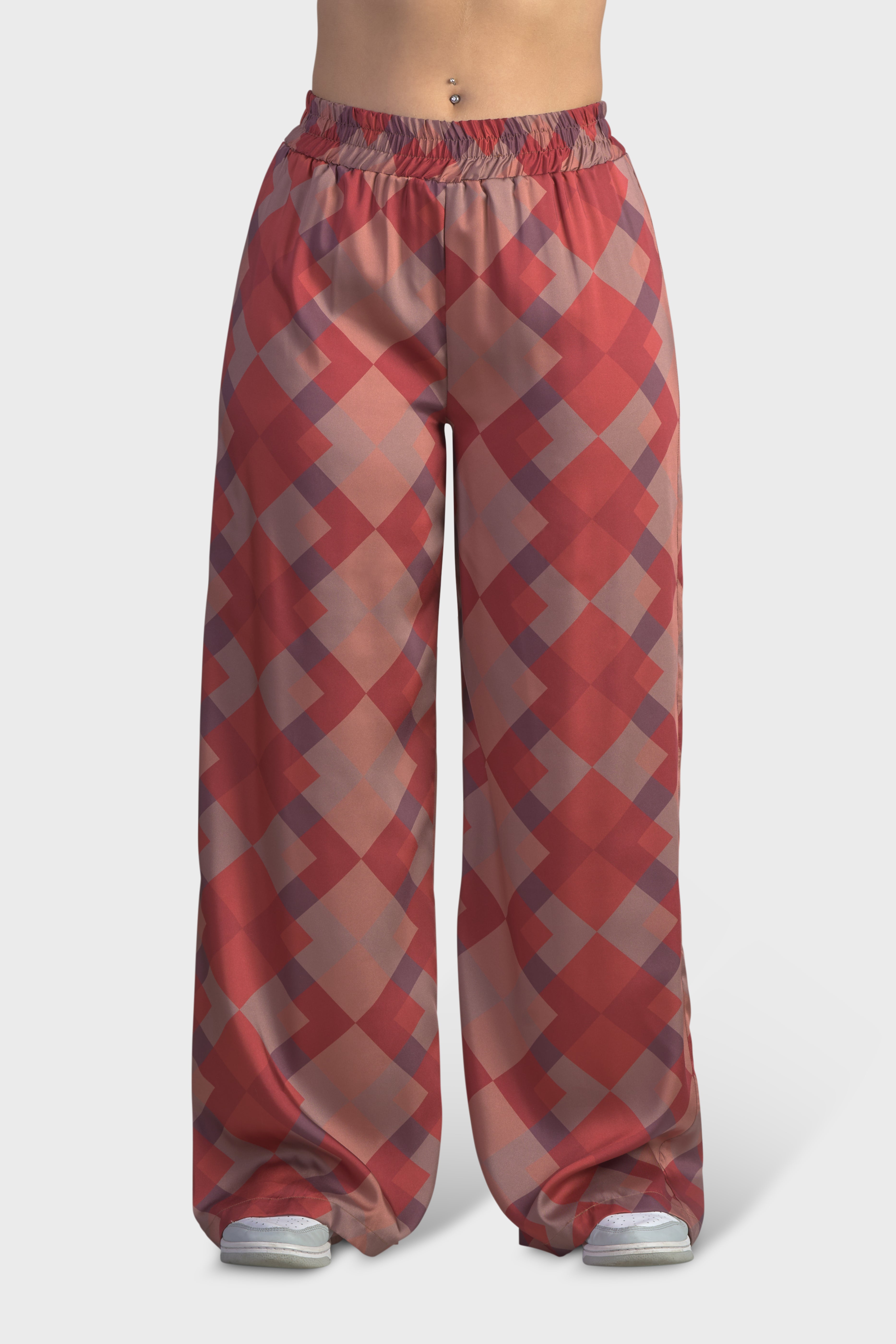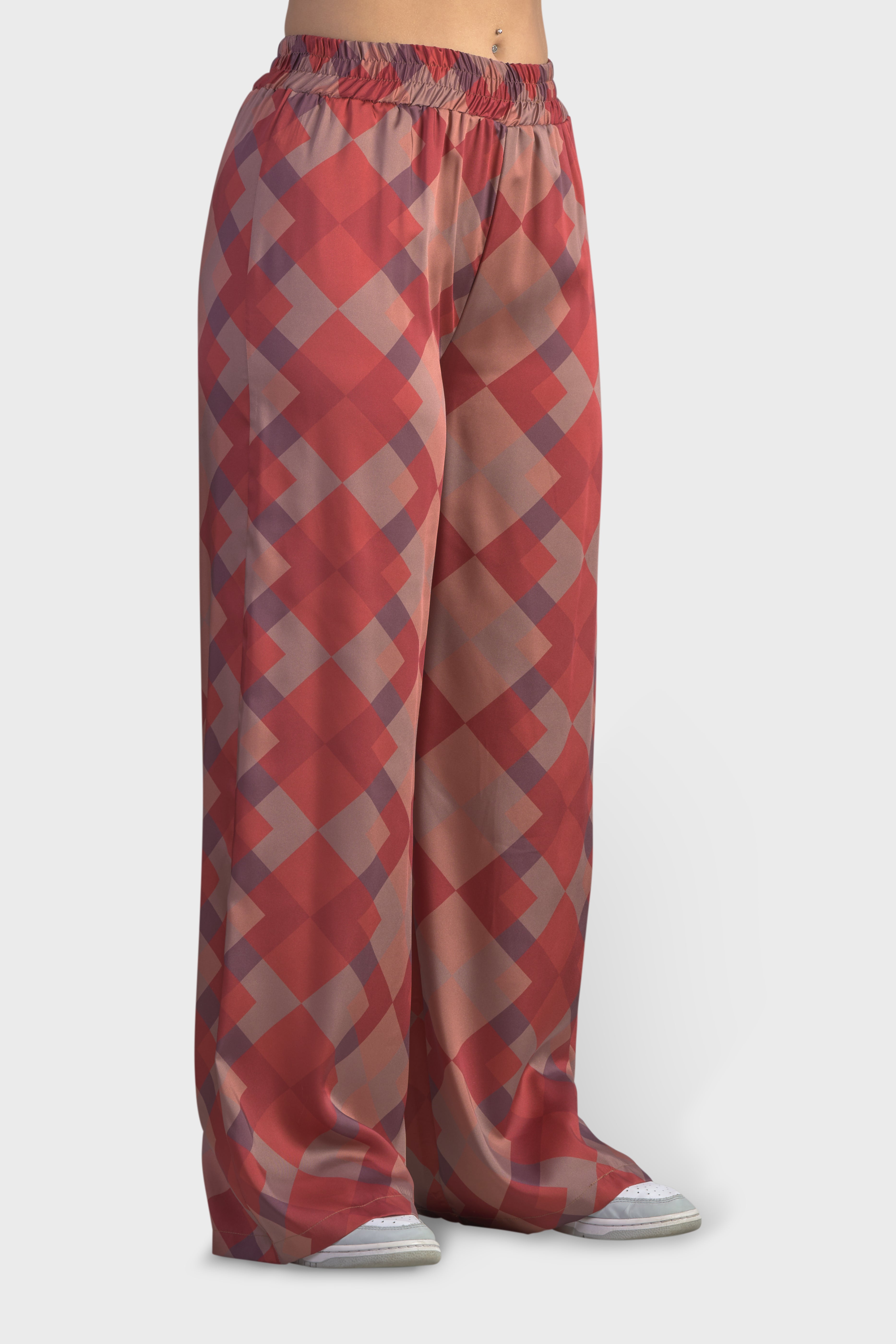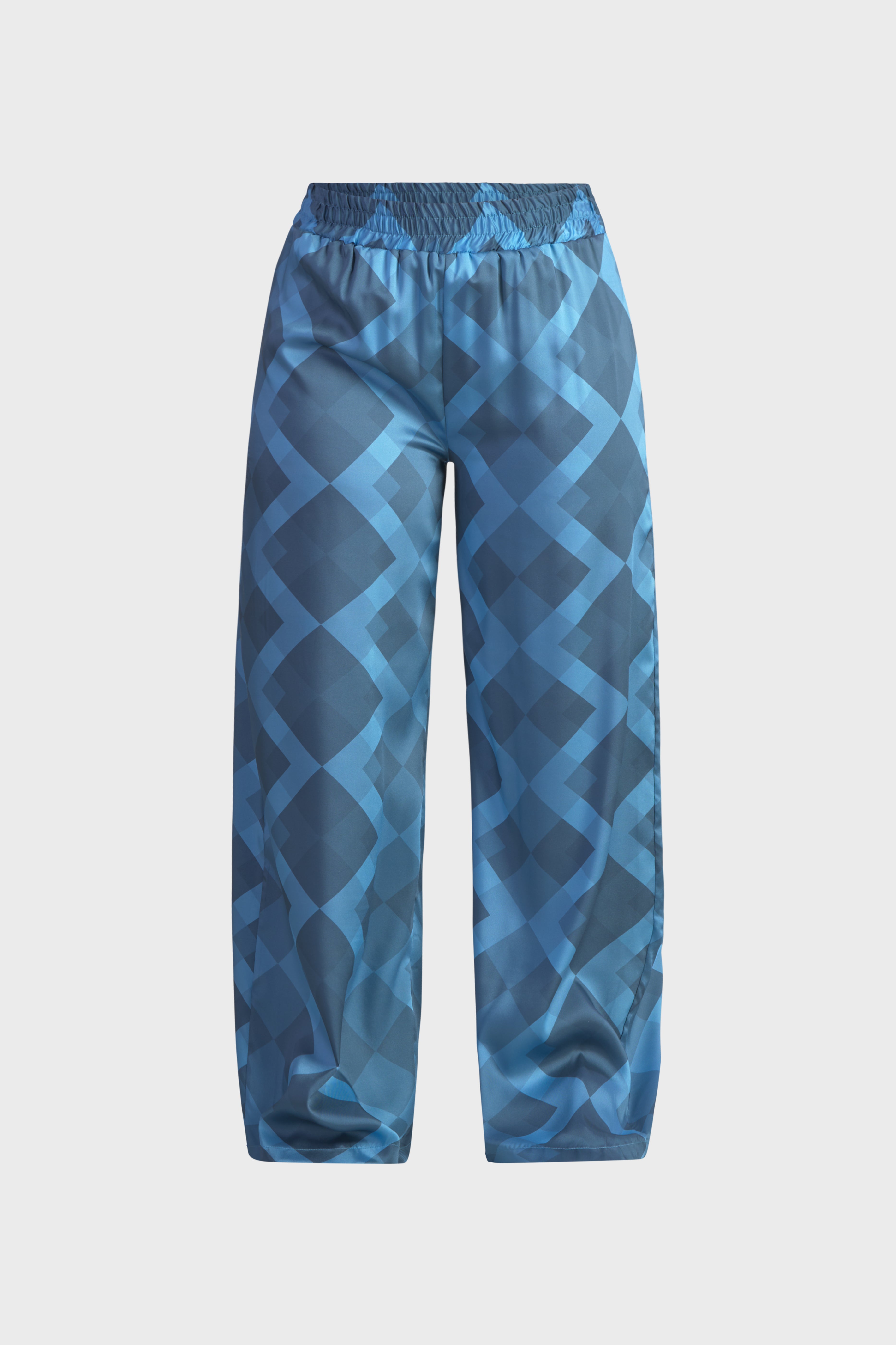 Le linee raffinate di questo coordinato, si distinguono per la loro delicatezza, conferendo una vestibilità lineare e confortevole. Realizzato in raso stampato, tessuto scivoloso e lucente, liscio al tatto. La stampa geometrica crea giochi di rombi in diverse forme e colori. La camicia dritta con abbottonatura all’inglese e colletto a punta trasmette stile ed eleganza. A completare il modello è il taschino sul davanti. Il pantalone è dettagliato dall’elastico in vita mentre la gamba scende dritta. Questo cord set è perfetto da indossare con facilità nel quotidiano o di sera insieme ad un paio di tacchi e una mini borsa a tracolla.