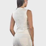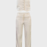 Realizzato in un fresco cotone gessato in stripes lurex, tessuto morbido e liscio al tatto.