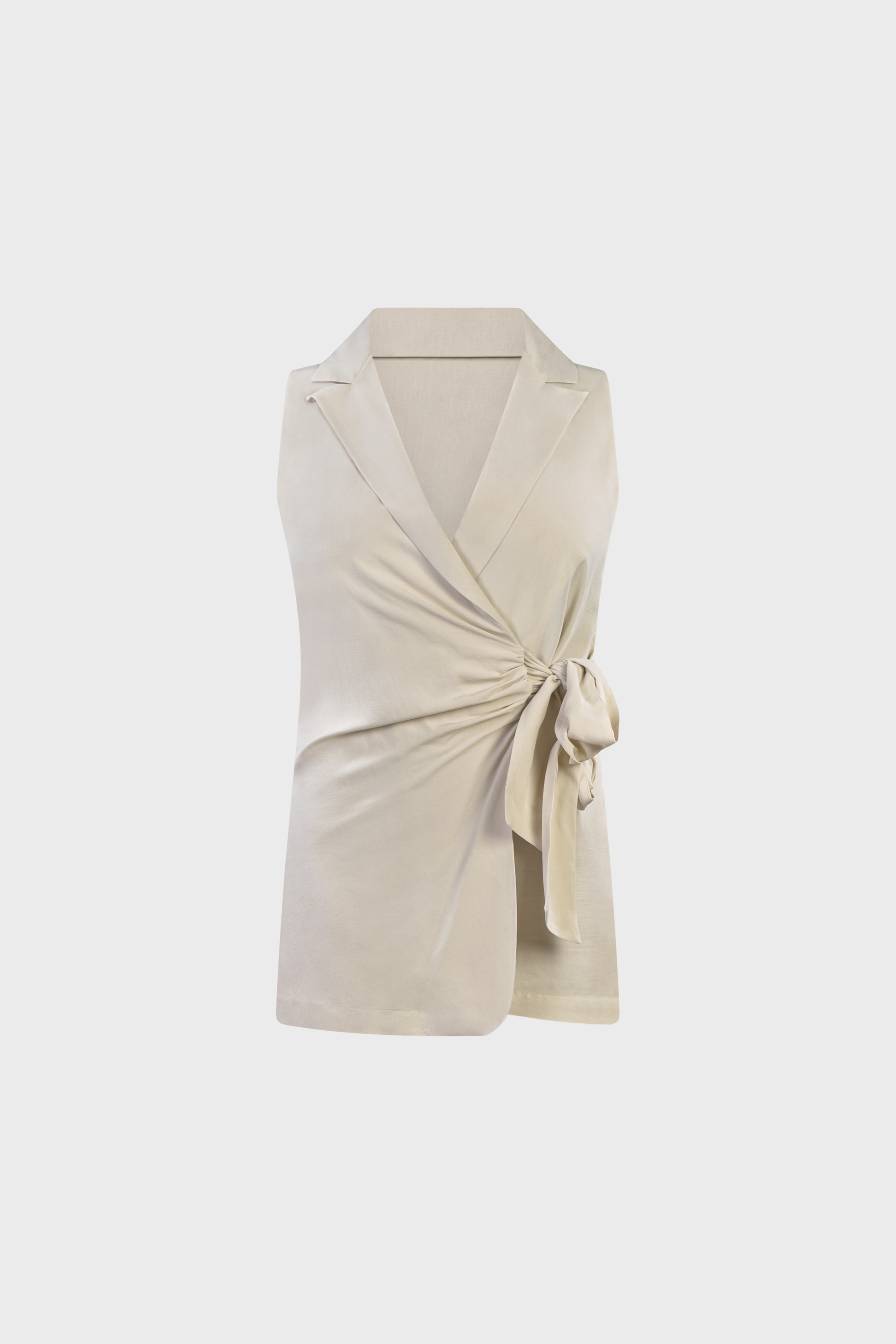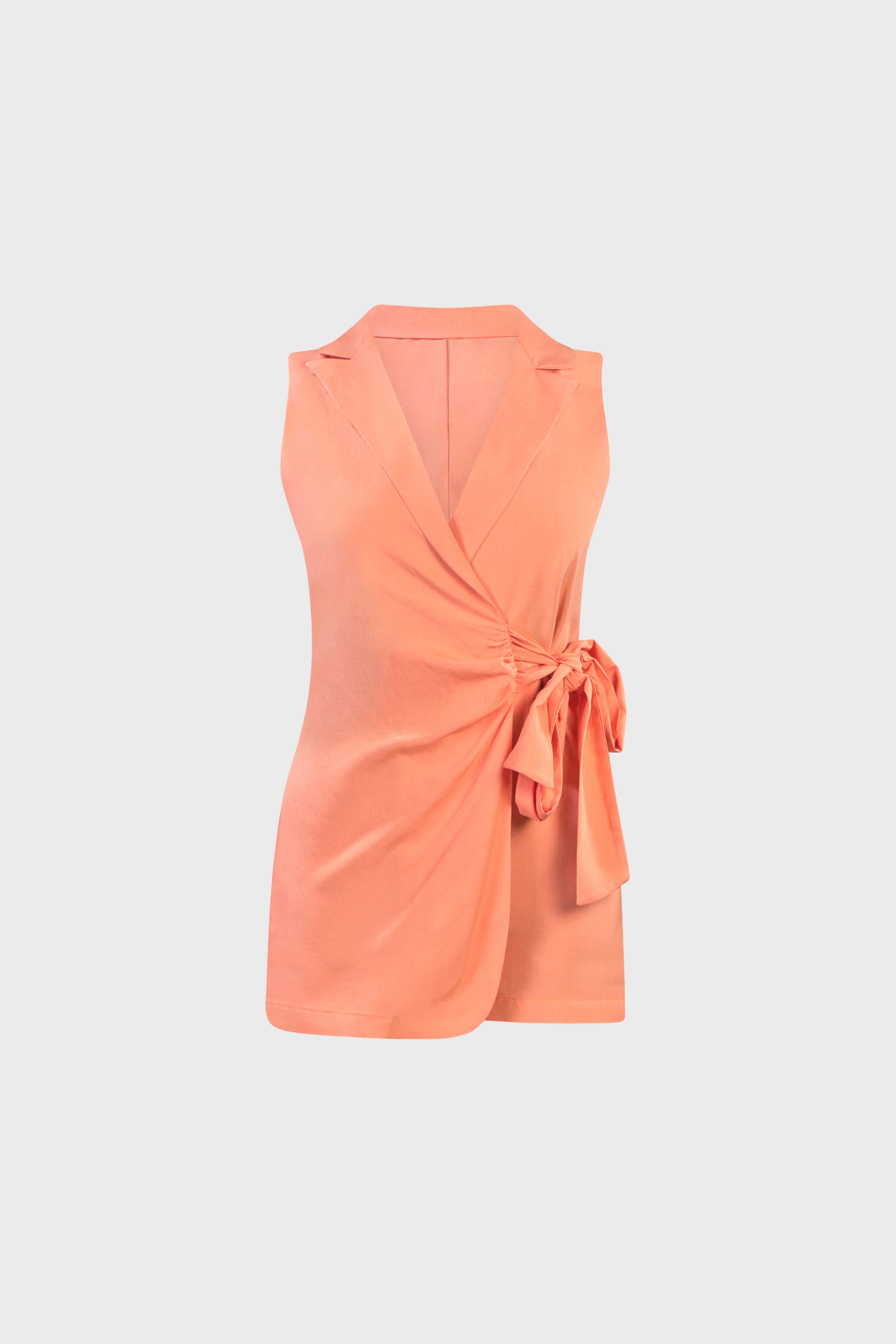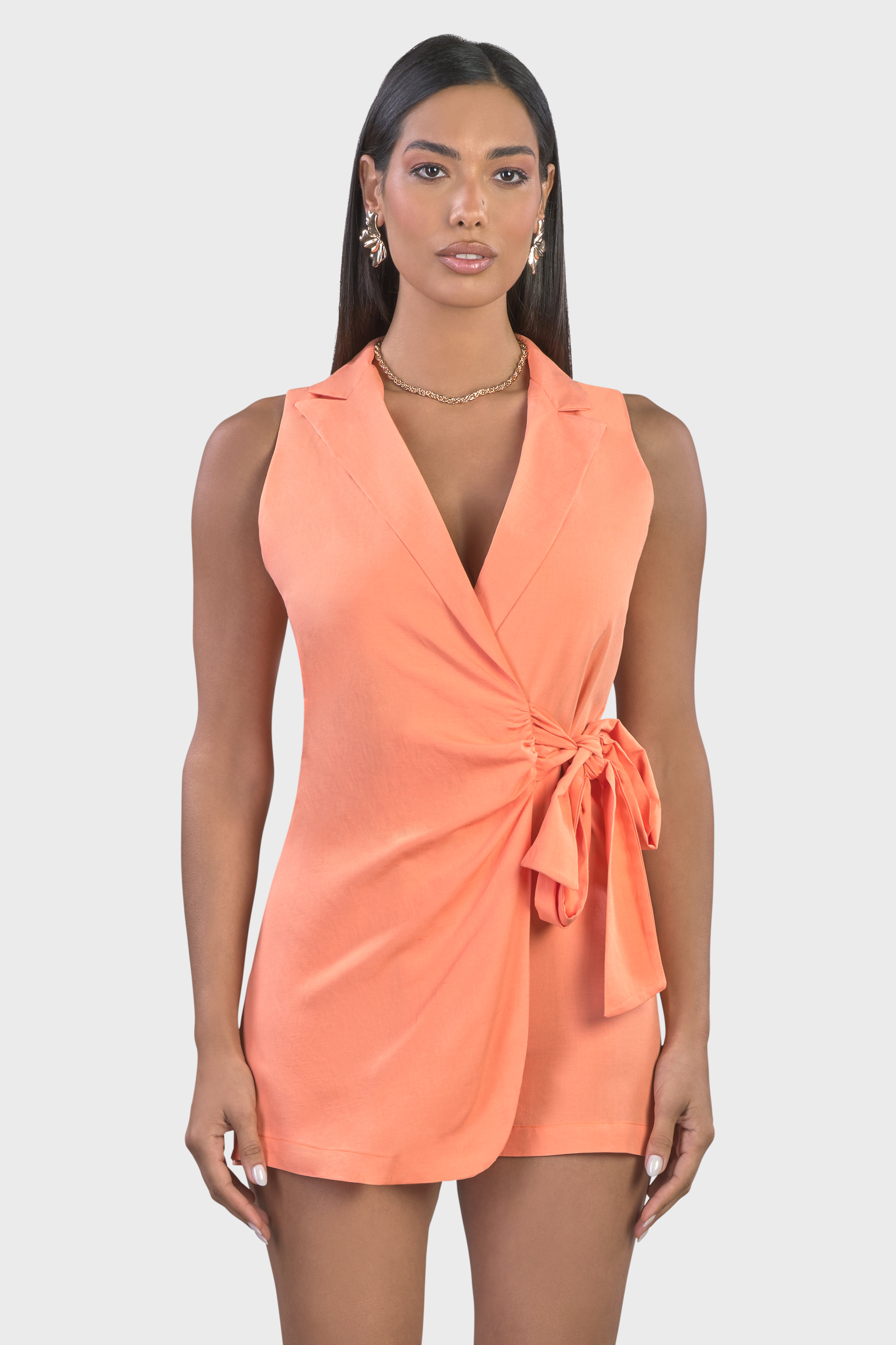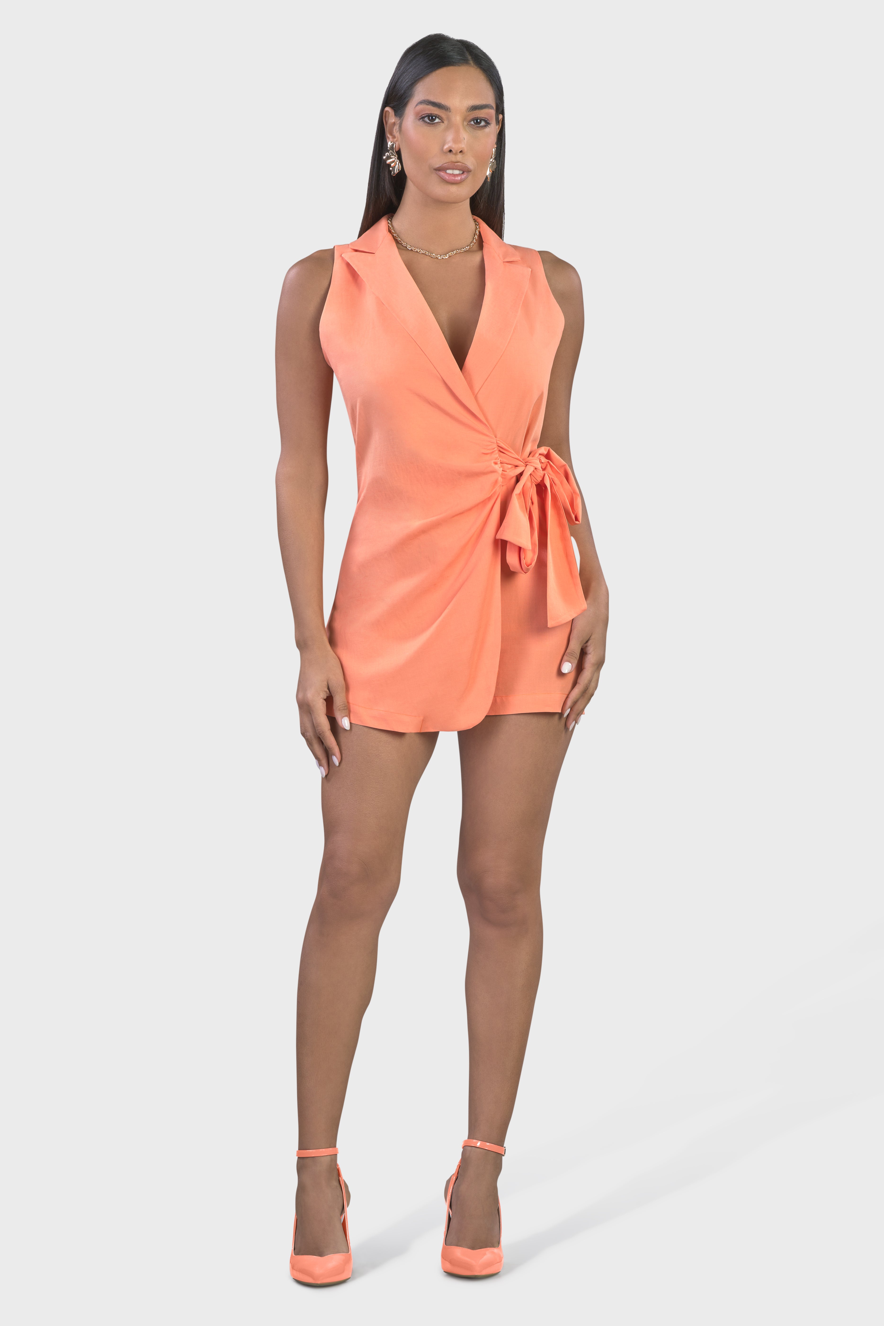 Le linee di questa tuta corta ci rimandano all’eleganza di un blazer, ma allo stesso tempo, in grado di conferire praticità, grazie allo shorts sottostante. Realizzato in un morbido misto lino, tessuto che dona freschezza. Il modello è caratterizzato dal revers e dall’abbottonatura annodata sul davanti. Il capo è completato dalla cerniera nascosta laterale, per una maggiore rifinitura. La tuta intera si distingue per la sua versatilità, adattandosi a diverse situazioni grazie alla sua natura “one-piece”. È particolarmente pratica per chi ha poco tempo o preferisce un look senza sforzo, in quanto elimina la necessità di coordinare diversi pezzi d’abbigliamento.