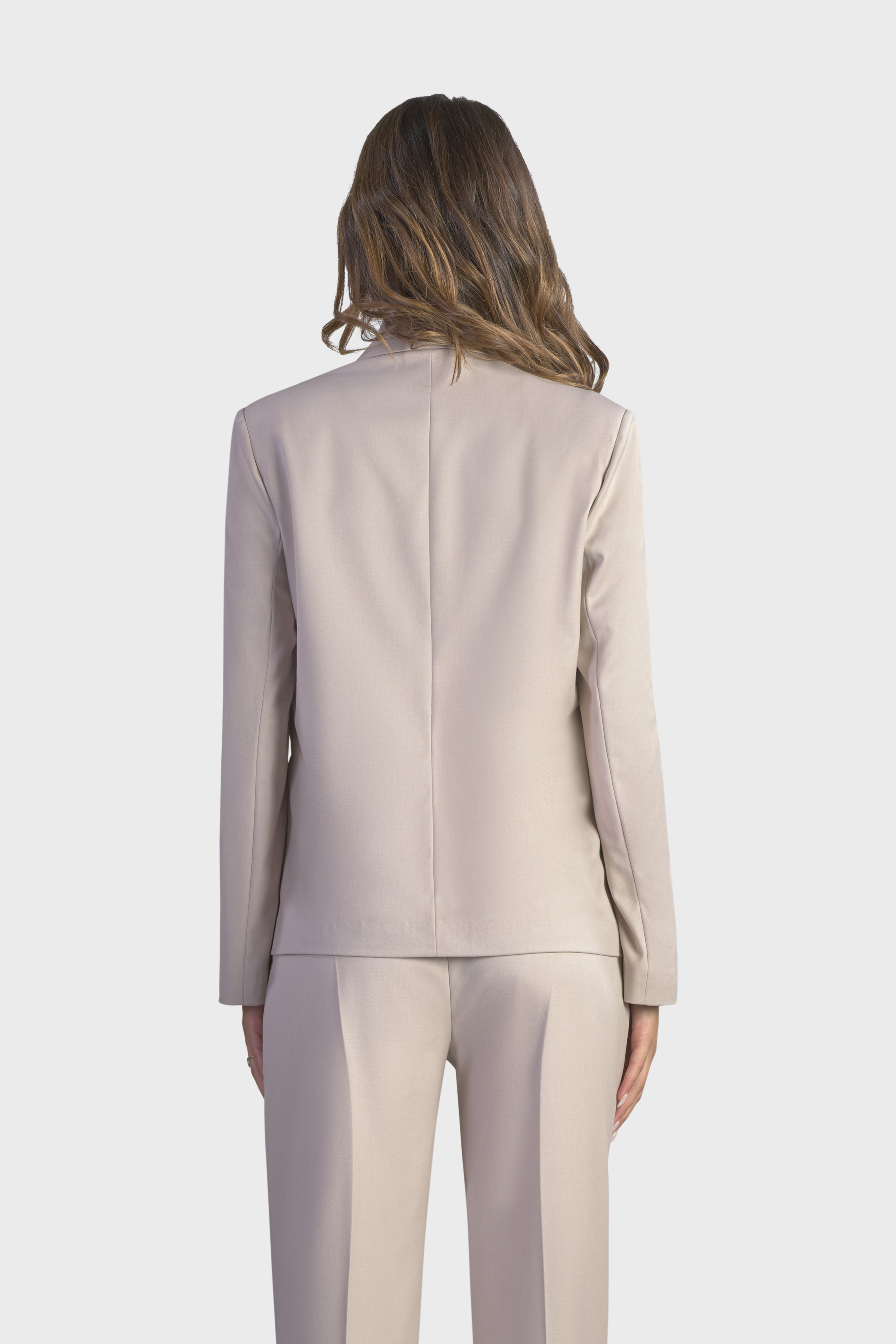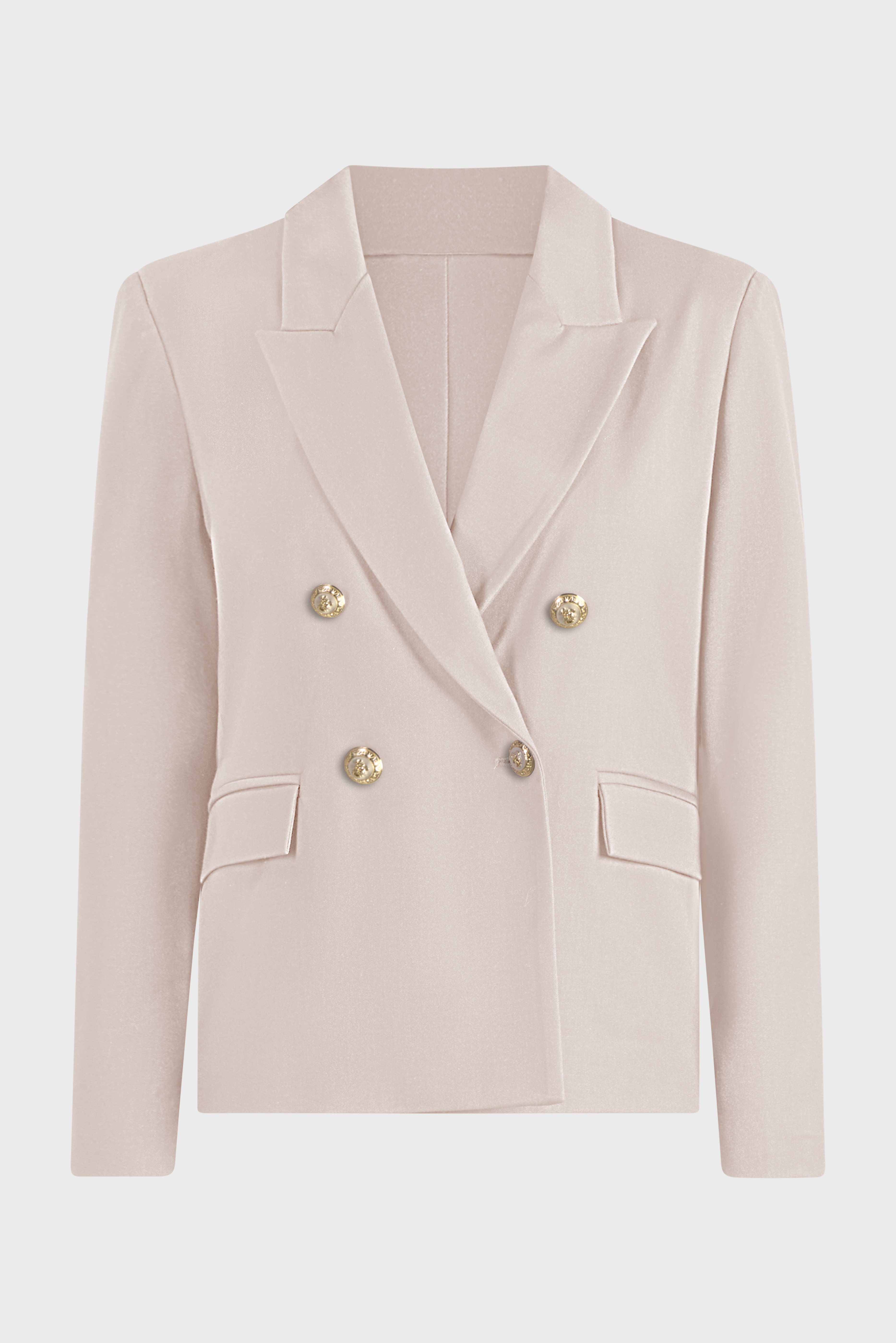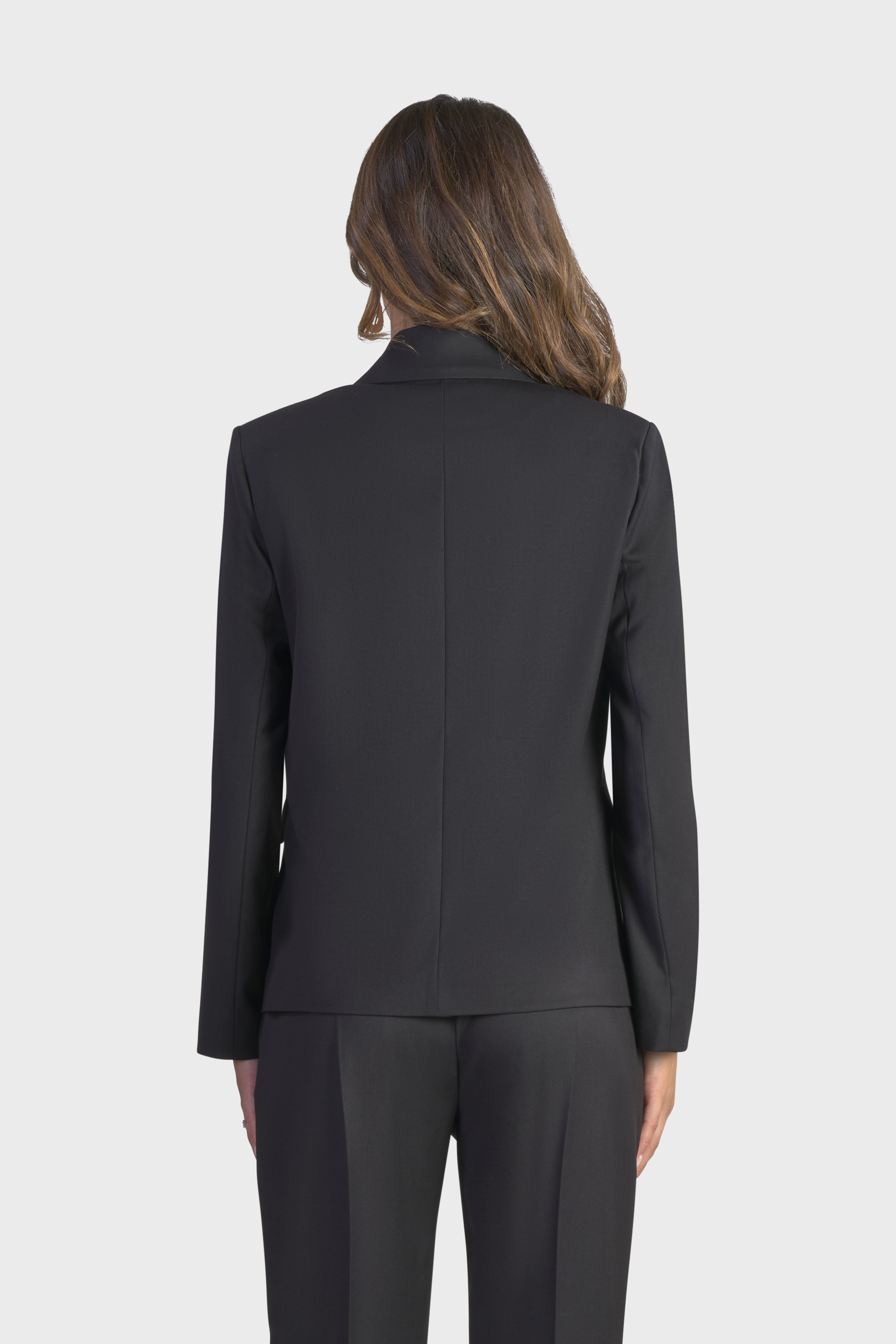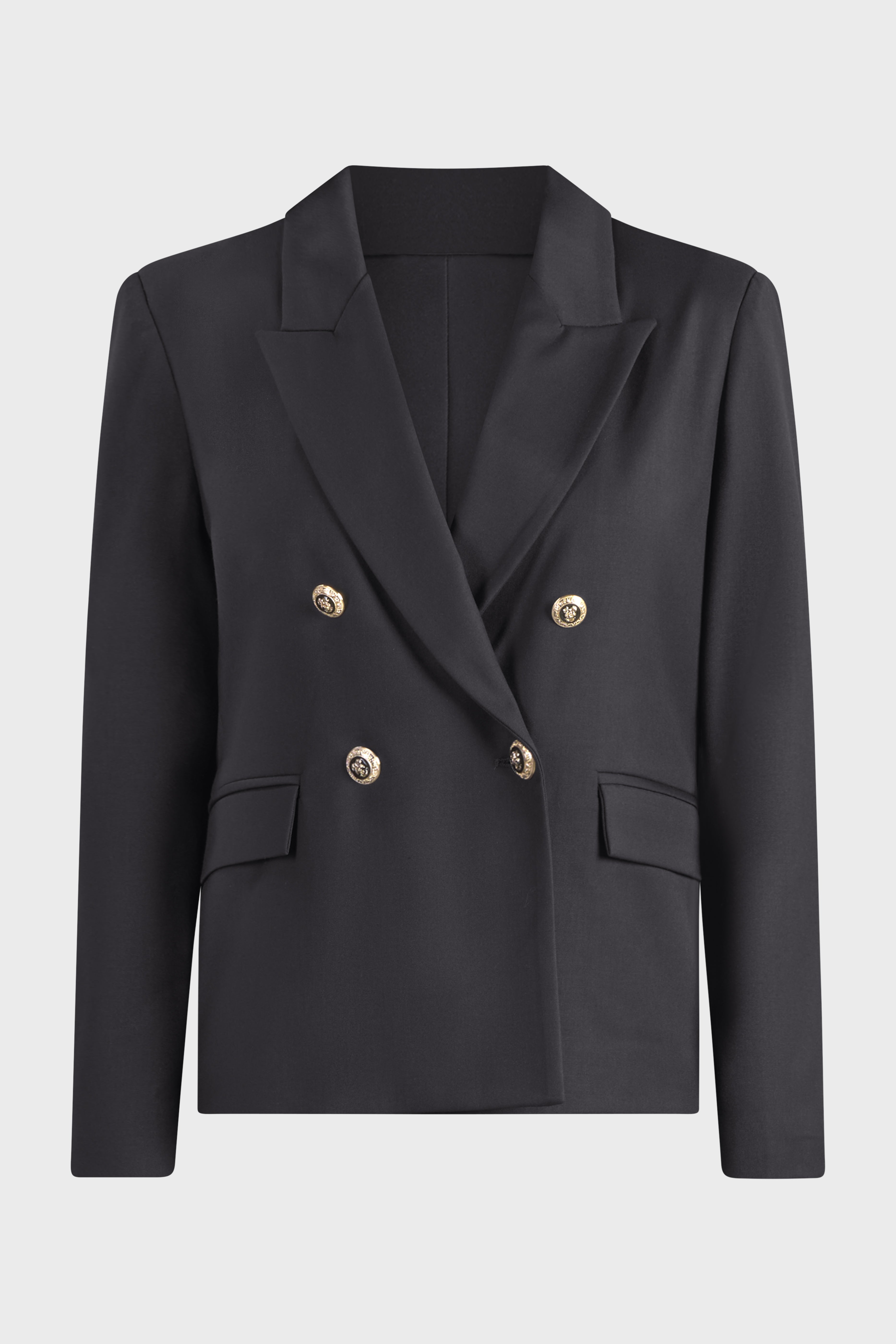 Questa giacca a doppiopetto con collo a rovere è l’incarnazione della classe e della sofisticatezza. Realizzato in mano lana, tessuto dalla mano morbida e caldo al tatto. Il modello è caratterizzato dall’abbottonatura impreziosita dai bottoni dal bordo dorato,mentre le maniche lunghe,aggiungono un dettaglio sartoriale distintivo. La vestibilità regolare e la lunghezza sotto al bacino la rendono perfetta per un look elegante e professionale. Ideale da abbinare al pantalone Kelly in coordinato della collezione.