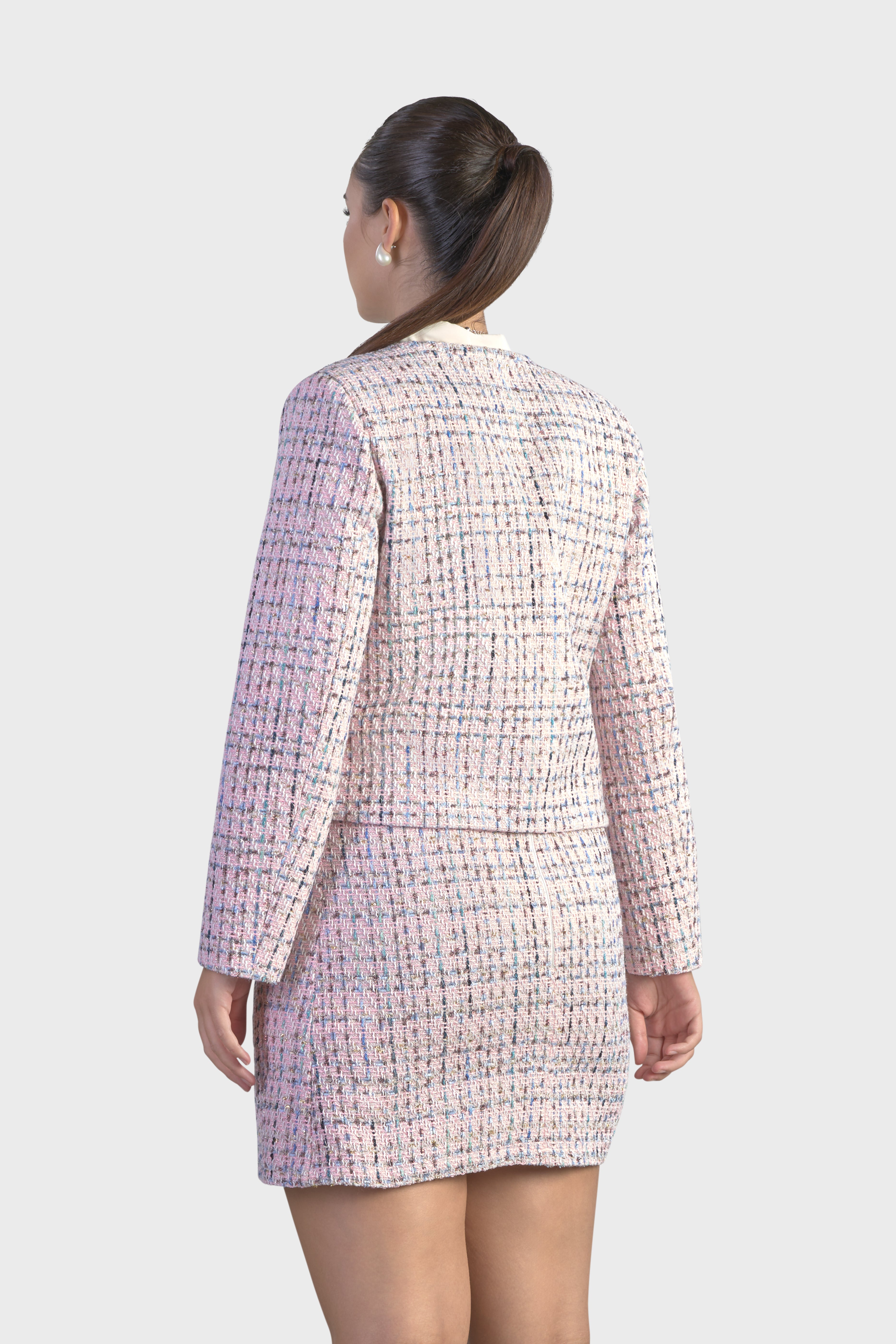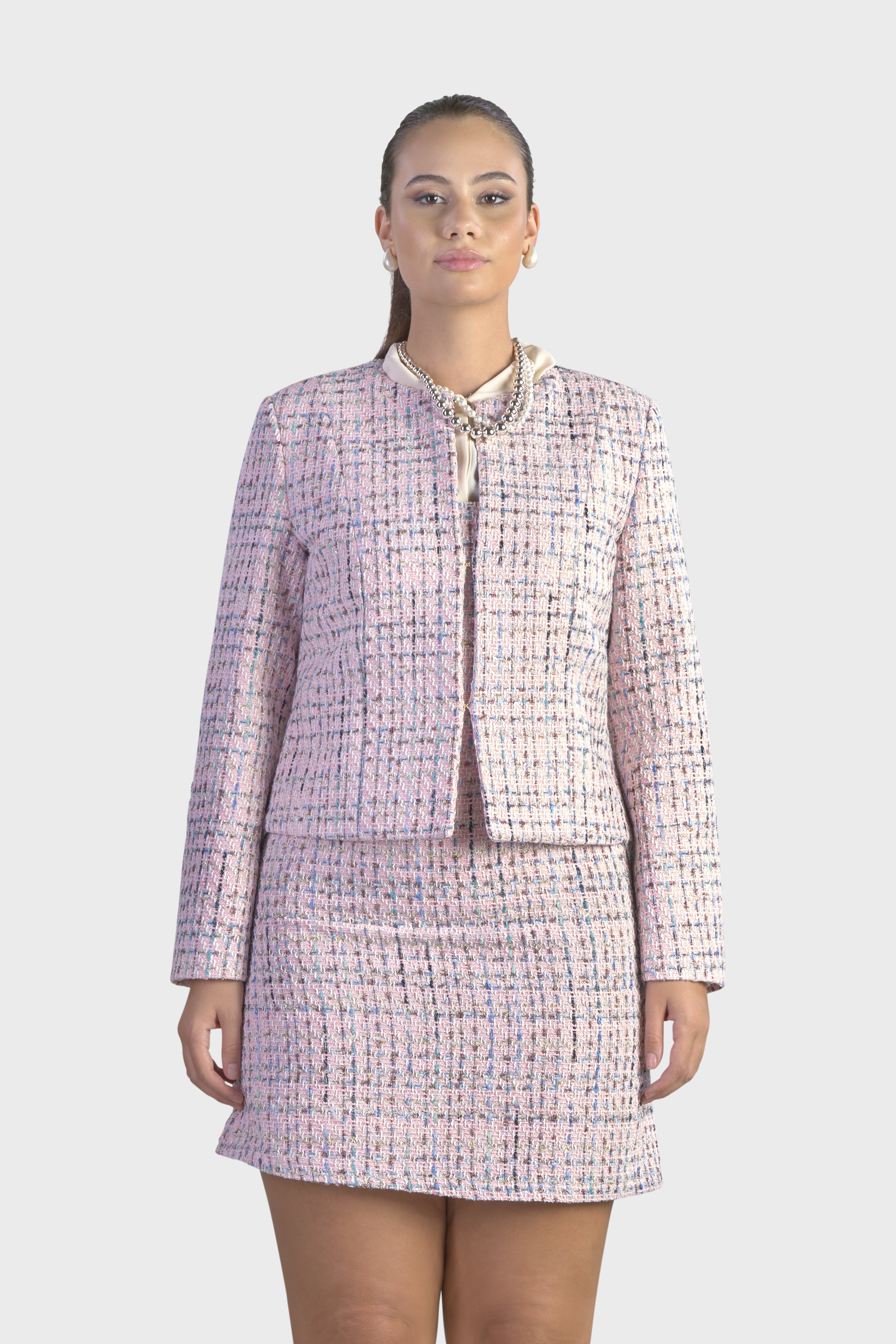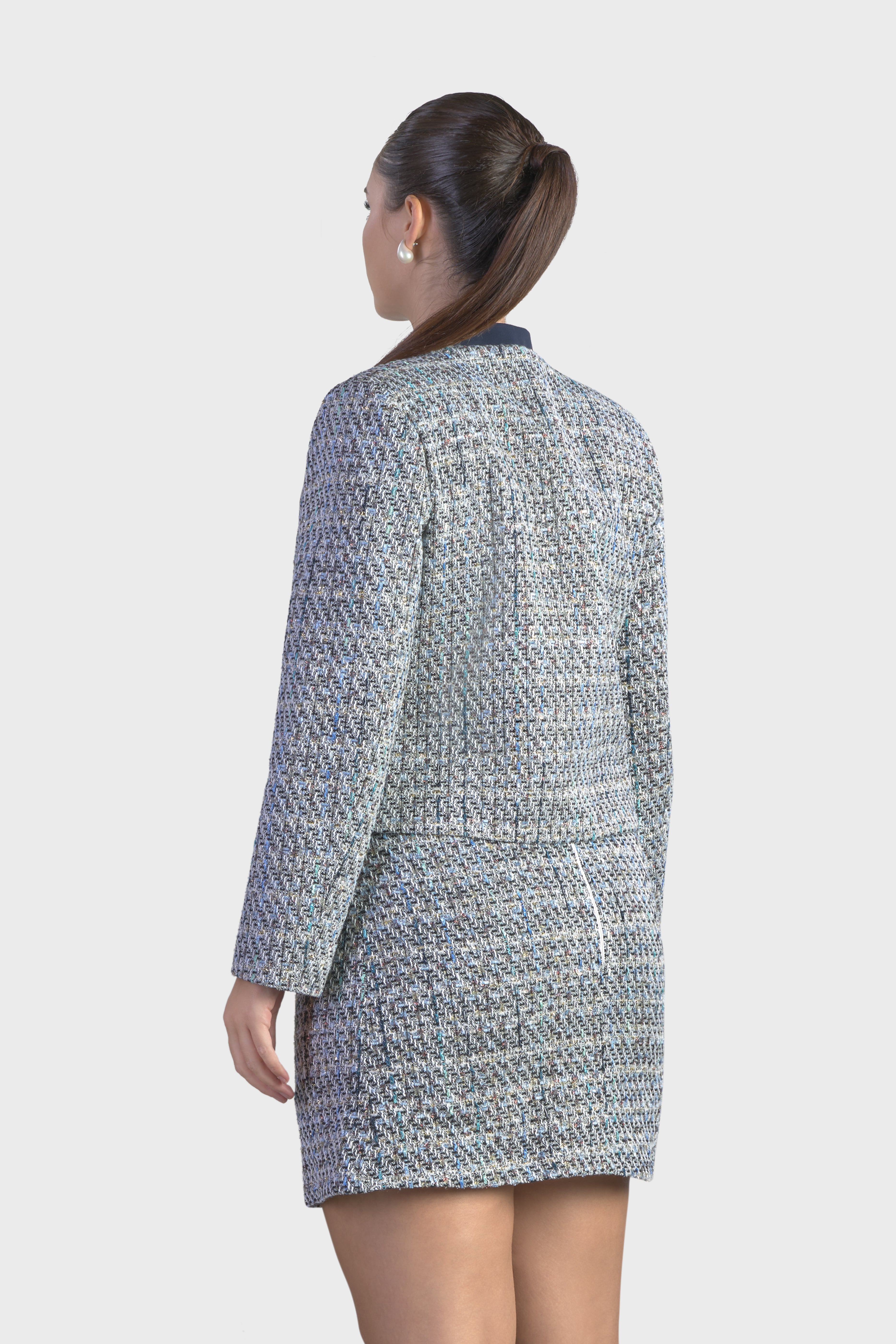 Questa giacca rappresenta un perfetto equilibrio tra eleganza e modernità, ideale per chi cerca un capo distintivo. Realizzata in tweed multicolor, tessuto dall’iconica trama morbida in grado di conferire raffinatezza e originalità. La scollatura girocollo aggiunge un elemento di femminilità e grazia, rendendo questa giacca versatile e chic. La linea dritta e l’abbottonatura monopetto con chiusura tramite ganci nascosti, arricchisce ulteriormente l’impeccabile design.