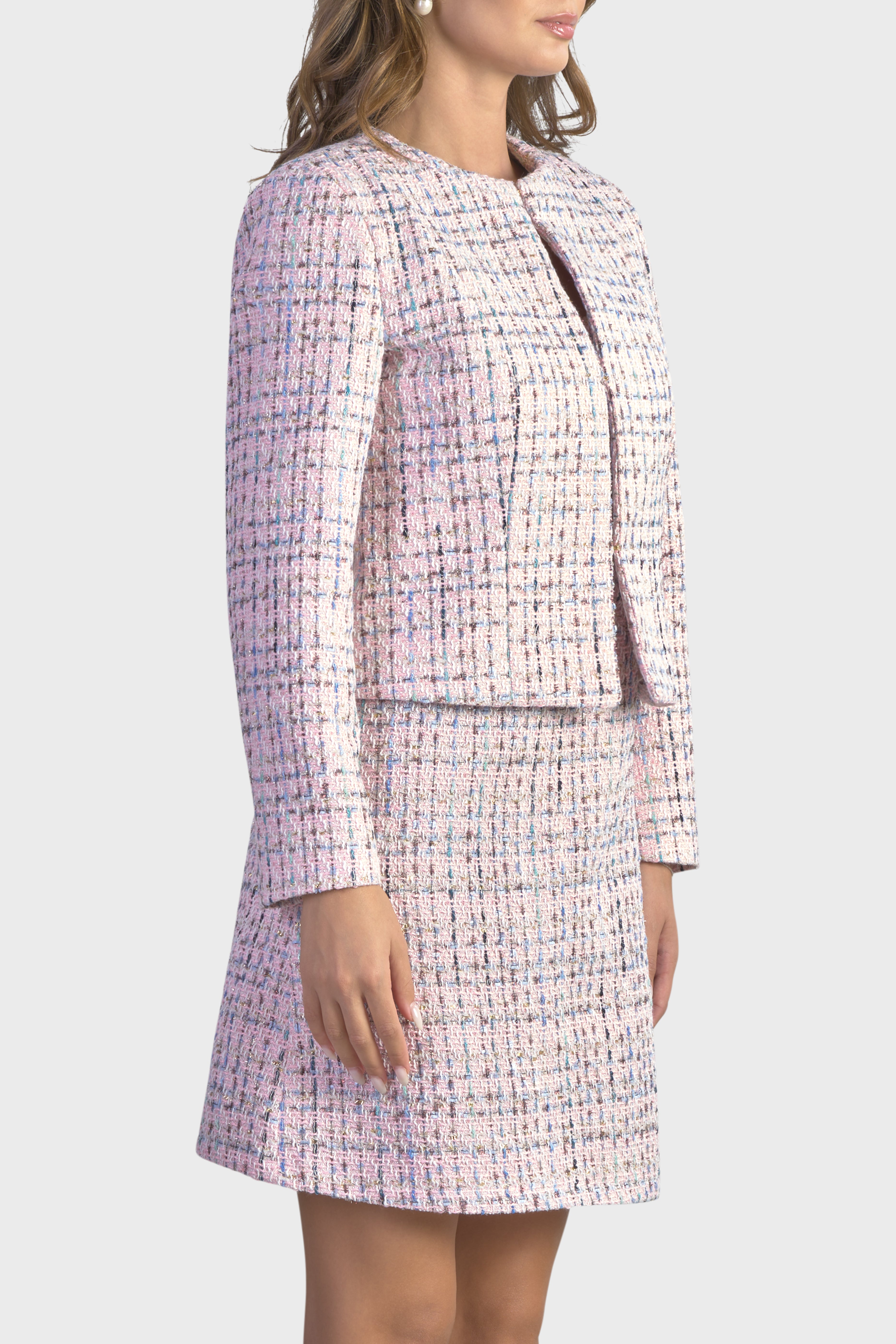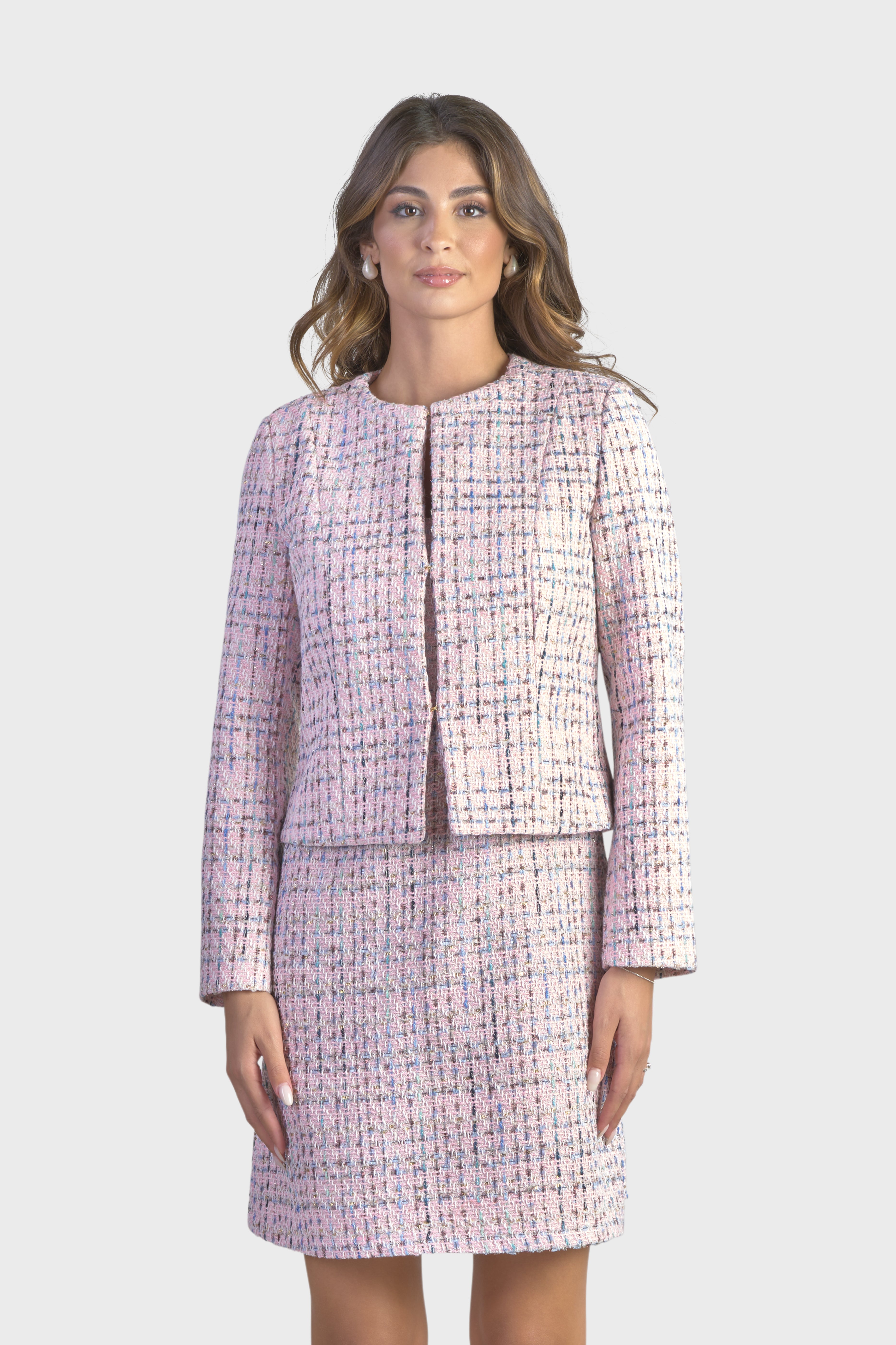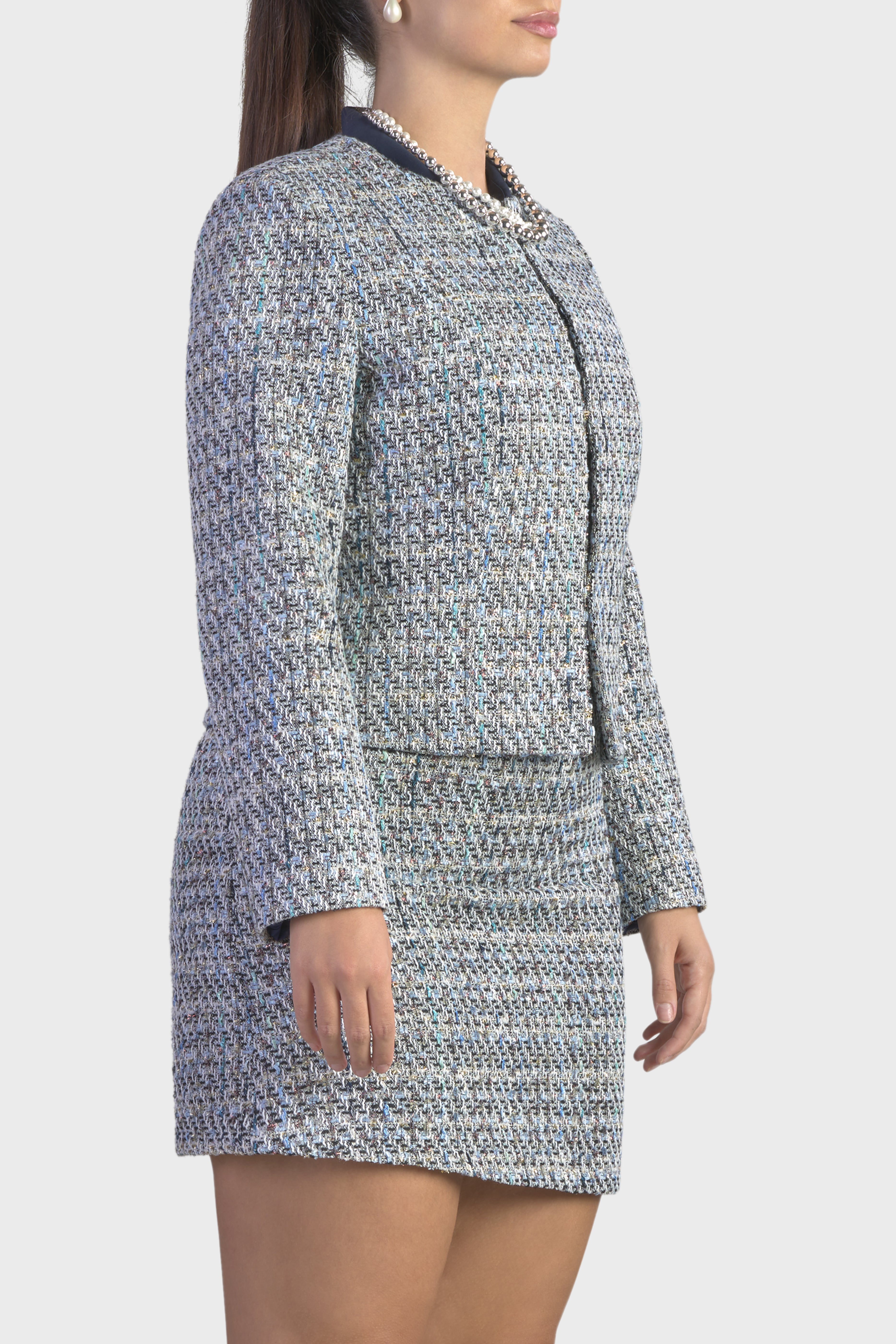 Questa giacca rappresenta un perfetto equilibrio tra eleganza e modernità, ideale per chi cerca un capo distintivo. Realizzata in tweed multicolor, tessuto dall’iconica trama morbida in grado di conferire raffinatezza e originalità. La scollatura girocollo aggiunge un elemento di femminilità e grazia, rendendo questa giacca versatile e chic. La linea dritta e l’abbottonatura monopetto con chiusura tramite ganci nascosti, arricchisce ulteriormente l’impeccabile design.