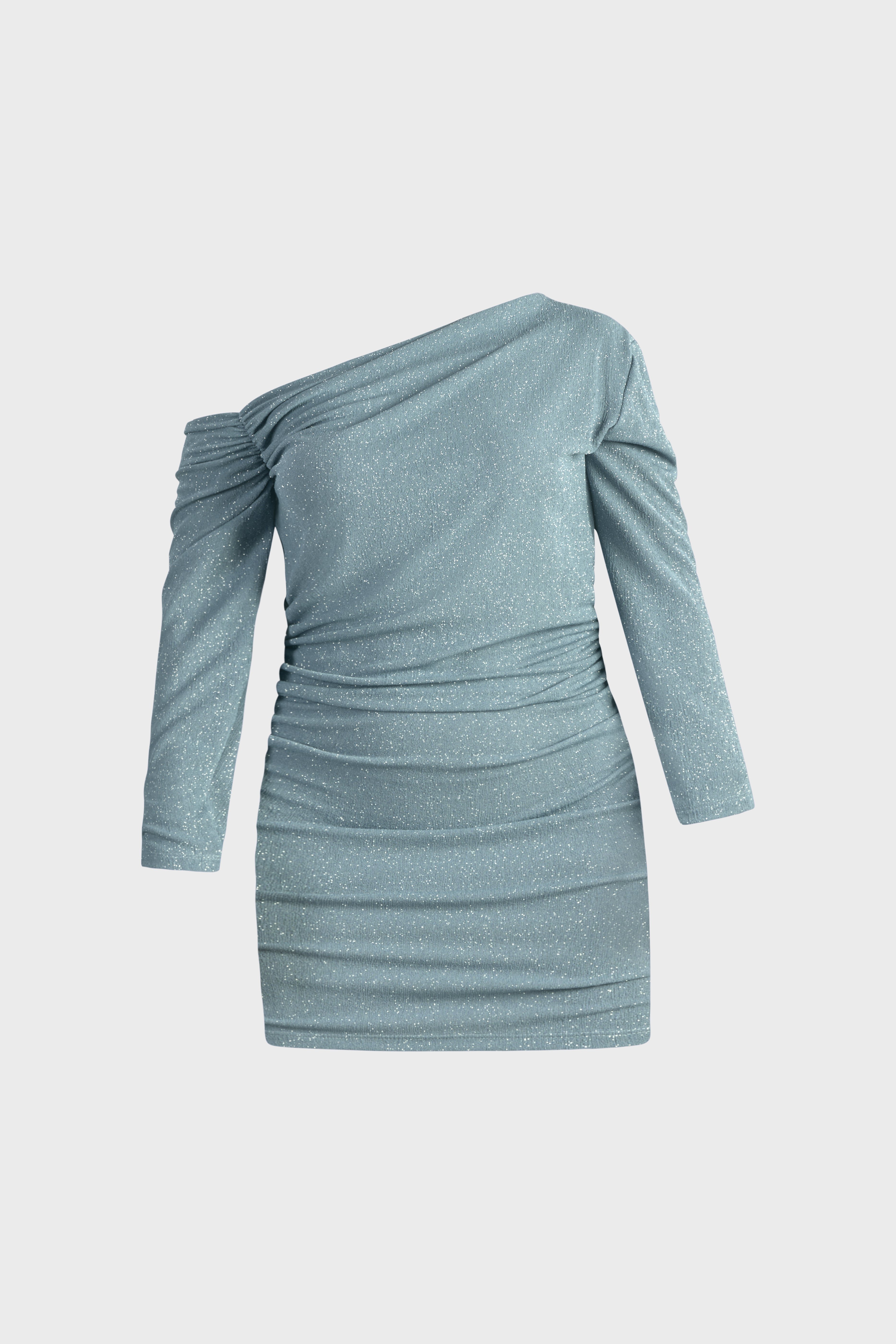 Il design asimmetrico di quest’abito dagli innumerevoli drappeggi, è sagomato in una silhouette a maniche lunghe. Realizzato in tessuto elasticizzato a maglia laminato, in grado di adattarsi a tutte le tipologie di corpo. Il modello, scivola lungo una spalla, aderisce dolcemente al corpo, regalando una lunghezza regolabile che si adatta ad ogni esigenza. È perfetto per occasioni speciali o serate eleganti, garantendo un aspetto impeccabile e una sensazione di leggerezza, questo abito è destinato a catturare l'attenzione.