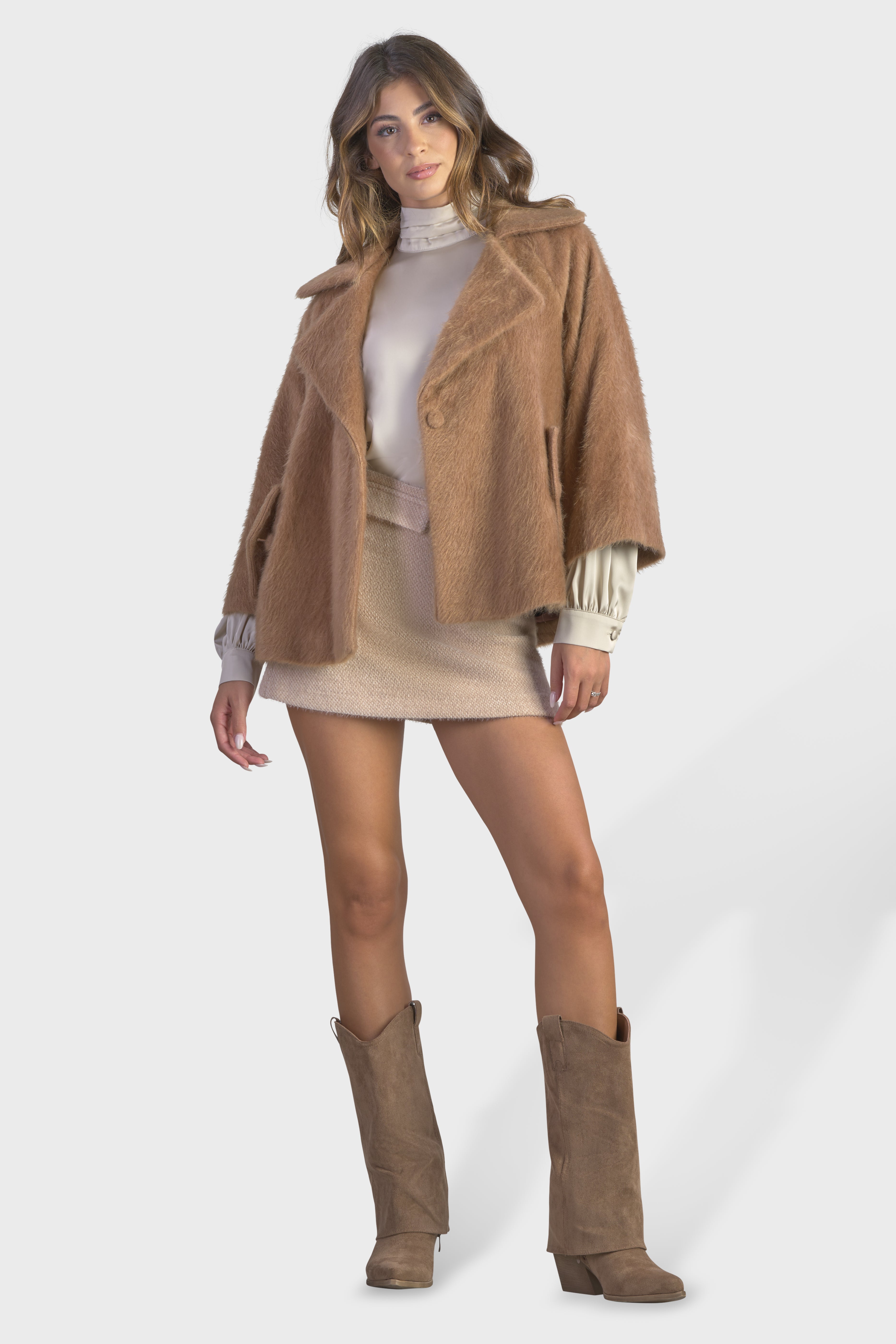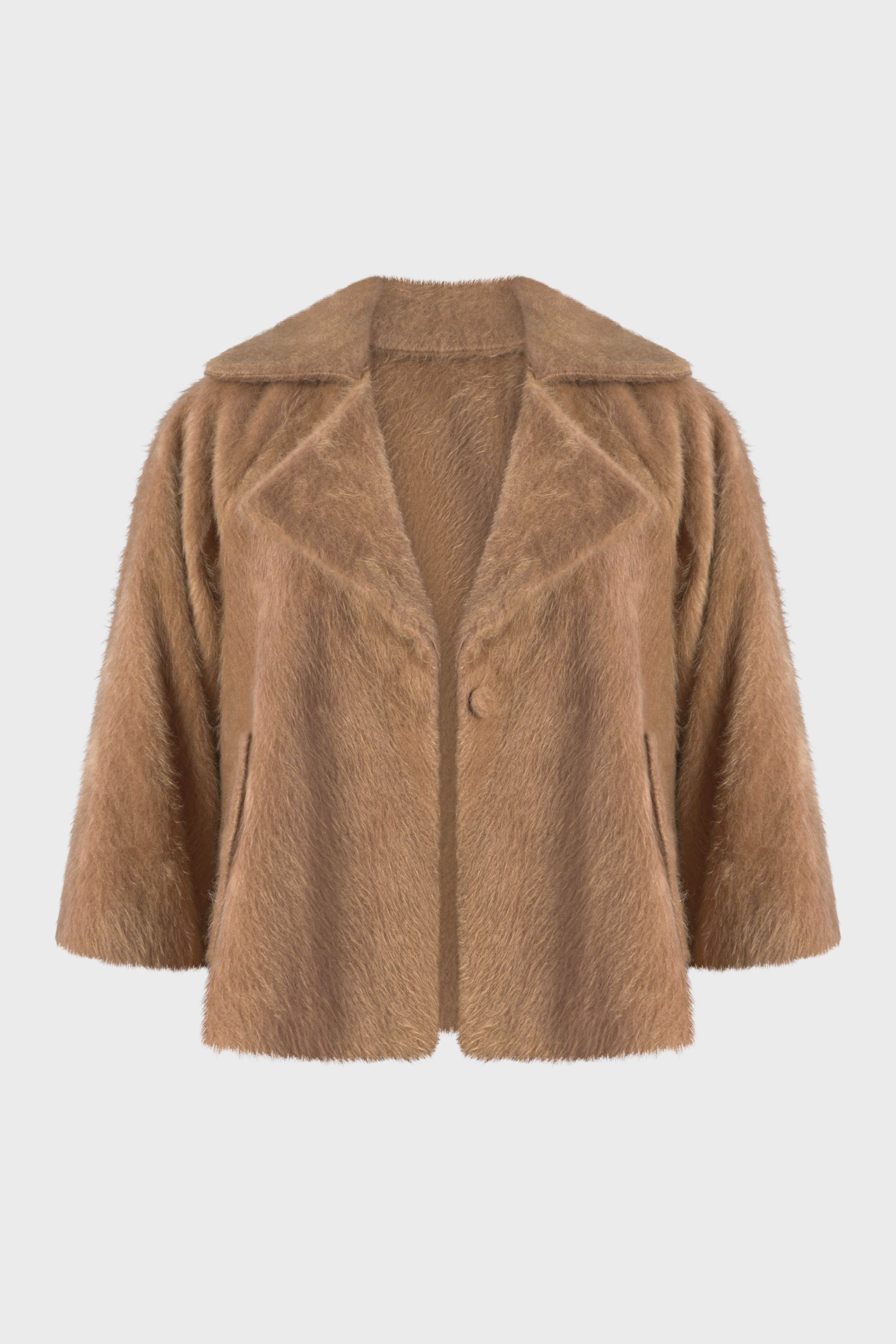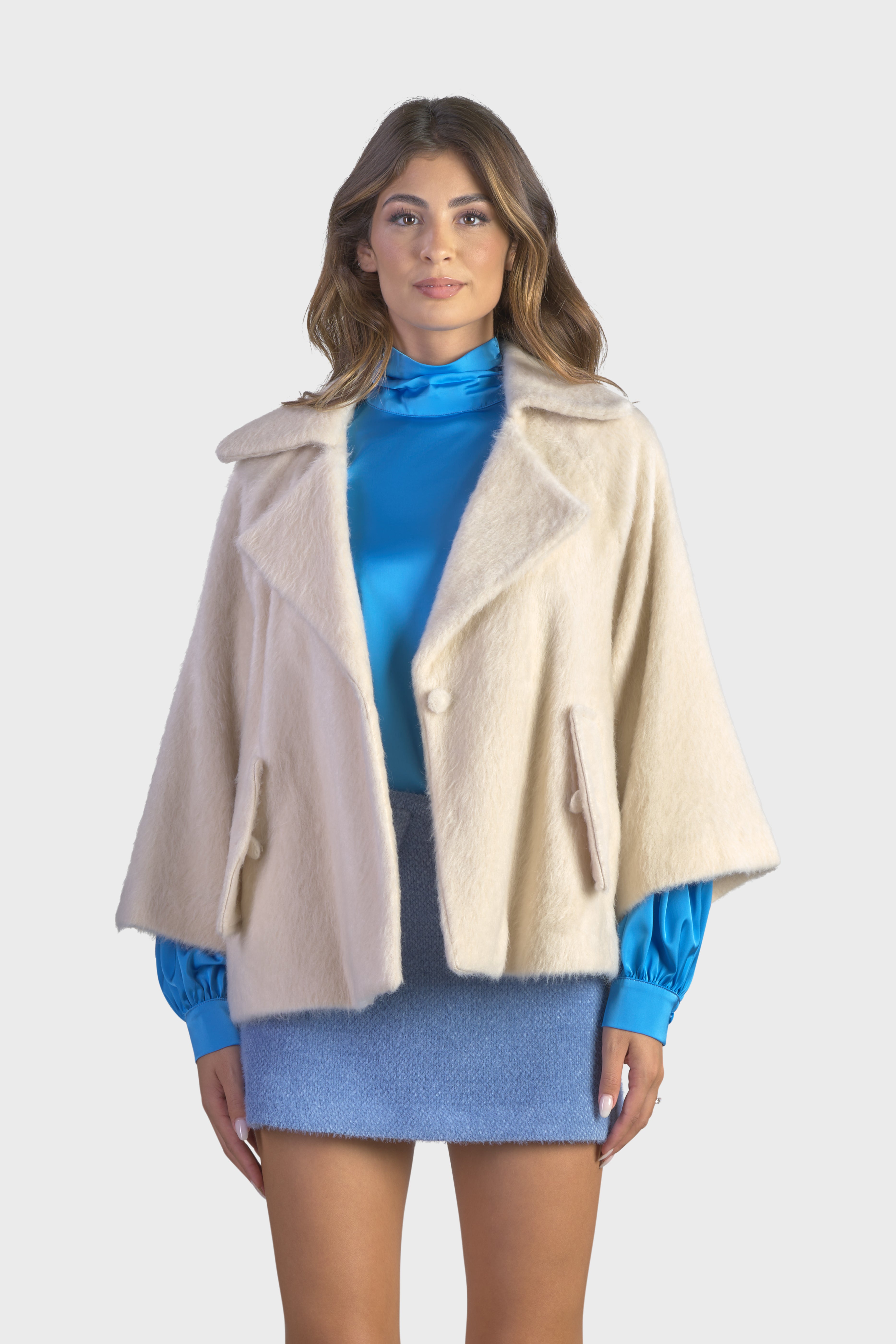 Questa raffinata pelliccia si distingue per il suo soffice e ampio collo a revers, che aggiunge un tocco di lusso e calore. La vestibilità morbida con maniche lunghe dal taglio raglan, crea un look elegante e rilassato. Realizzata in una morbida pelliccia a pelo corto, tessuto soffice, perfetto per chi cerca una moda che faccia la differenza. Il modello è dotato di due tasche con pattina sul davanti, per una funzionalità discreta. Infine i bottoni rivestiti e la lunghezza al bacino, conferiscono un’eleganza senza tempo. Perfetto per chi desidera avvolgersi nel lusso con stile e sofisticatezza durante le giornate più fredde.
