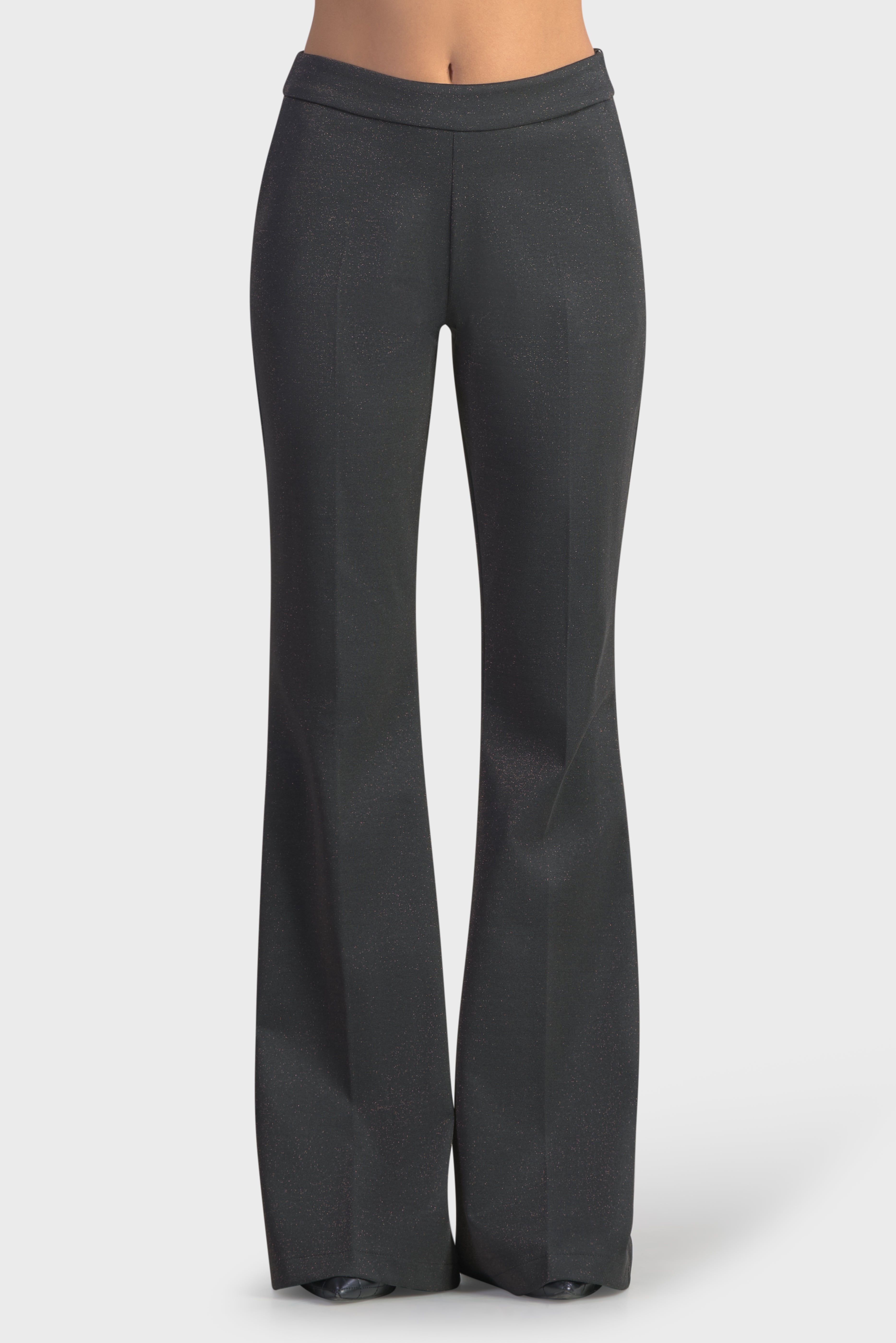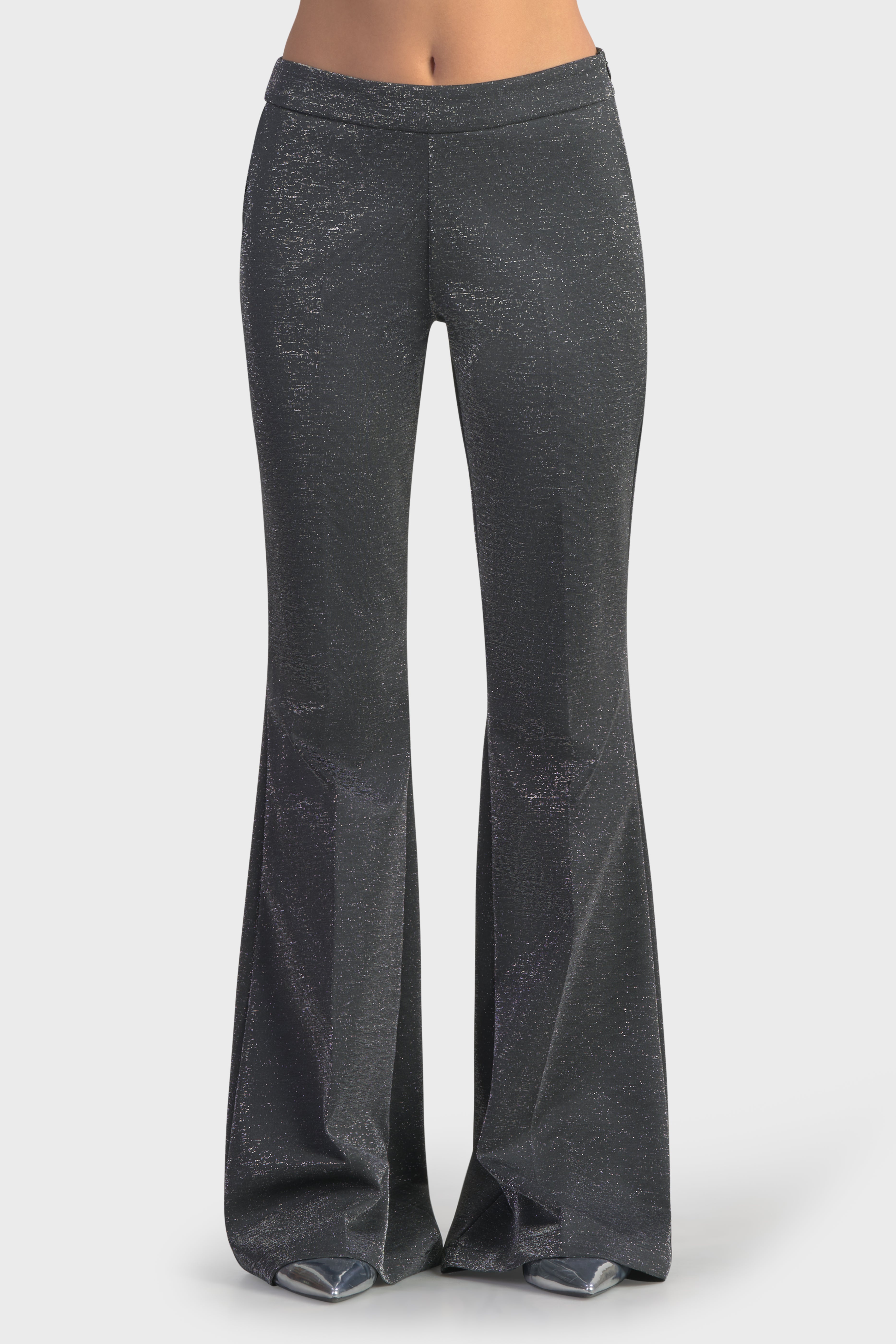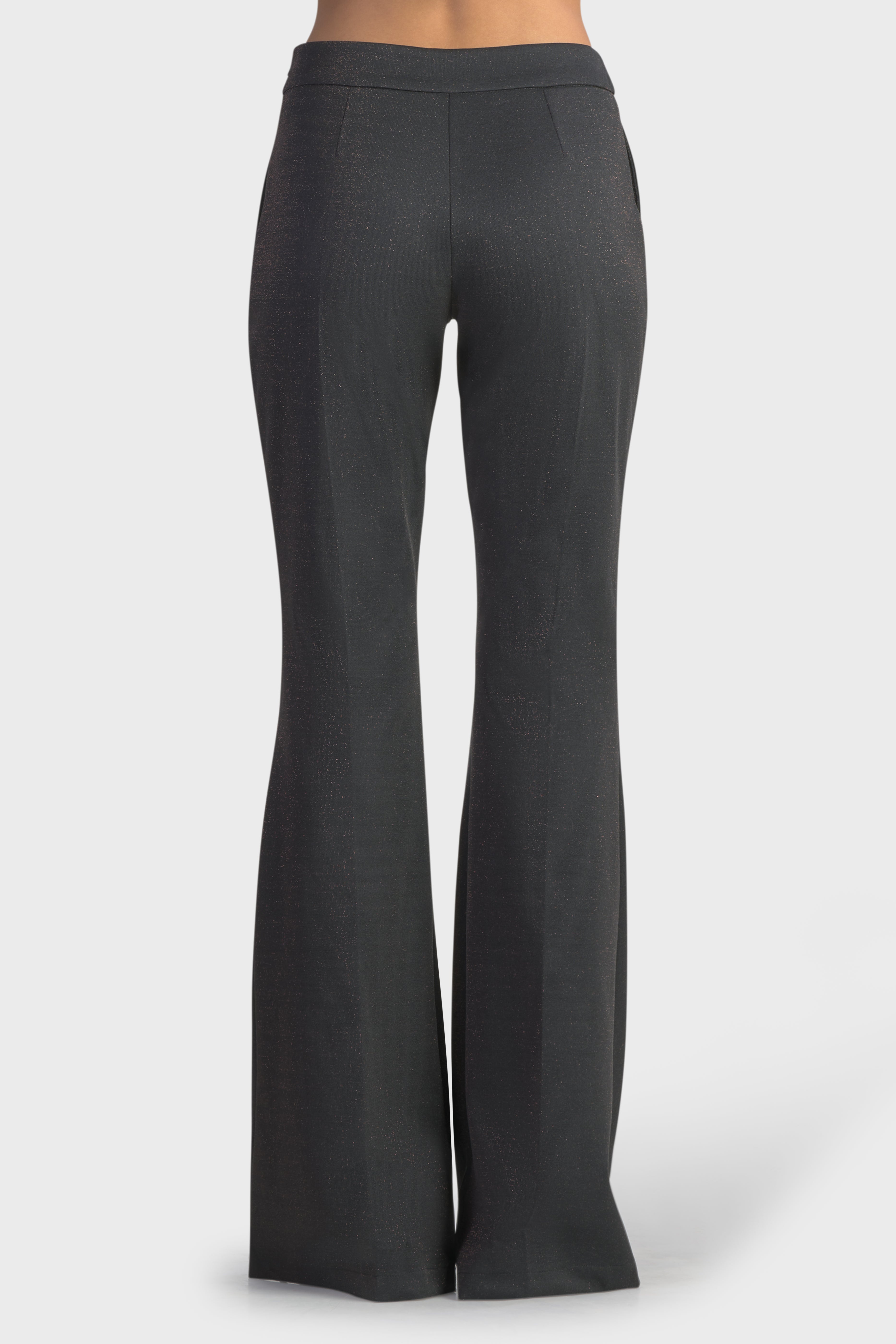Questi raffinati pantaloni lunghi a zampa, presentano una silhouette slanciata, esaltando la figura con eleganza. Realizzati in maglia, dall’aspetto shine, tessuto elasticizzato in grado di adattarsi a tutte le tipologie di corpo. La vita regolare con cinturino e le tasche nei fianchi aggiungono un tocco di sobria funzionalità. A completare il capo è la chiusura con cerniera nascosta nel fianco, per una maggiore rifinitura. Scintillanti e luminosi sono ideali per chi desidera distinguersi con classe e raffinatezza. Perfetti da indossare insieme alla giacca Kayla in coordinato della collezione.